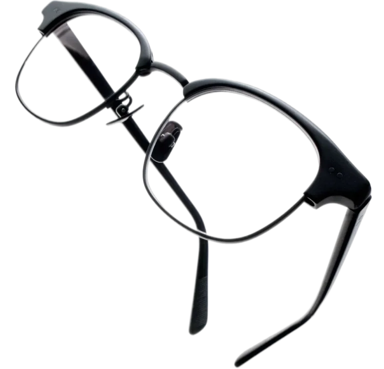 テンプルの印字や細かな金属パーツまでを、特別に黒で統一。