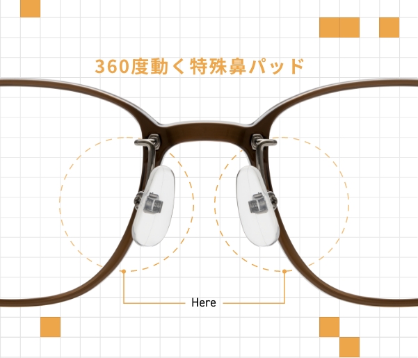 鼻パッドだから、装着面の顔なじみが抜群です。