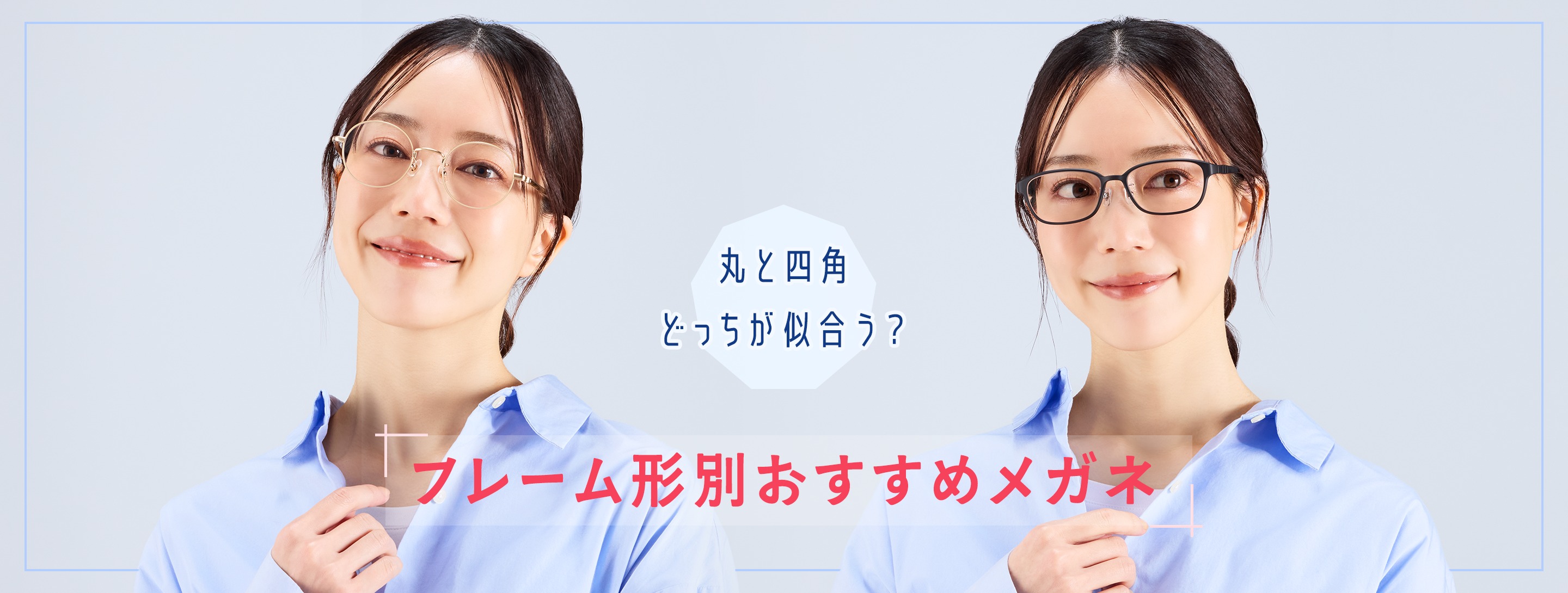 フレームの形は、顔の印象を大きく左右するポイントです。丸形ならやわらかく親しみやすい雰囲気に、四角形ならキリッと知的な印象になります。