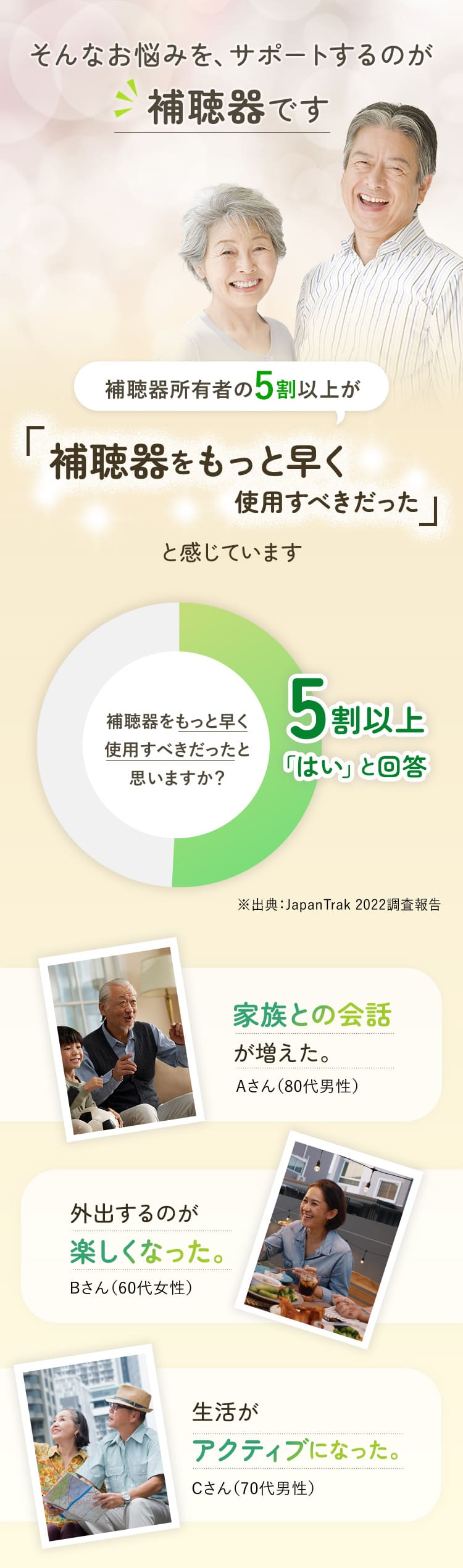 日々の調整も必要なのが補聴器。全国に補聴器取扱店舗が970店以上もある眼鏡市場なら購入だけでなく日々のメンテンナンスも近くて便利。