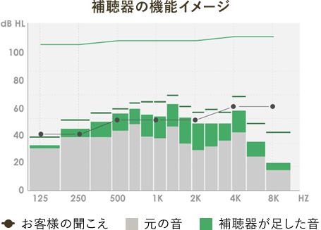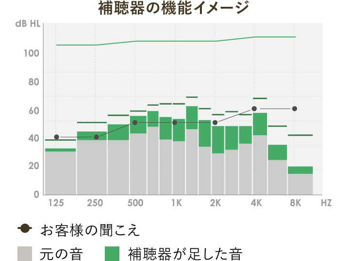 実耳測定により得られた独自の分析データ(センソグラム)を用いて、お客様に最適なオンリーワンの聞こえに調整できます。