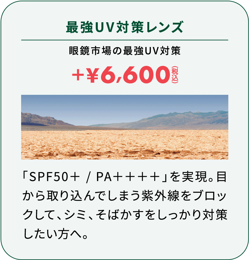 お受取日から1年以内にメガネが破損した場合、1回限り通常販売価格※1,2の半額で破損品と交換いたします。