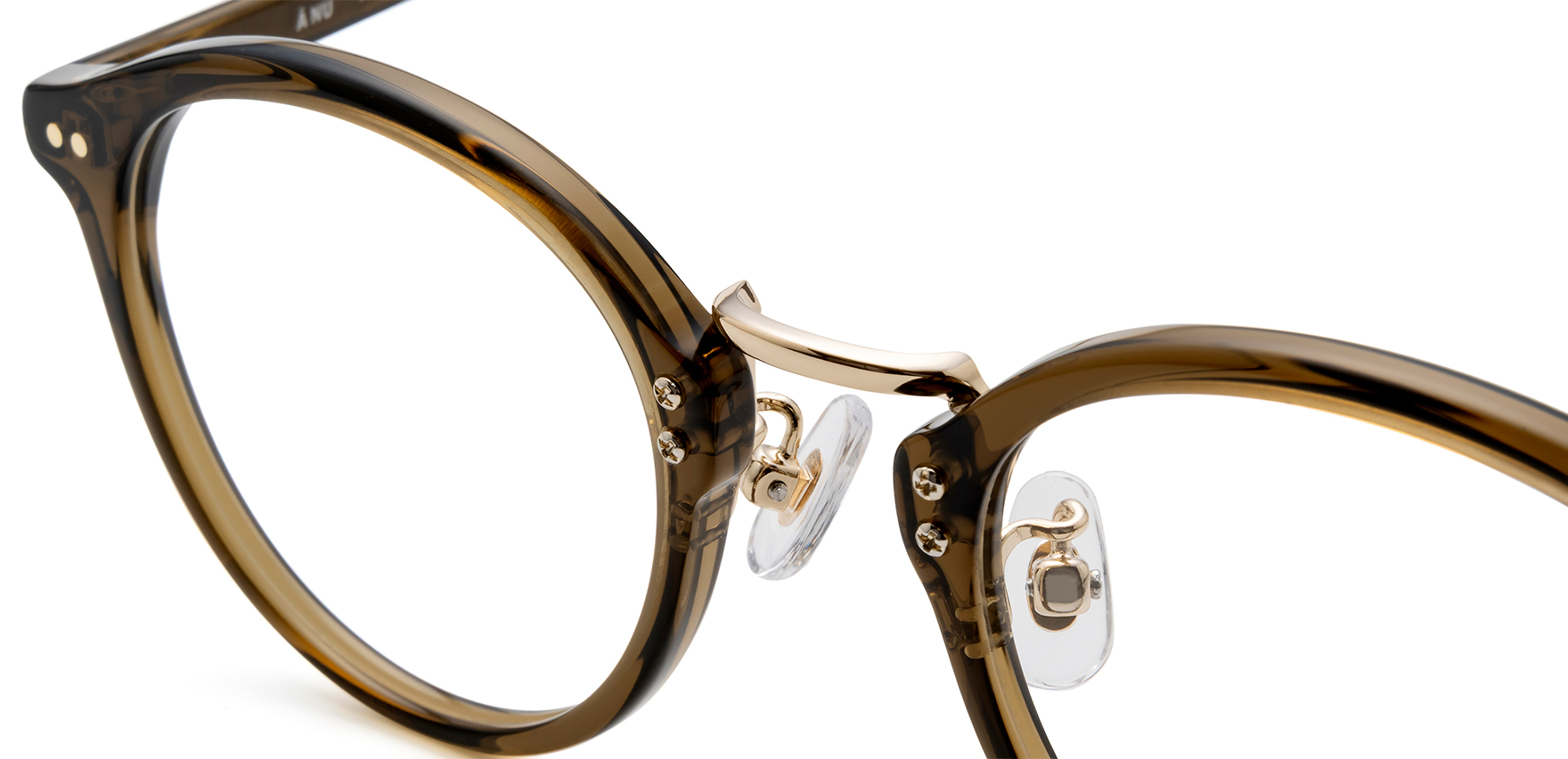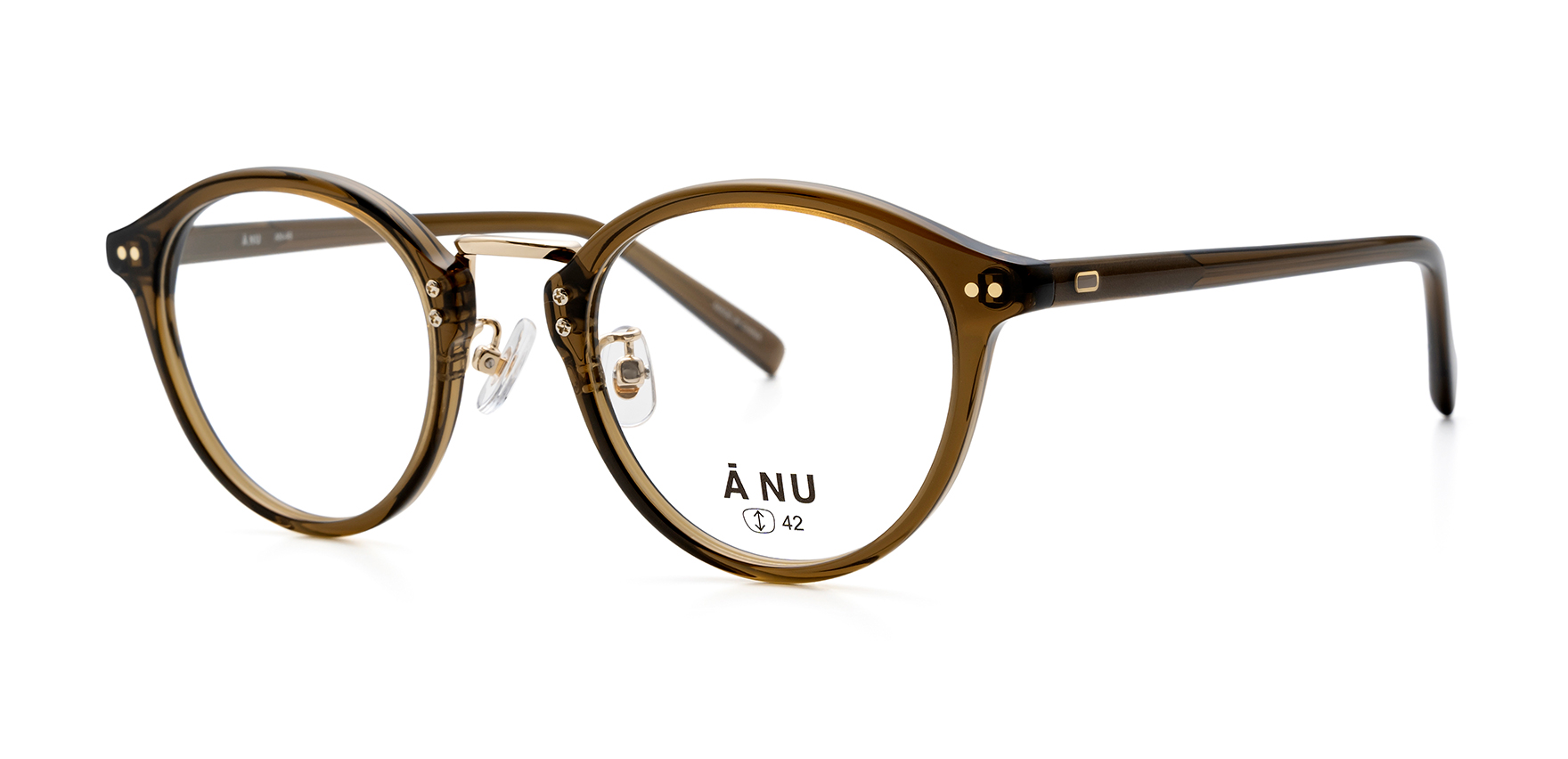 常に変化する旬のシルエットや色味を取り入れて軽やかに”今”を漂わせる、そんなニュアンスを大切にするアイウェア「A NU」。AN-46は、クラシカルな雰囲気のボストンシェイプです。レンズをつなぐブリッジ部分にメタルを採用したコンビネーションデザインで、ボリュームのあるフロントデザインをすっきりと見せてくれます。