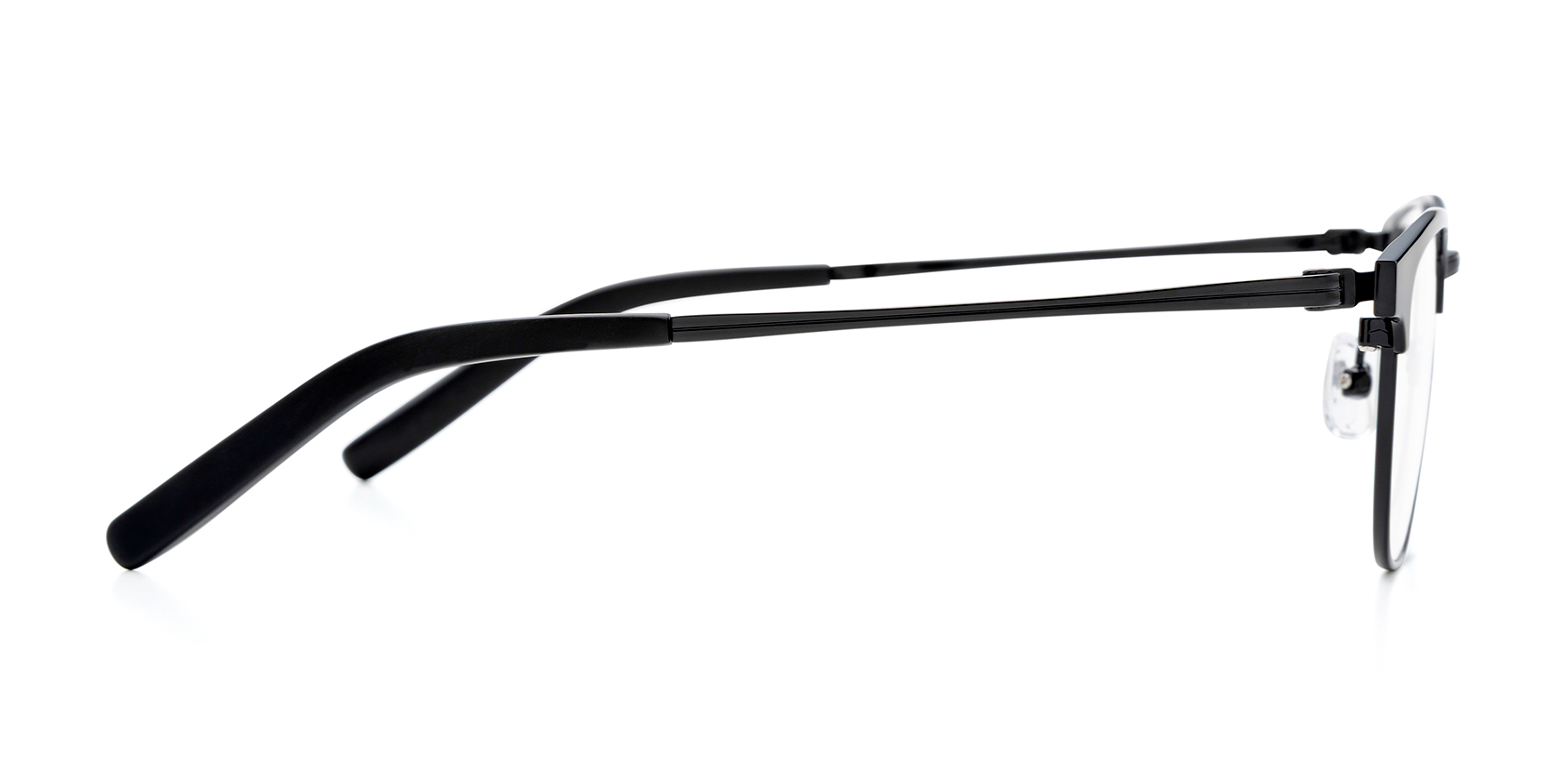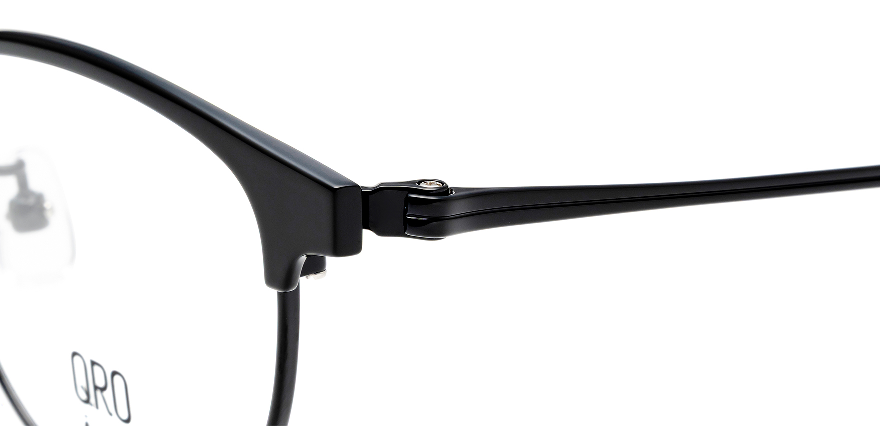 AN-51Bは、ウェリントンの骨格に、上部を強調するブローラインを金属で表現。エッジを効かせたブリッジが全体を引き締めます。面と線の黒が凛と重なり、ビジネスでも洗練された佇まいを演出します。メタル:ツヤ仕上げ、モダン:マット仕上げ
