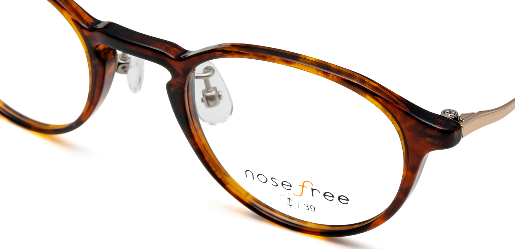 どのメガネユーザーも感じている「鼻に感じる重量感」「鼻に残るメガネの跡」など、眼鏡をかけることは視力とストレスのトレードオフという諦め。そんな装着ストレスから解放をさせるメガネを意味するブランド「nosefree(ノーズフリー)」。NOF-217は、クラシカルなクラウンパントシェイプをコンパクトに仕上げたモデルです。女性にも掛けやすく、落ち着いた印象の中に上質な個性を感じさせます。また、鍵穴のようなキーホールデザインのブリッジが眼鏡全体の印象を引き締め、お顔の輪郭に美しく馴染ませます。タングステンのオモリと軽量樹脂素材のフロントが快適な掛け心地を生み出す、機能性とデザイン性を両立した一本です。