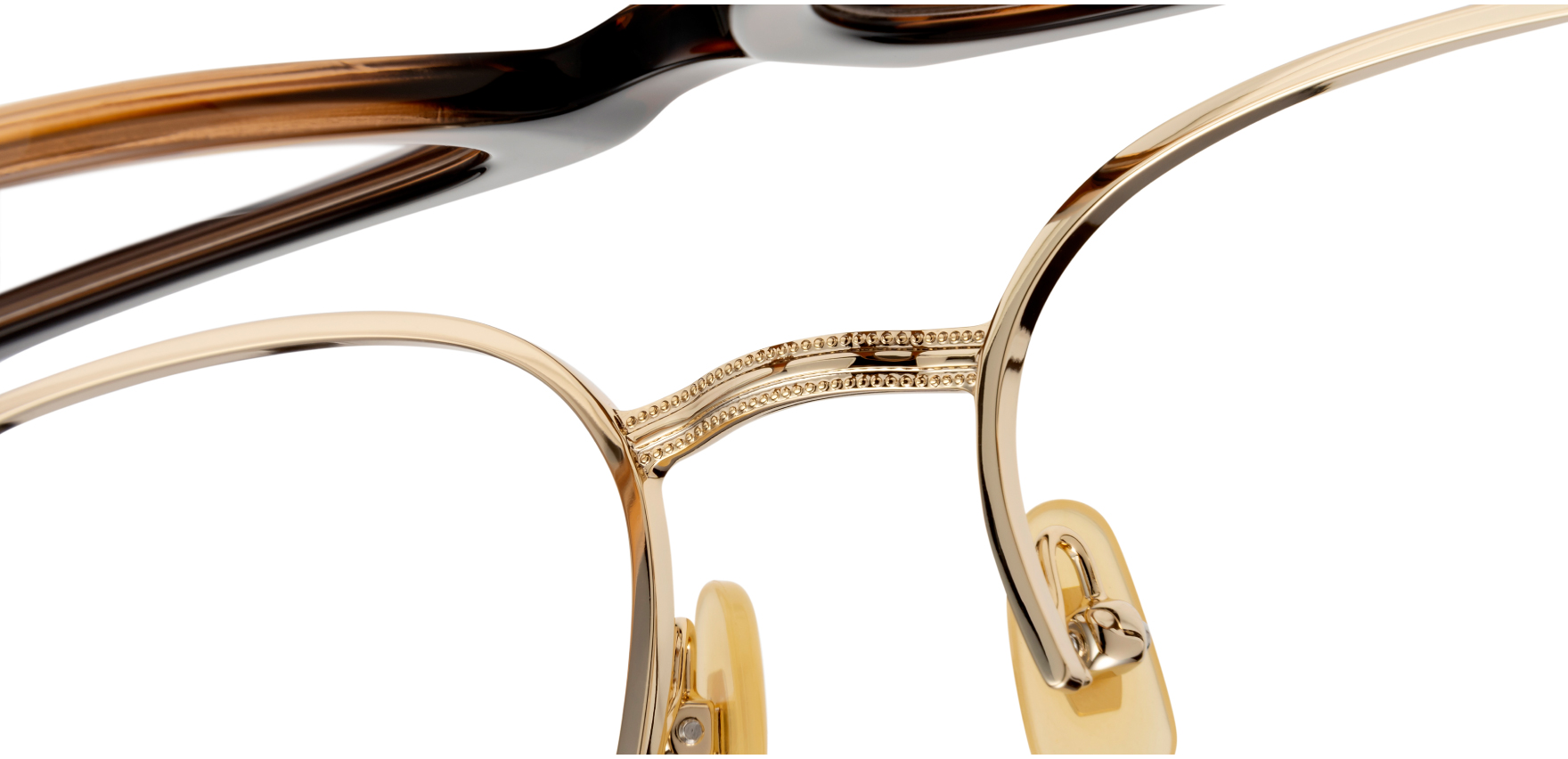 オーセンティックなスクエアウェリントンシェイプ。ブリティッシュスタイルの定番的なデザインに着想を得たボリュームのあるフロントはスーツスタイルにも合わせられるトラッドな印象になっています。細部までこだわった跳ね上げ構造で累進世代にかけやすいデザイン。