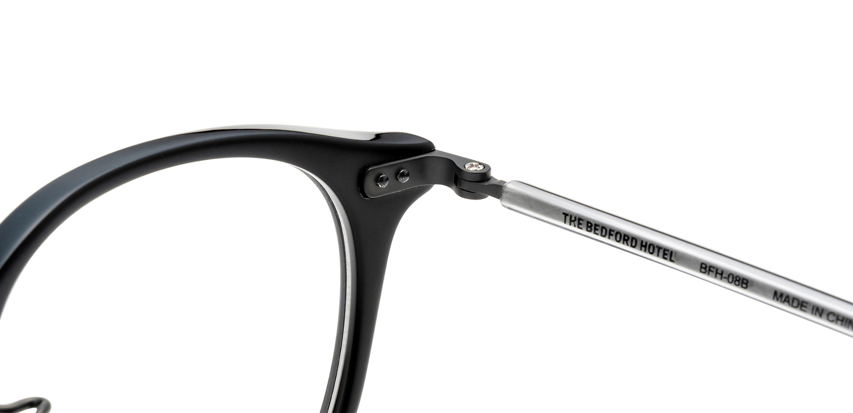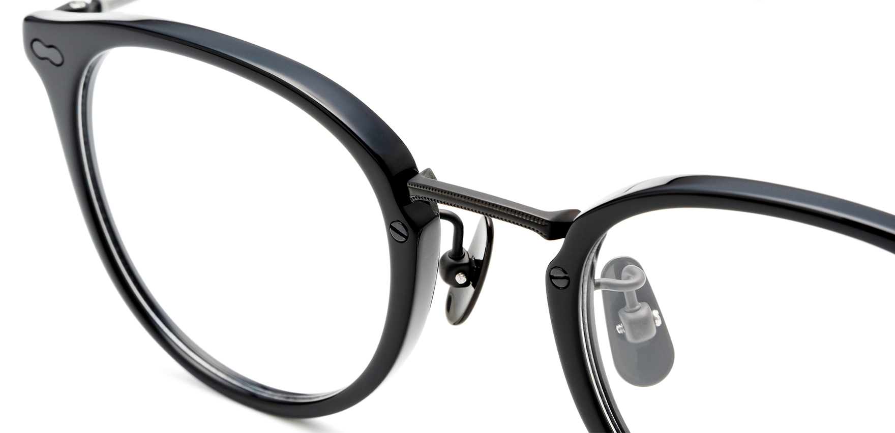 BFH-08Bは、極限まで細く仕上げたアセテートのフロントに、軽快なテンプルを合わせたオーセンティックなボストンです。テンプル内部に覗く芯金のアラベスク模様がクラシックな趣を添え、普段のスタイルに上品さをプラスします。表面:ツヤ仕上げ、裏面:マット仕上げ、メタル:マット仕上げ