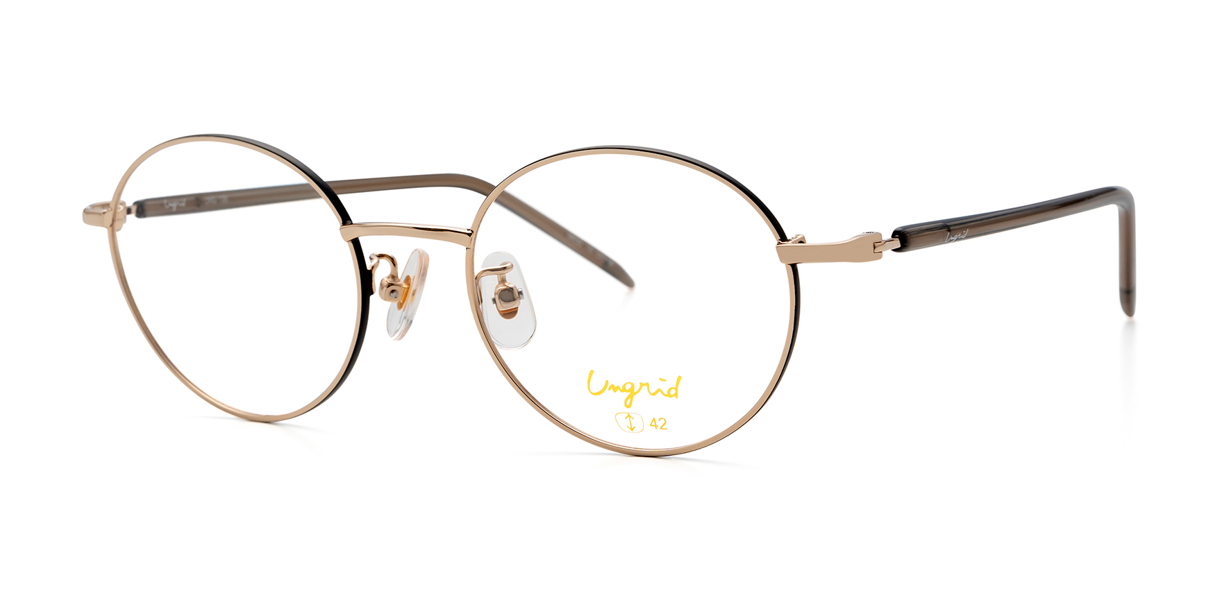 「Live “un grid” 枠にとらわれず生きよう。」というブランドコンセプトのもと、女性たちが枠にとらわれず、なりたい自分になれるような着心地の良い服を提案しているアパレルブランド"Ungrid(アングリッド)"のオリジナルアイウェアコレクション。UNG-135は、ベーシックでかけやすいボストンタイプです。リム側面に施されたカラーリングが、どの角度から見ても可愛らしさを演出します。透明感のあるテンプルと細身のモダン先が、女性らしい繊細さを表現しています。横顔まで印象的に魅せるフレームです。
