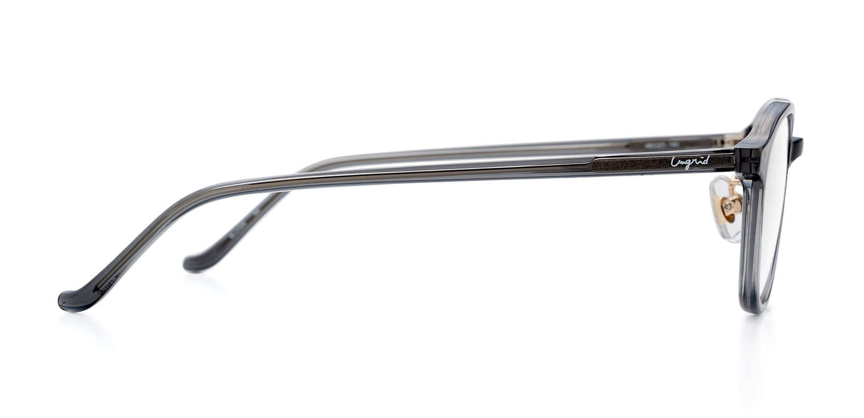 「Live “un grid” 枠にとらわれず生きよう。」というブランドコンセプトのもと、女性たちが枠にとらわれず、なりたい自分になれるような着心地の良い服を提案しているアパレルブランド"Ungrid(アングリッド)"のオリジナルアイウェアコレクション。UNG-136は丸みを持たせたスクエア寄りのウェリントンシェイプで、知的な雰囲気と親しみやすさを両立したデザイン。フロントサイドのさりげない配色切り替えがアクセントになっています。アースカラーをイメージしたカラー展開で、肌なじみが良く、オン/オフ問わず日常使いできるモデルです。