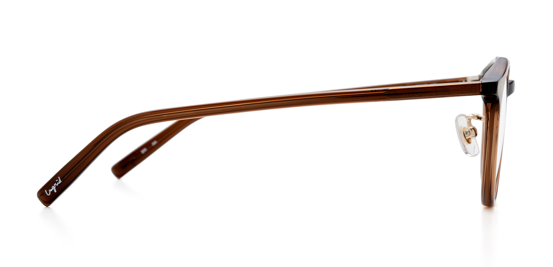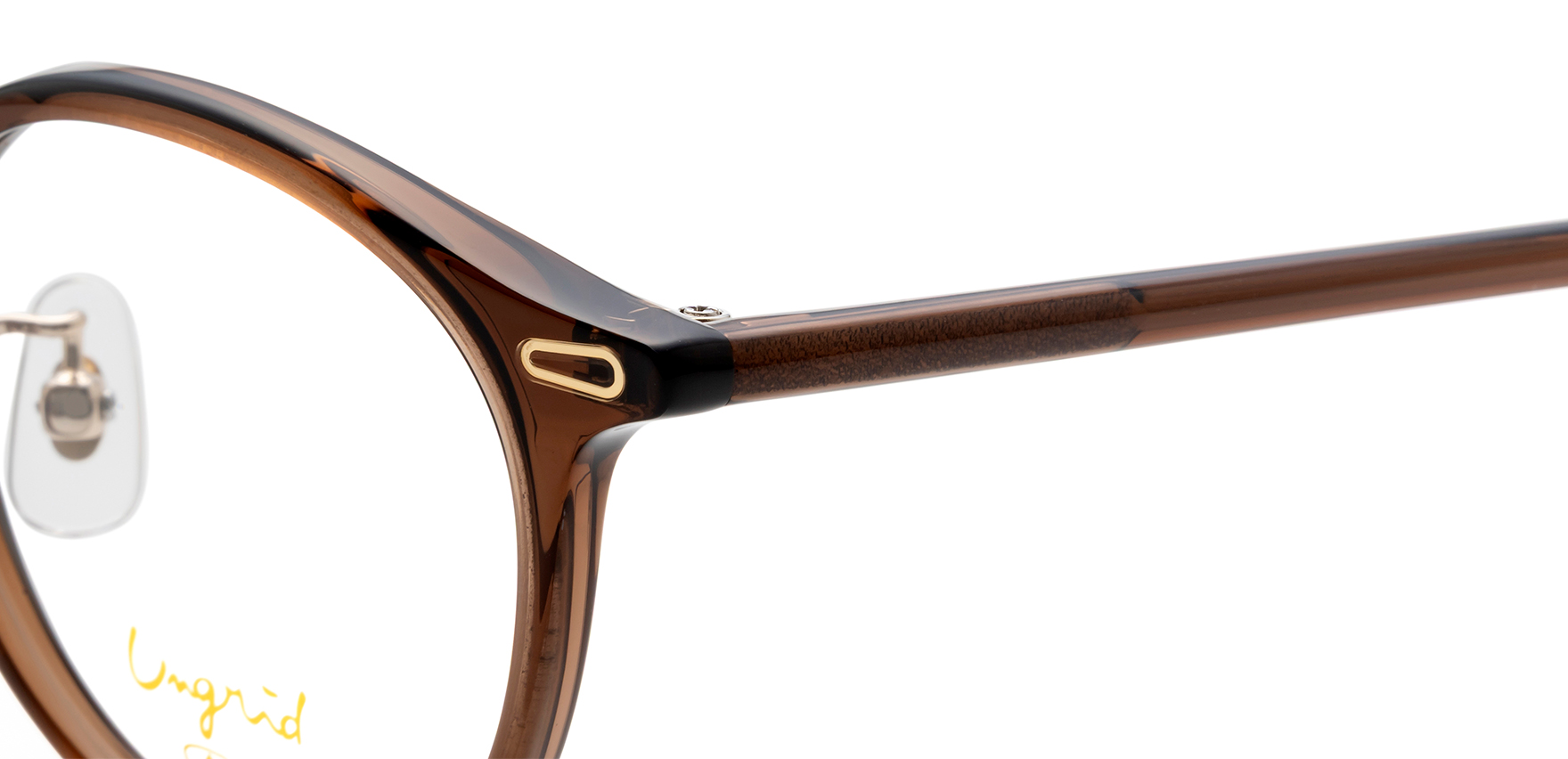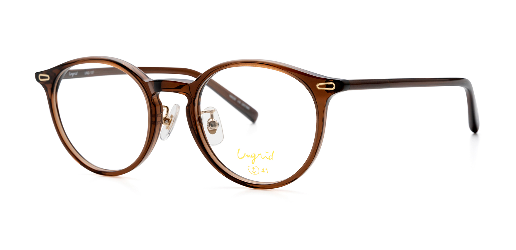 「Live “un grid” 枠にとらわれず生きよう。」というブランドコンセプトのもと、女性たちが枠にとらわれず、なりたい自分になれるような着心地の良い服を提案しているアパレルブランド"Ungrid(アングリッド)"のオリジナルアイウェアコレクション。UNG-137は、クラシックなボストンタイプです。フロントに施した、飾りをイメージしたインレットシールがさりげないアクセントになっています。シンプルでありながらトレンドを抑えた一本です。