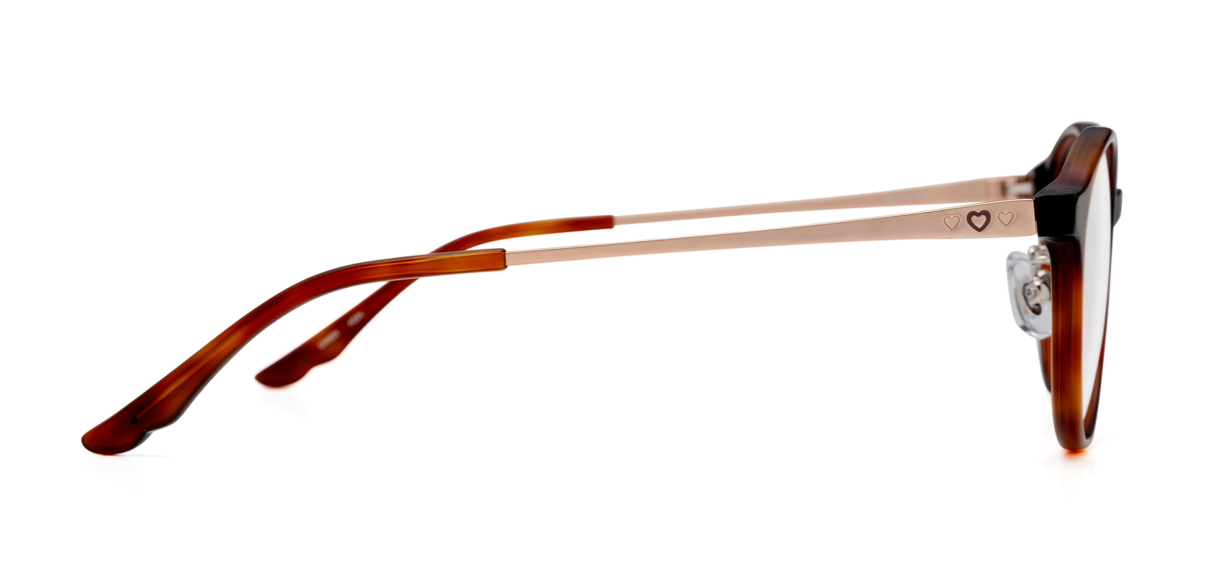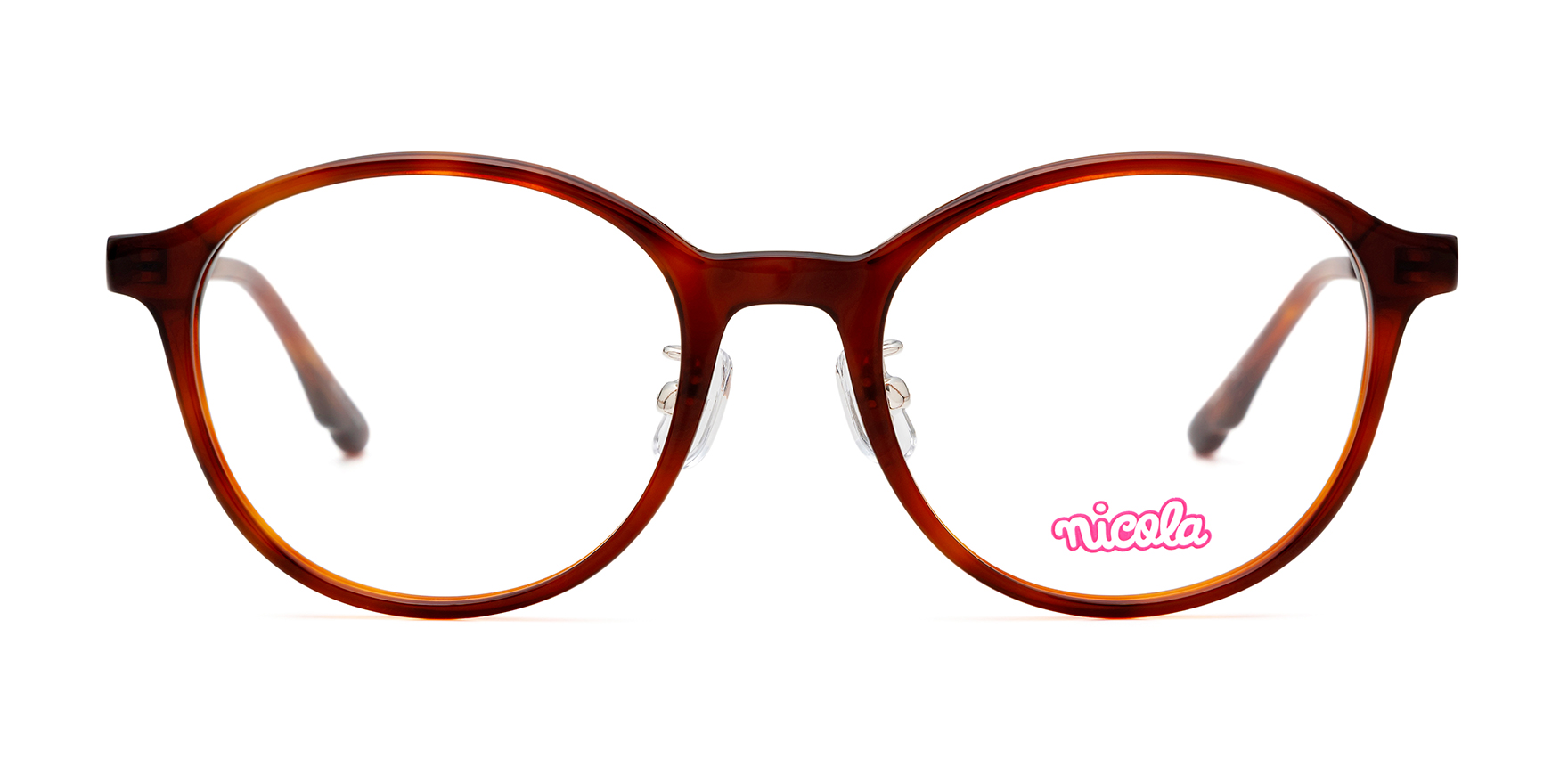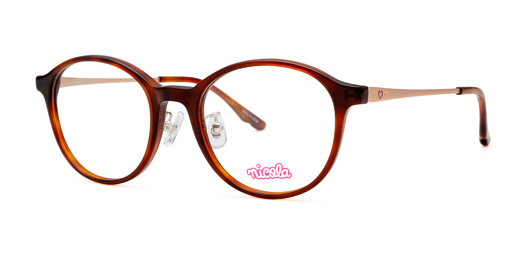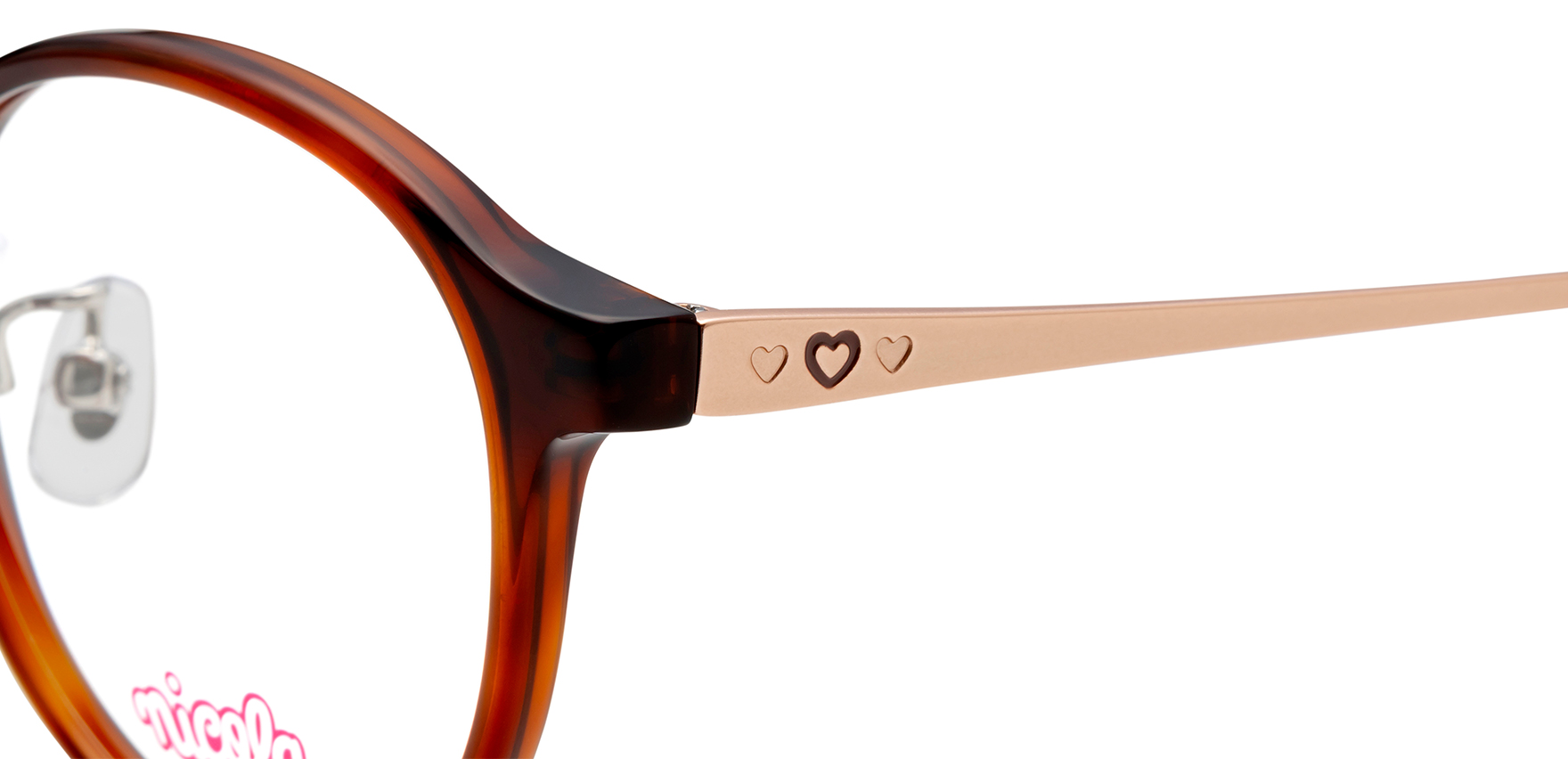 毎年ご好評いただいている眼鏡市場×nicolaのコラボメガネ。今回もニコモの皆さんと打ち合わせを重ね、中高生の間で流行しているデザインやカラーを取り入れた、制服でも私服でも可愛いスクールメガネとケース&メガネ拭きに仕上がりました。nicola-049は、誰にでも似合いやすい大人っぽいボストンセルフレームです。セルのフロントはメタルよりもラインが太めで、目元をはっきりと見せてくれます。羽をモチーフにデザインされたモダンがこだわりポイント。テンプルの3つのハートのうち、真ん中のハートに七宝で彩色を施した特別なデザインです。