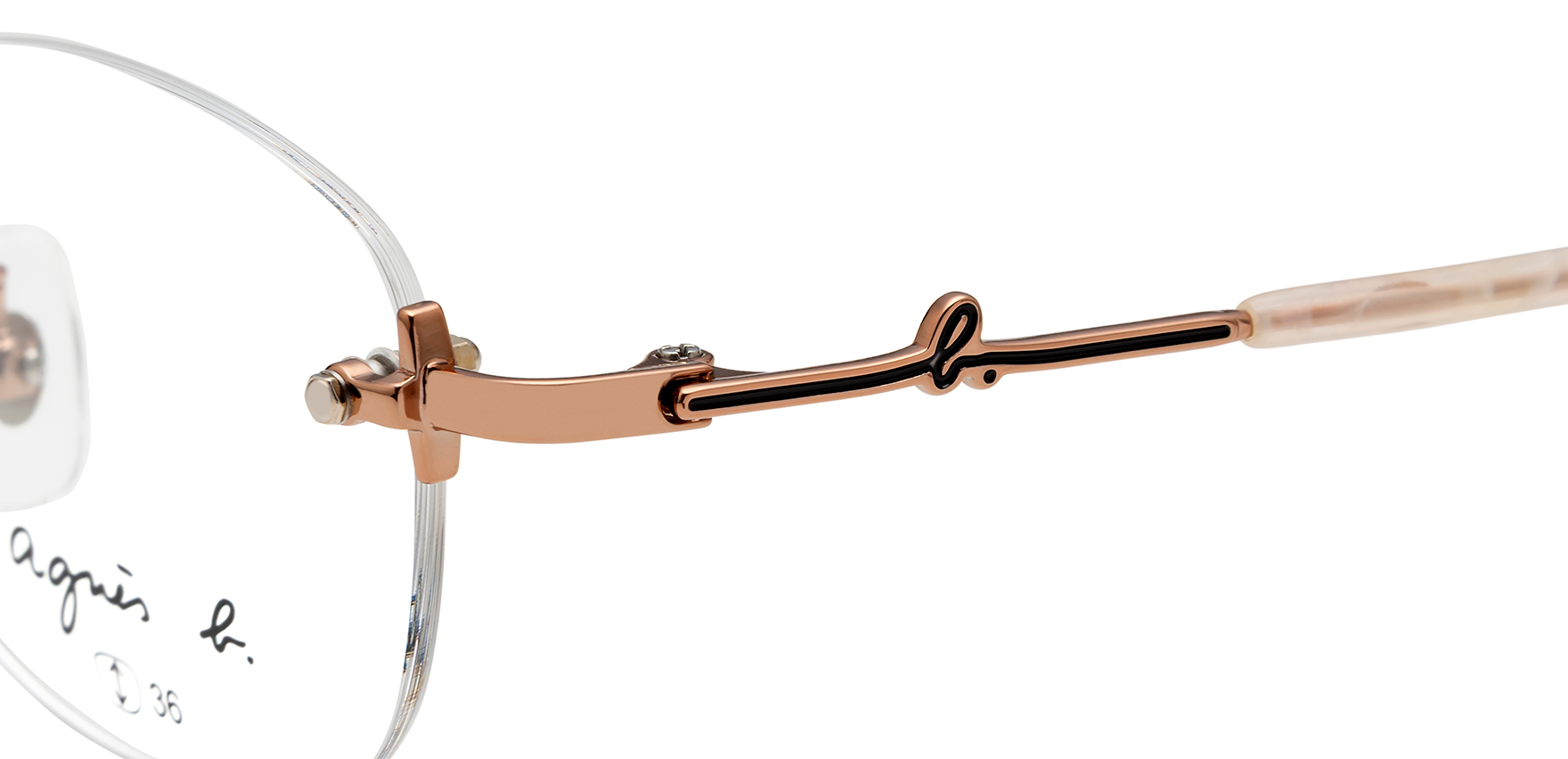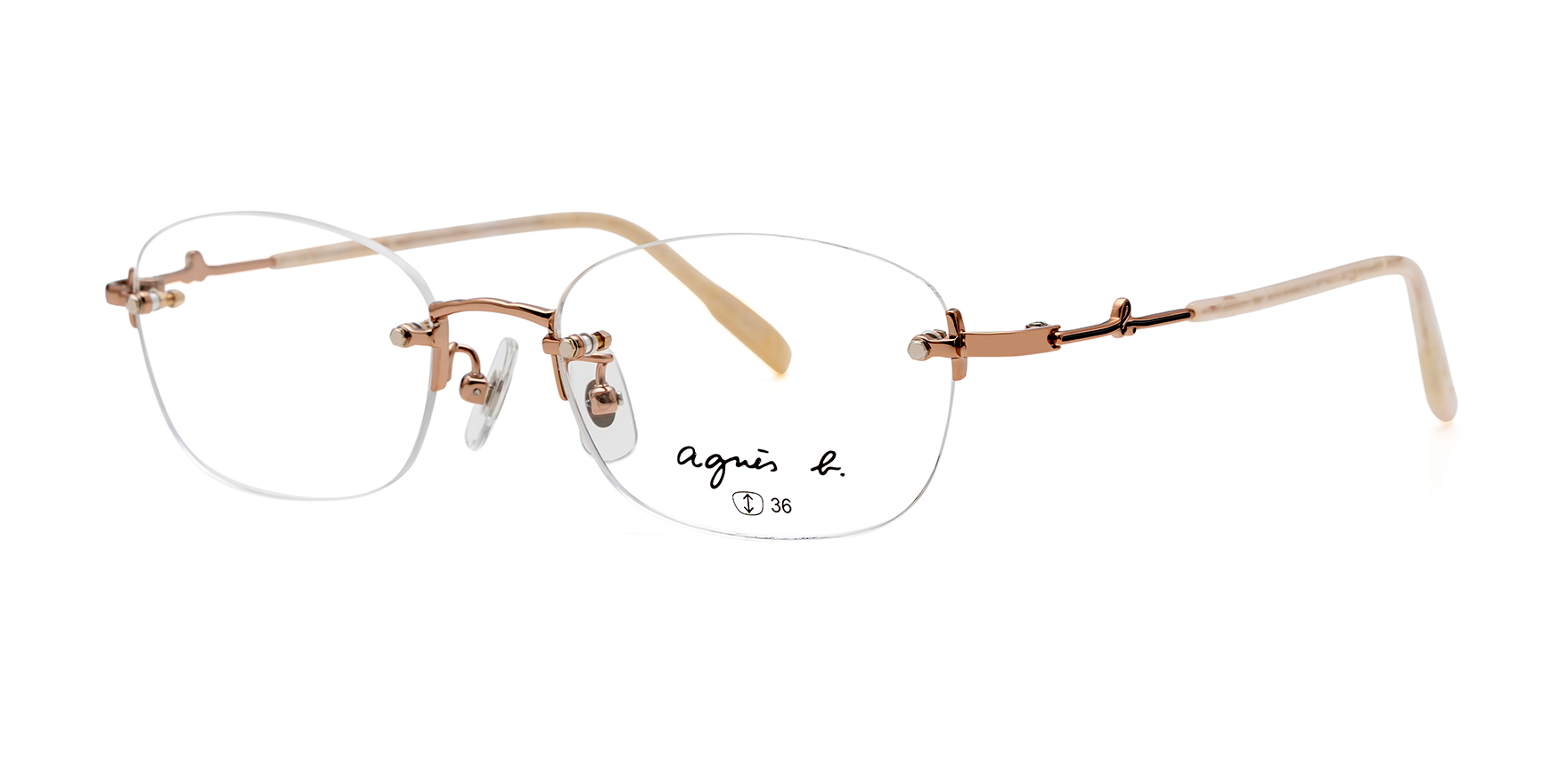 流行にとらわれないシンプルでシックなデザインで世代を問わず愛されているフレンチ・カジュアルを代表するパリのファッションブランド「agnes b.(アニエスべー)」。上品なシルエットで、デザインもカラーも楽しめる、大人のカジュアルフレームです。anb-236は、スマートな印象を演出するリムレスモデル。フレームの主張を抑えたすっきりとしたデザインです。レンズには、角を丸く仕上げたスクエアシェイプを合わせ、シャープさの中にやわらかさをプラスしました。また、テンプルにさりげなくb.マークを施すことで、シンプルな中に遊び心を感じさせるアクセントに。横顔にもさりげない個性を添える一本です。