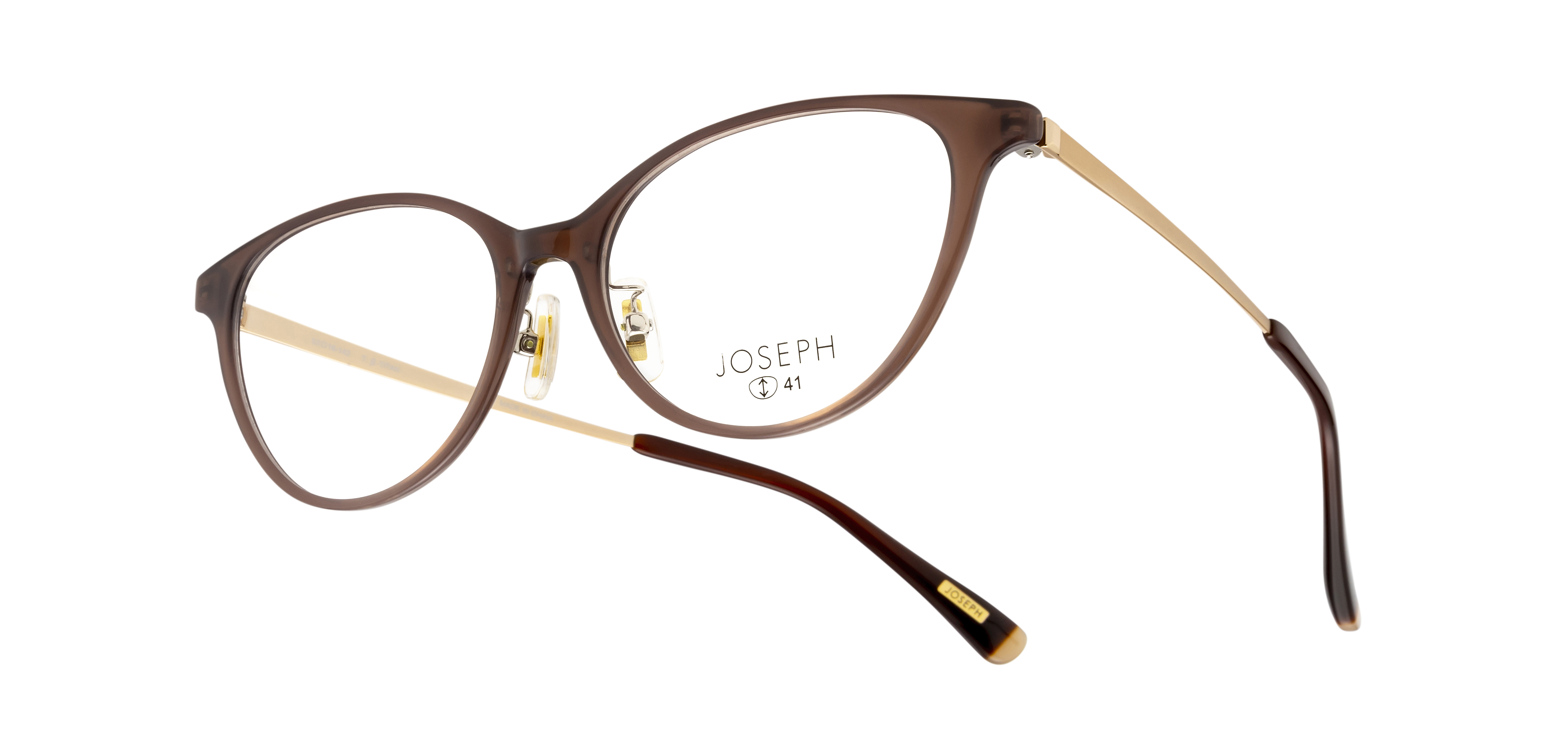 ロンドン発の人気アパレルブランドで、自分の価値観を持った自立した女性のための上質なカジュアルウェアブランド「JOSEPH」の眼鏡市場オリジナルモデル。カジュアルでありながらも高級感のあるフレームデザインは、モダンからクラシックまで幅広いスタイルにマッチします。JOS-011は一見難易度が高そうに見えるフォックス型ですが、お顔に合わせやすくするため穏やかなカーブに仕上げました。顔の印象を引き立ててくれるデザインは、どのシーンでもおすすめです。