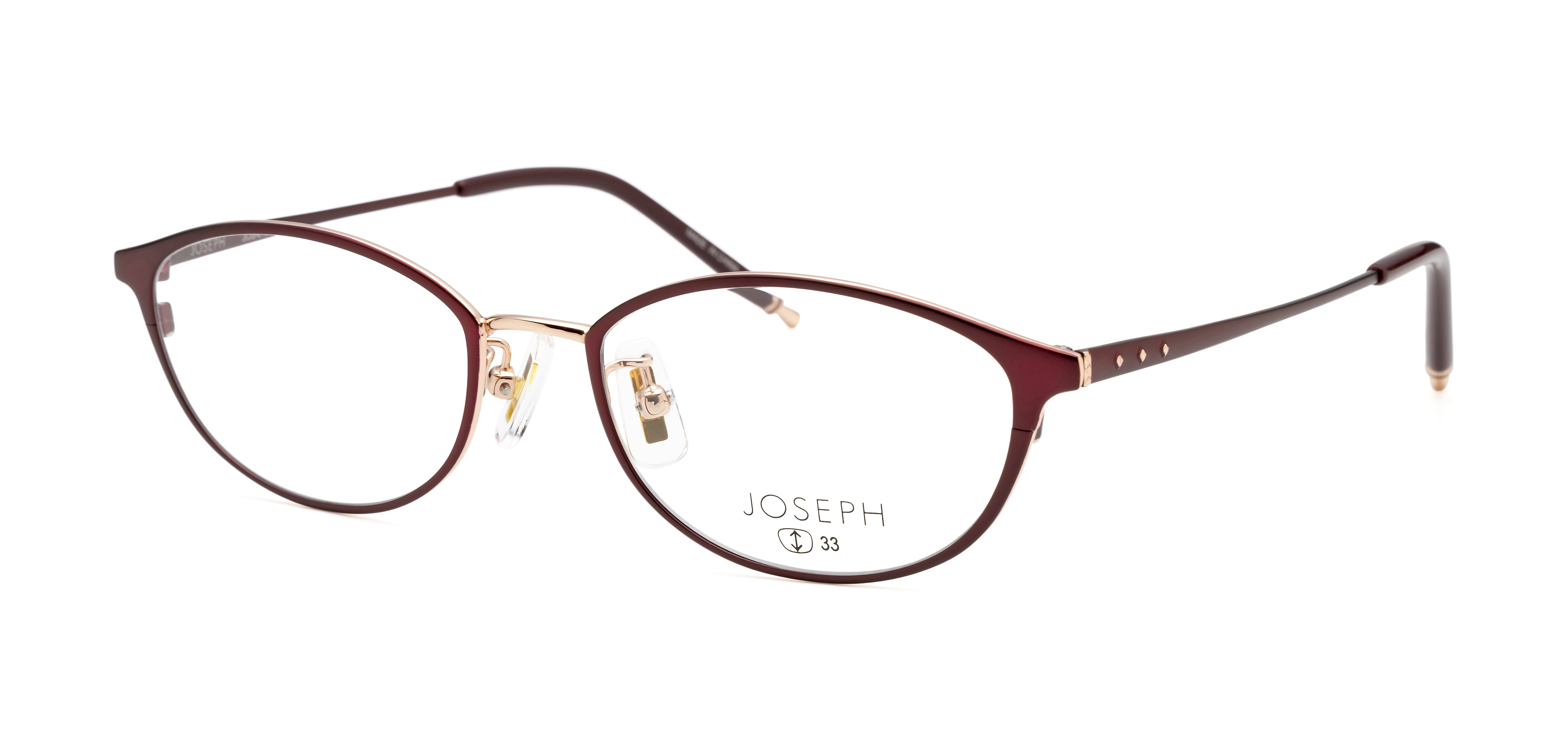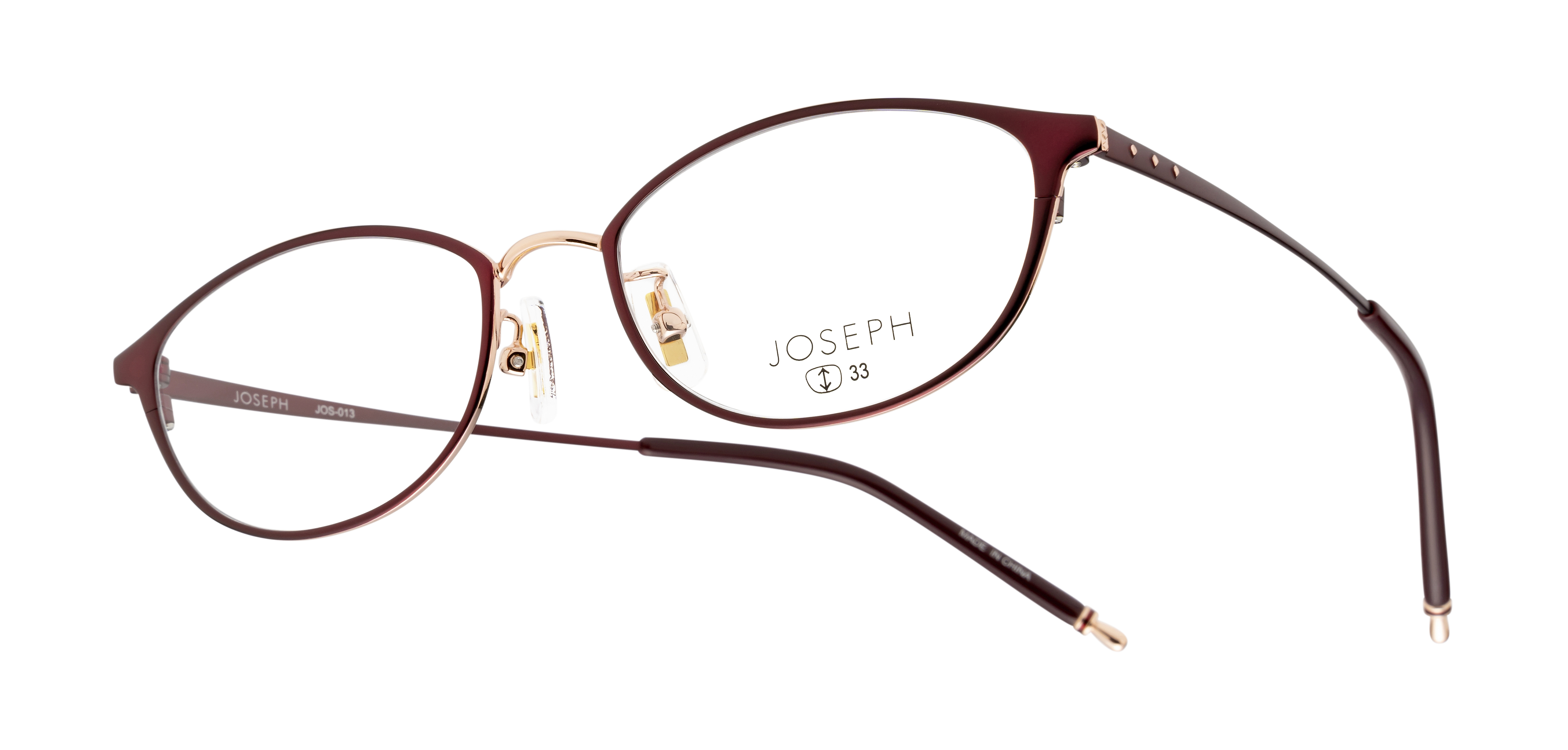 ロンドン発の人気アパレルブランドで、自分の価値観を持った自立した女性のための上質なカジュアルウェアブランド「JOSEPH」の眼鏡市場オリジナルモデル。カジュアルでありながらも高級感のあるフレームデザインは、モダンからクラシックまで幅広いスタイルにマッチします。JOS-013は、掛ける人を選ばない絶妙な天地幅のボストンシェイプです。こっくりしたマットカラーがこなれ感を演出してくれます。メタル部分のゴールドカラーが程よくアクセントになっています。