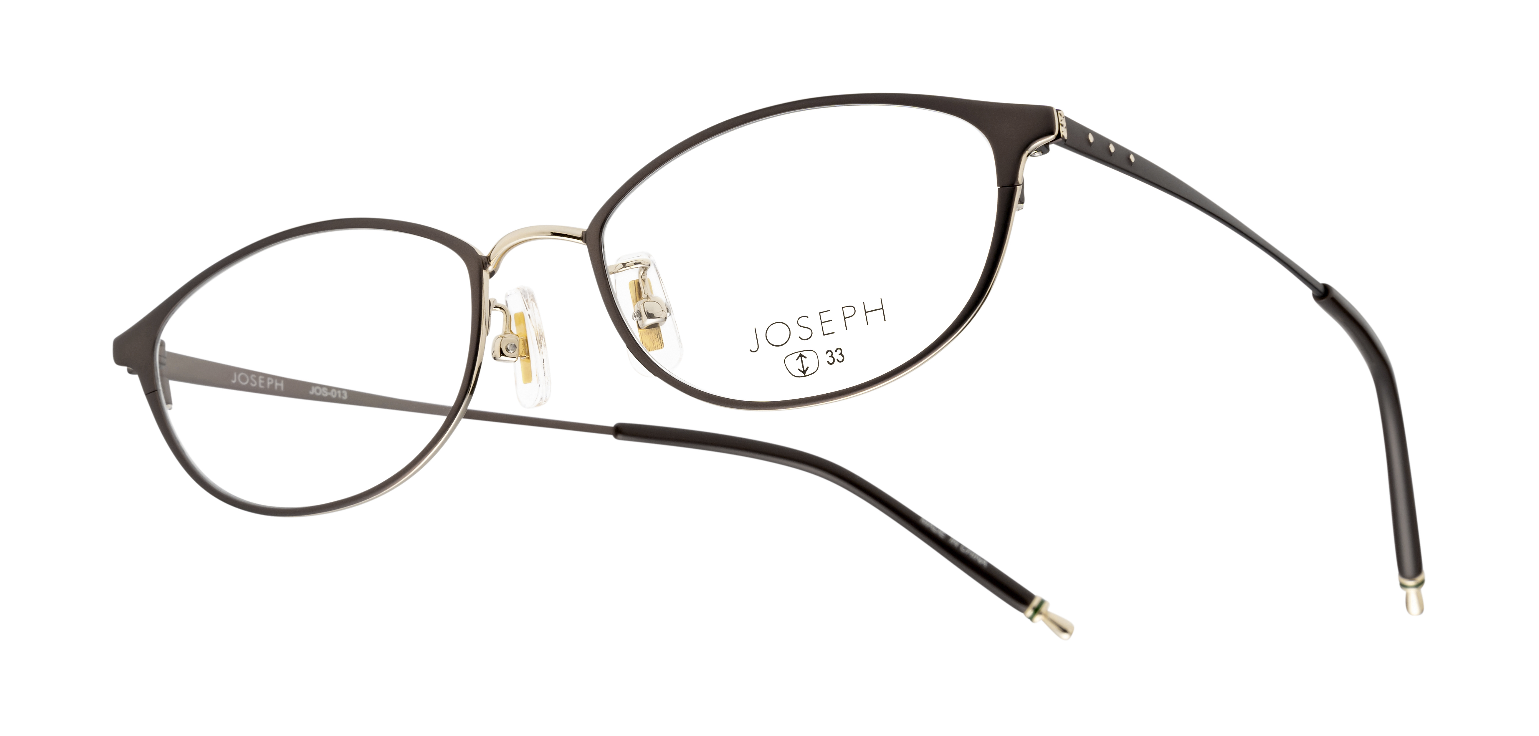 ロンドン発の人気アパレルブランドで、自分の価値観を持った自立した女性のための上質なカジュアルウェアブランド「JOSEPH」の眼鏡市場オリジナルモデル。カジュアルでありながらも高級感のあるフレームデザインは、モダンからクラシックまで幅広いスタイルにマッチします。JOS-013は、掛ける人を選ばない絶妙な天地幅のボストンシェイプです。こっくりしたマットカラーがこなれ感を演出してくれます。メタル部分のゴールドカラーが程よくアクセントになっています。
