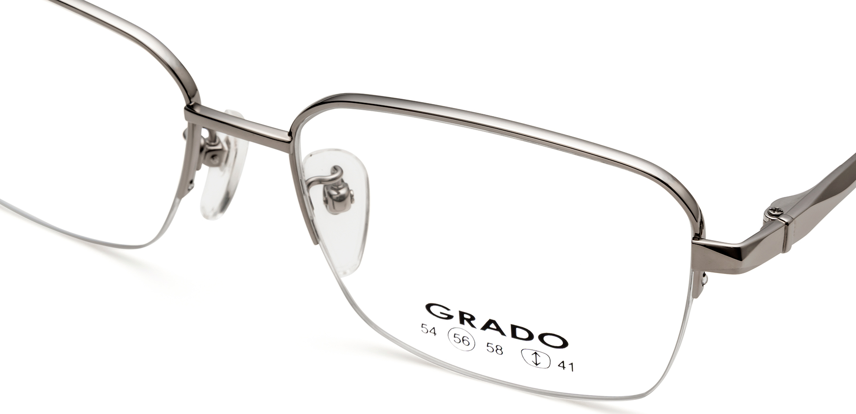 国産チタン素材など良品質素材を採用し、軽さと掛け心地にこだわったメガネの聖地「福井県鯖江」製の純国産フレーム。GR-8001は、スッキリとしたウェリントンを視野の広いナイロールに仕上げました。ヨロイとテンプルの大胆な面取りが角度によって美しく輝く、国産のチタンフレームです。豊富なサイズ展開とバネ丁番で、快適なフィット感を実現しています。
