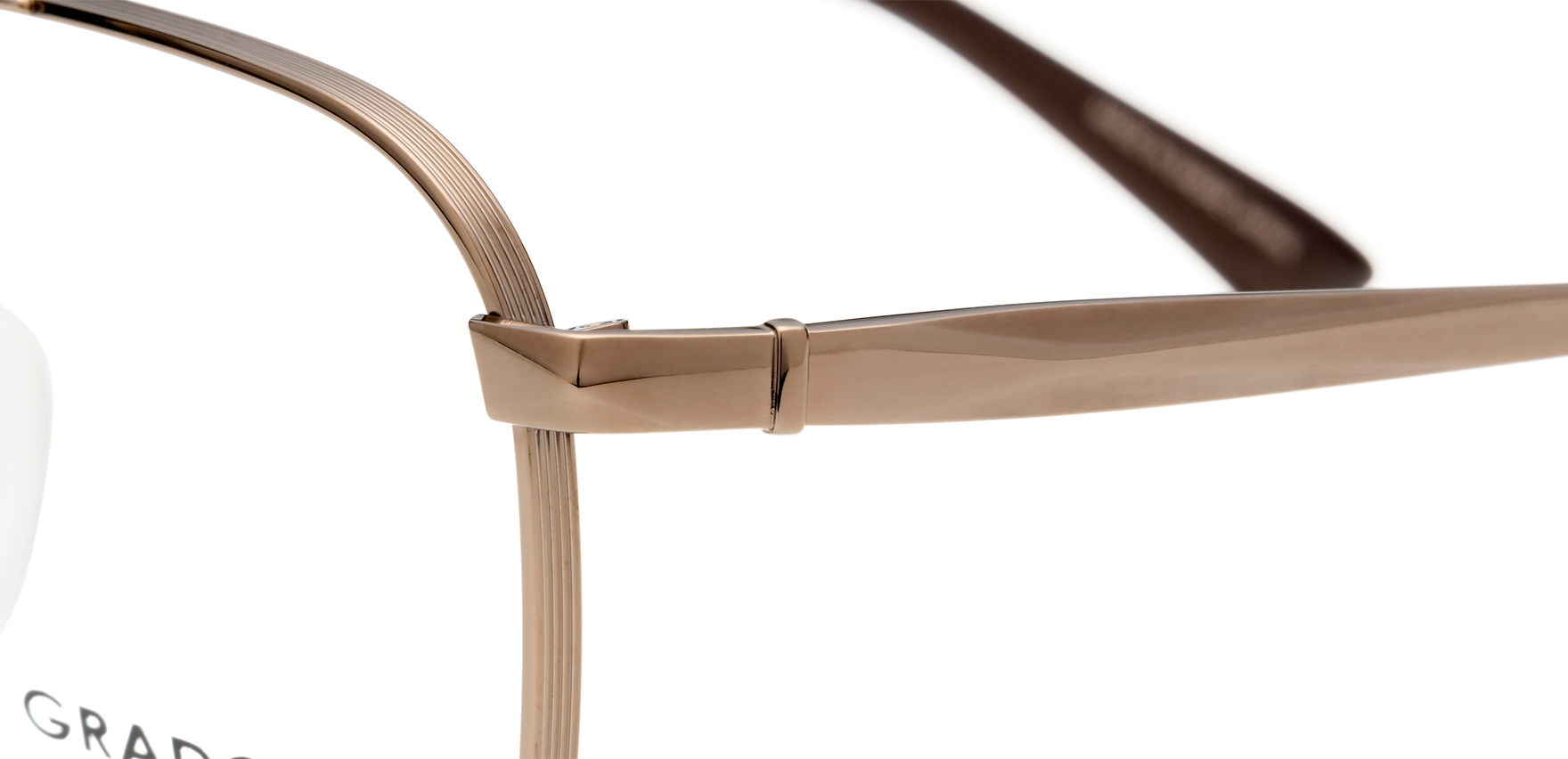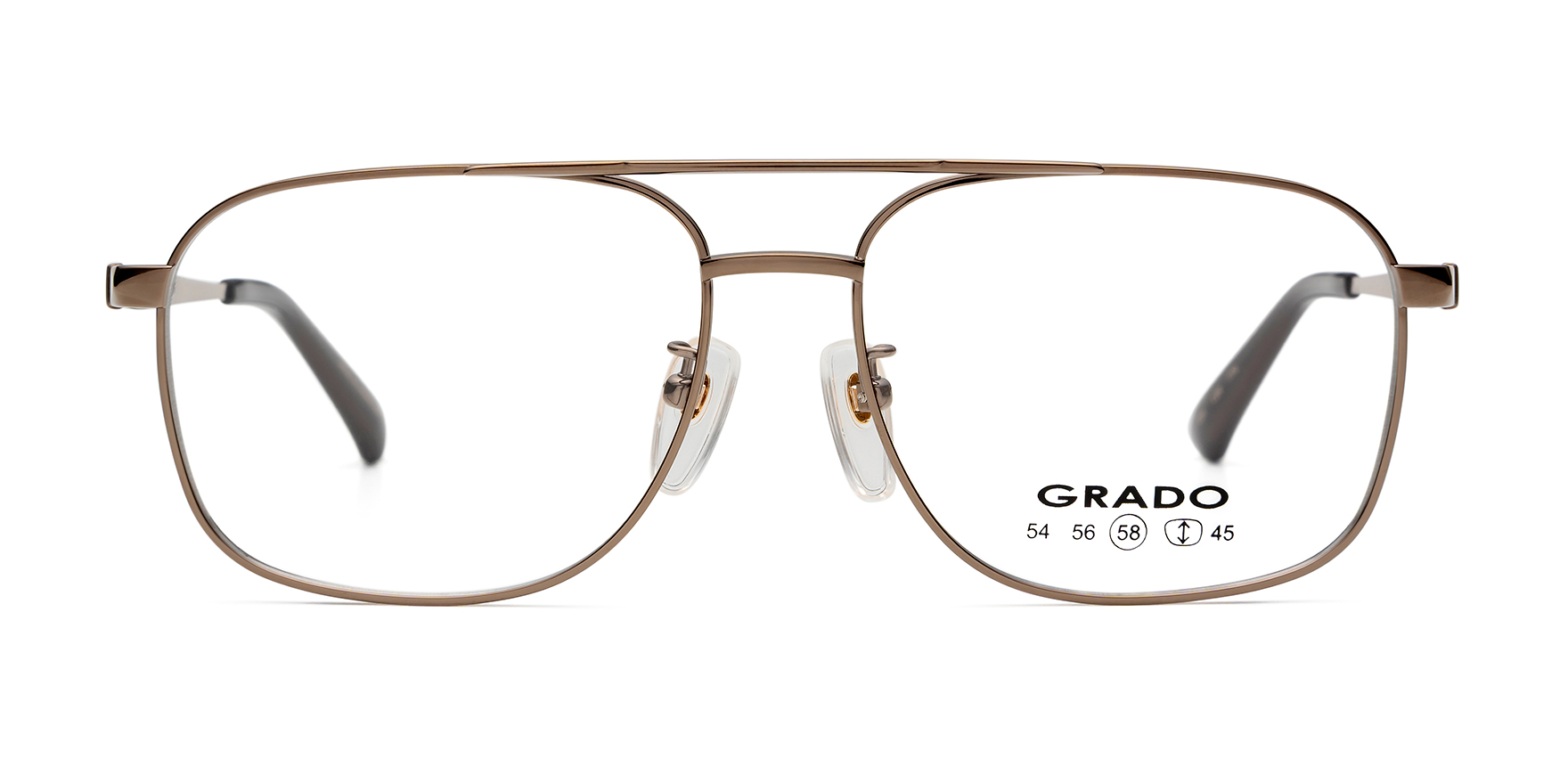 国産チタン素材など良品質素材を採用し、軽さと掛け心地にこだわったメガネの聖地「福井県鯖江」製の純国産フレーム。GR-8003は、天地を広めに取ったウェリントンにツーブリッジを組み合わせた存在感のあるデザインです。リムに細かな溝を入れた「レコードリム」を採用し、クラシカルな雰囲気をプラスしました。ヨロイとテンプルの立体的なカットが角度によってきらりと輝く、上質な国産チタンフレームです。。豊富なサイズとバネ丁番仕様で、圧迫感なくお顔にフィットします。