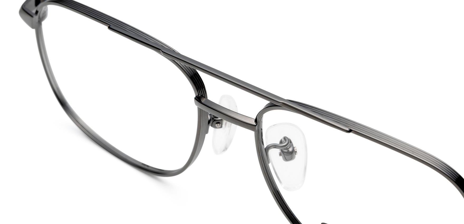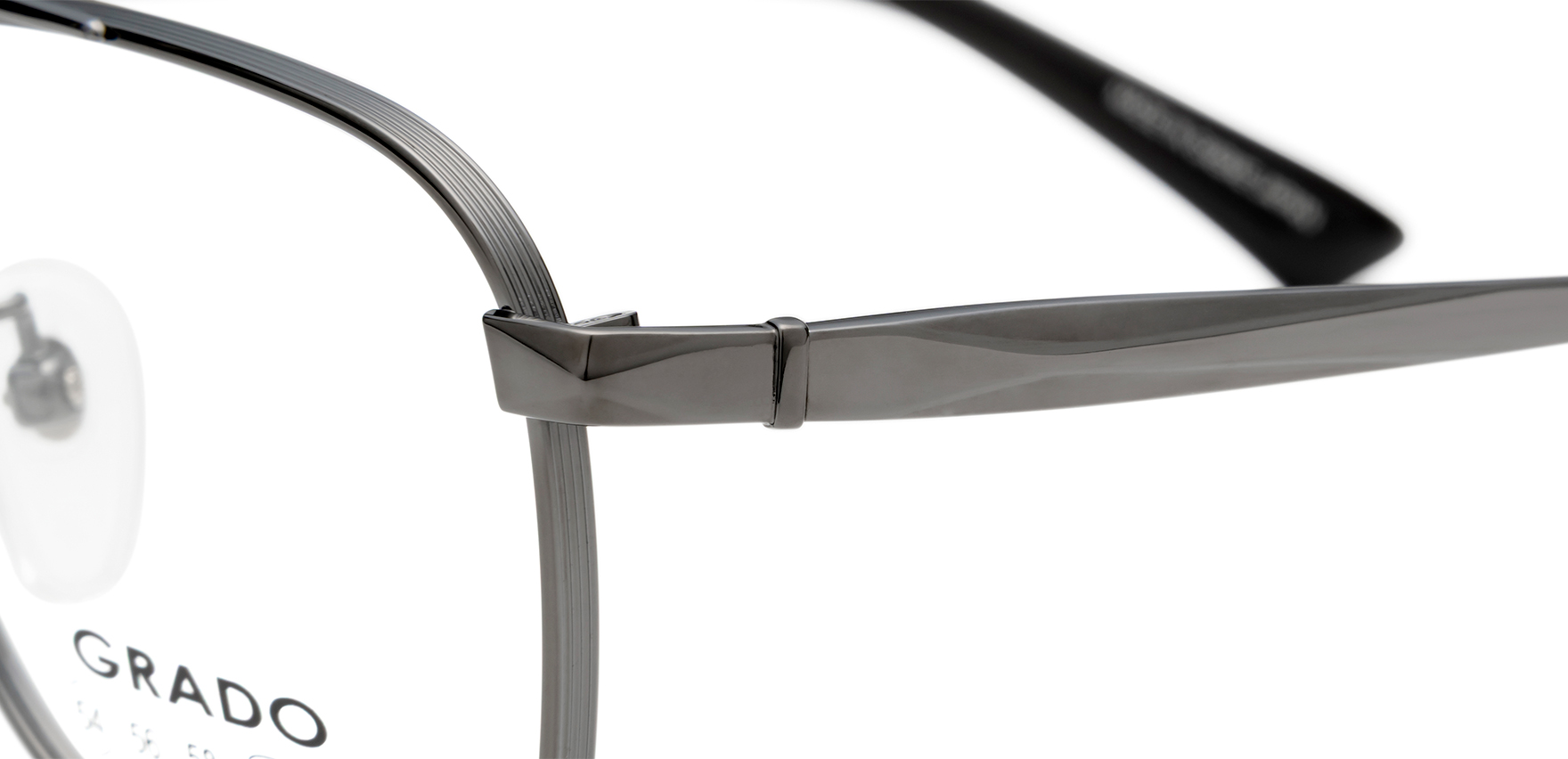 国産チタン素材など良品質素材を採用し、軽さと掛け心地にこだわったメガネの聖地「福井県鯖江」製の純国産フレーム。GR-8003は、天地を広めに取ったウェリントンにツーブリッジを組み合わせた存在感のあるデザインです。リムに細かな溝を入れた「レコードリム」を採用し、クラシカルな雰囲気をプラスしました。ヨロイとテンプルの立体的なカットが角度によってきらりと輝く、上質な国産チタンフレームです。豊富なサイズとバネ丁番仕様で、圧迫感なくお顔にフィットします。