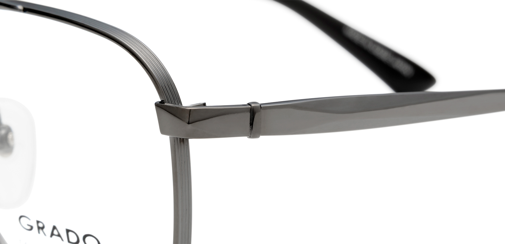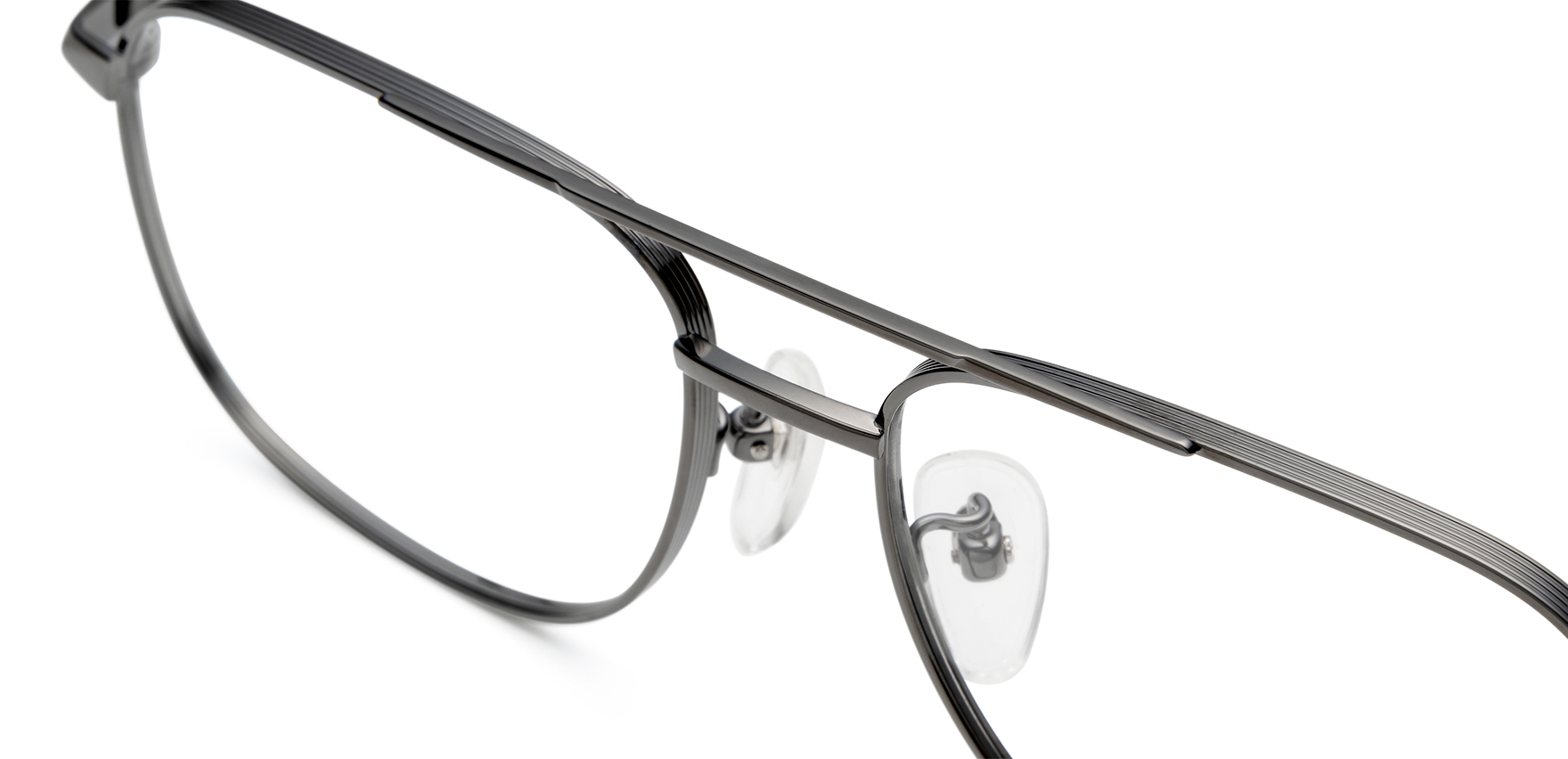 国産チタン素材など良品質素材を採用し、軽さと掛け心地にこだわったメガネの聖地「福井県鯖江」製の純国産フレーム。GR-8003は、天地を広めに取ったウェリントンにツーブリッジを組み合わせた存在感のあるデザインです。リムに細かな溝を入れた「レコードリム」を採用し、クラシカルな雰囲気をプラスしました。ヨロイとテンプルの立体的なカットが角度によってきらりと輝く、上質な国産チタンフレームです。豊富なサイズとバネ丁番仕様で、圧迫感なくお顔にフィットします。