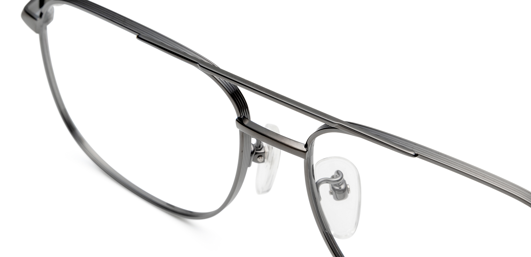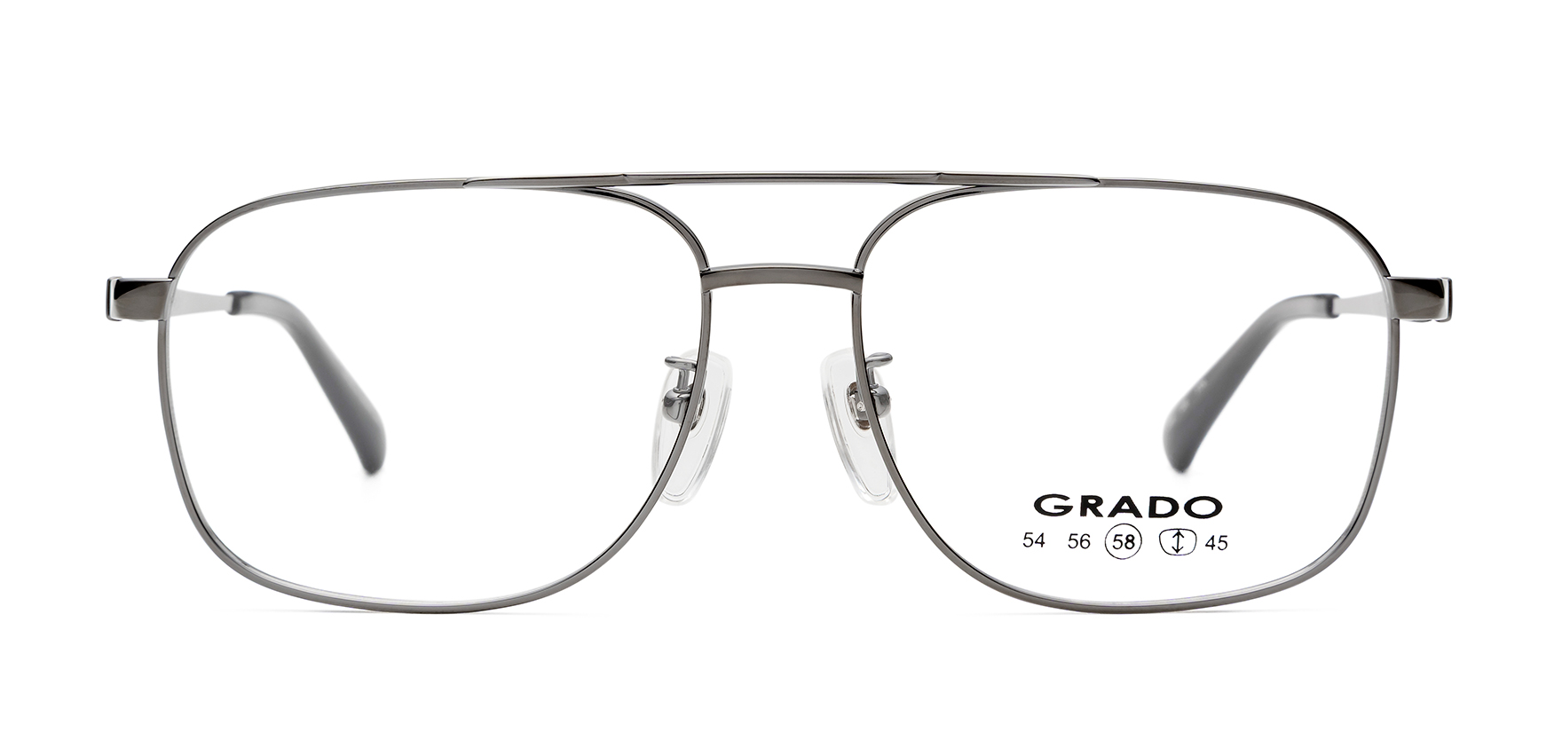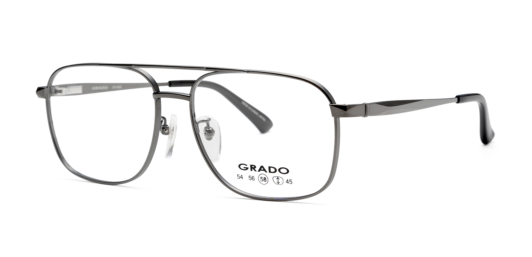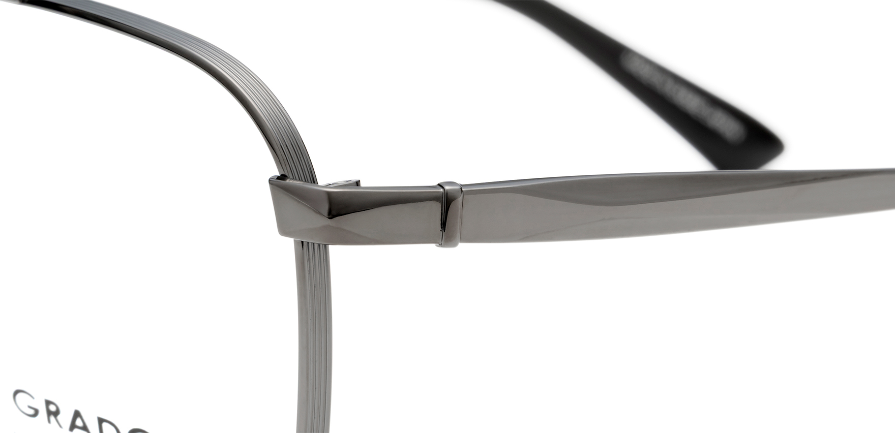 国産チタン素材など良品質素材を採用し、軽さと掛け心地にこだわったメガネの聖地「福井県鯖江」製の純国産フレーム。GR-8003は、天地を広めに取ったウェリントンにツーブリッジを組み合わせた存在感のあるデザインです。リムに細かな溝を入れた「レコードリム」を採用し、クラシカルな雰囲気をプラスしました。ヨロイとテンプルの立体的なカットが角度によってきらりと輝く、上質な国産チタンフレームです。豊富なサイズとバネ丁番仕様で、圧迫感なくお顔にフィットします。