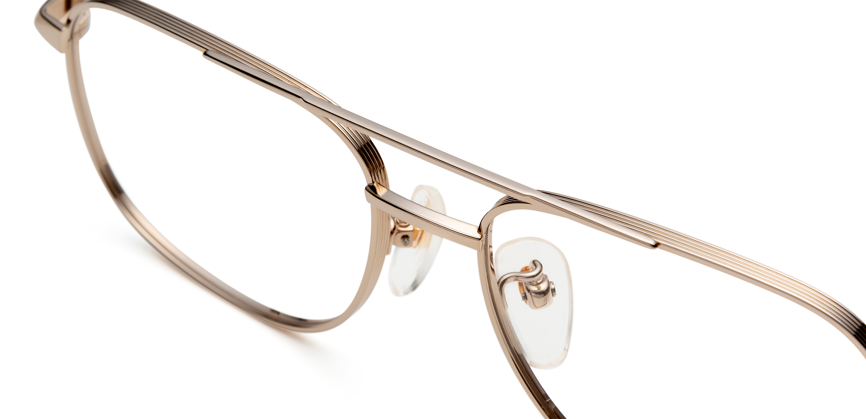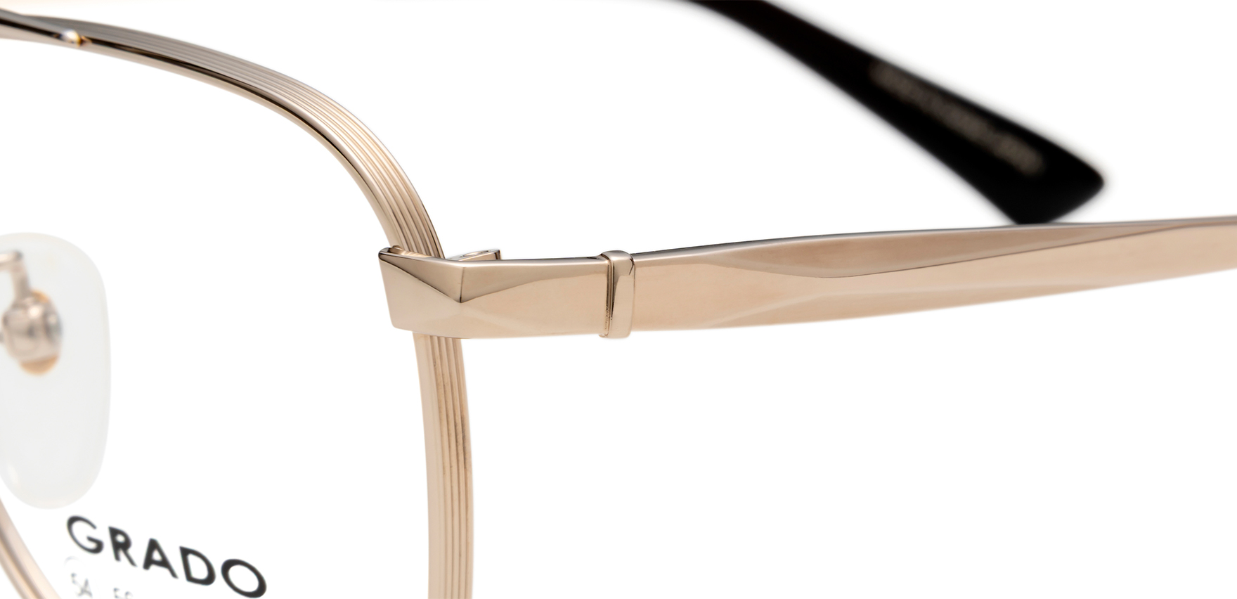 国産チタン素材など良品質素材を採用し、軽さと掛け心地にこだわったメガネの聖地「福井県鯖江」製の純国産フレーム。GR-8003は、天地を広めに取ったウェリントンにツーブリッジを組み合わせた存在感のあるデザインです。リムに細かな溝を入れた「レコードリム」を採用し、クラシカルな雰囲気をプラスしました。ヨロイとテンプルの立体的なカットが角度によってきらりと輝く、上質な国産チタンフレームです。豊富なサイズとバネ丁番仕様で、圧迫感なくお顔にフィットします。