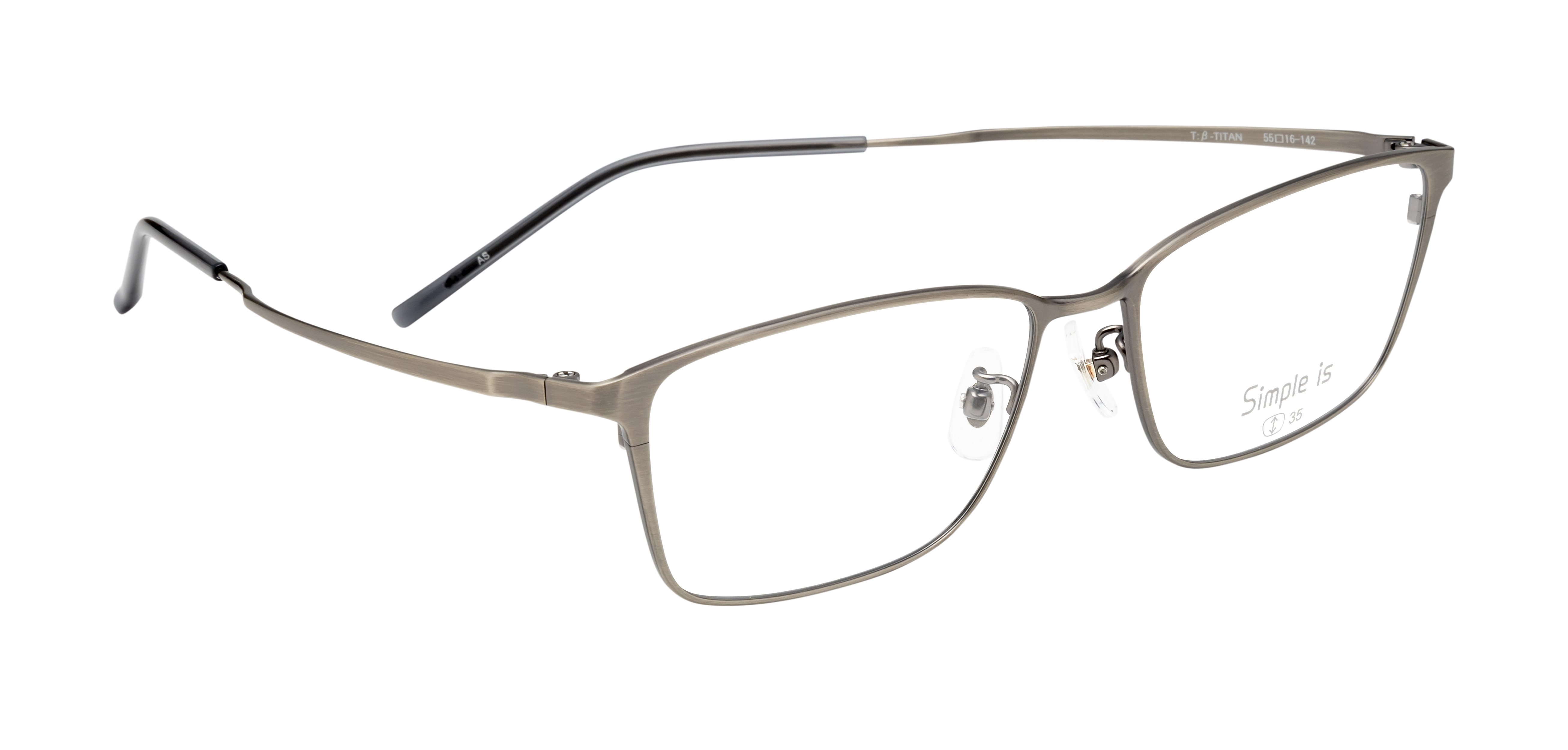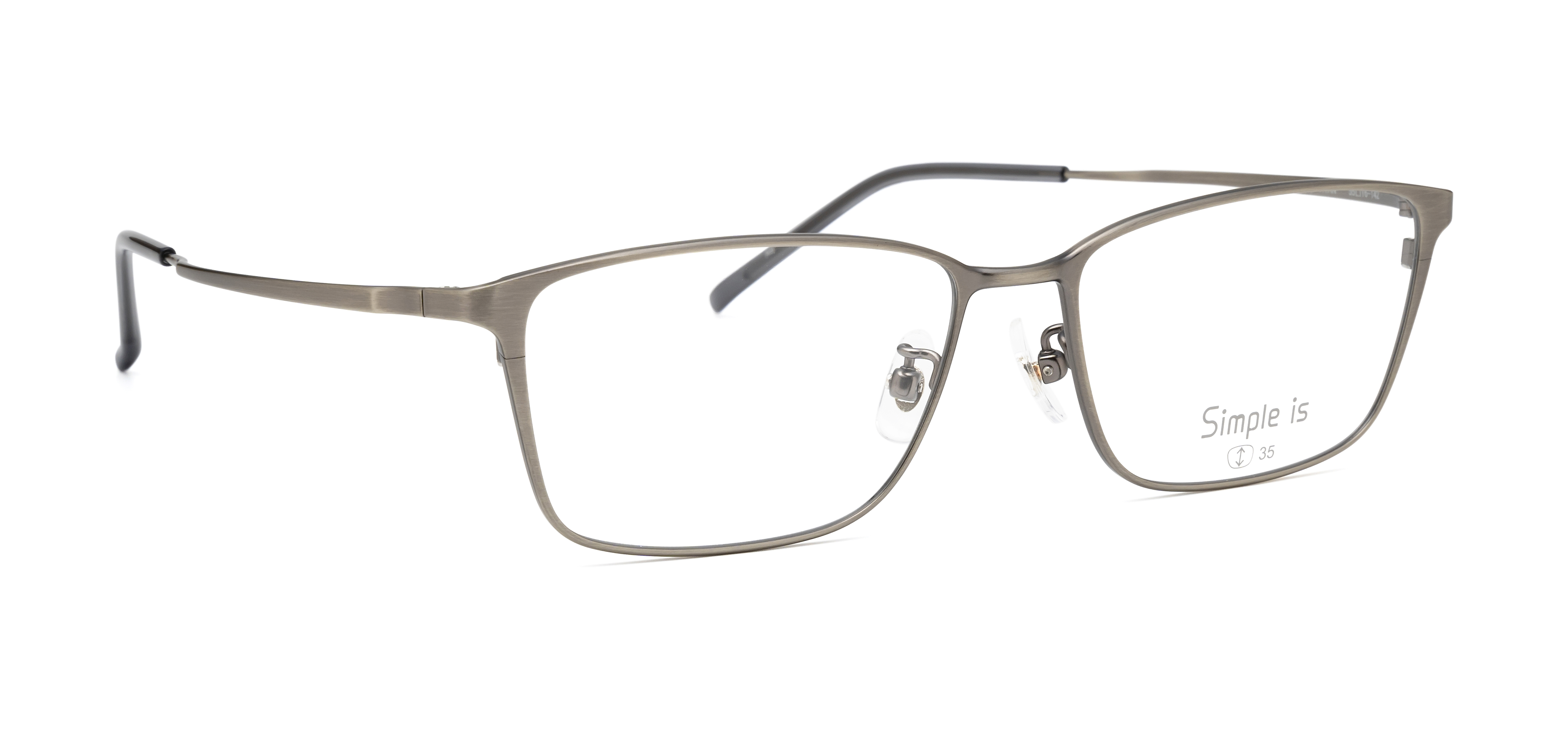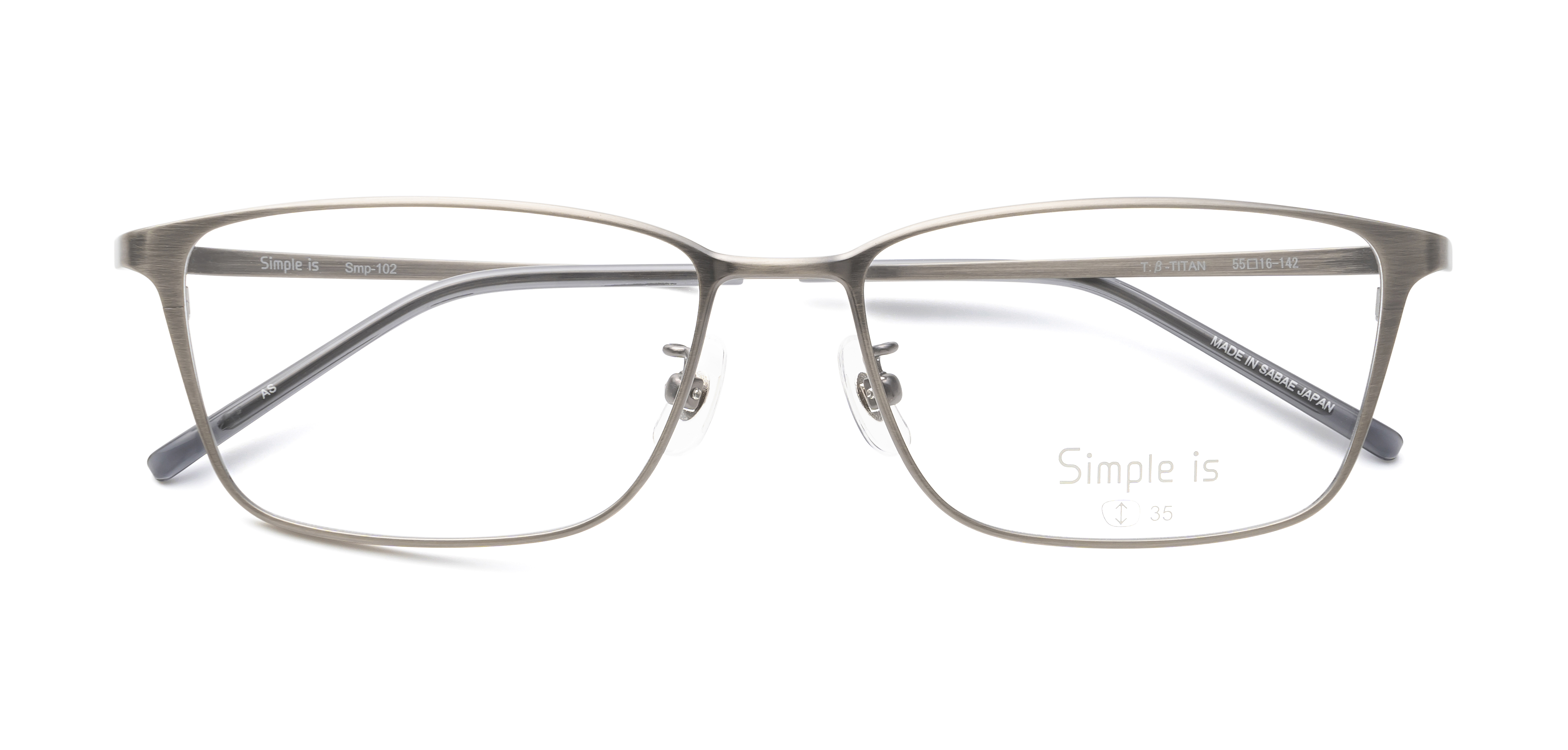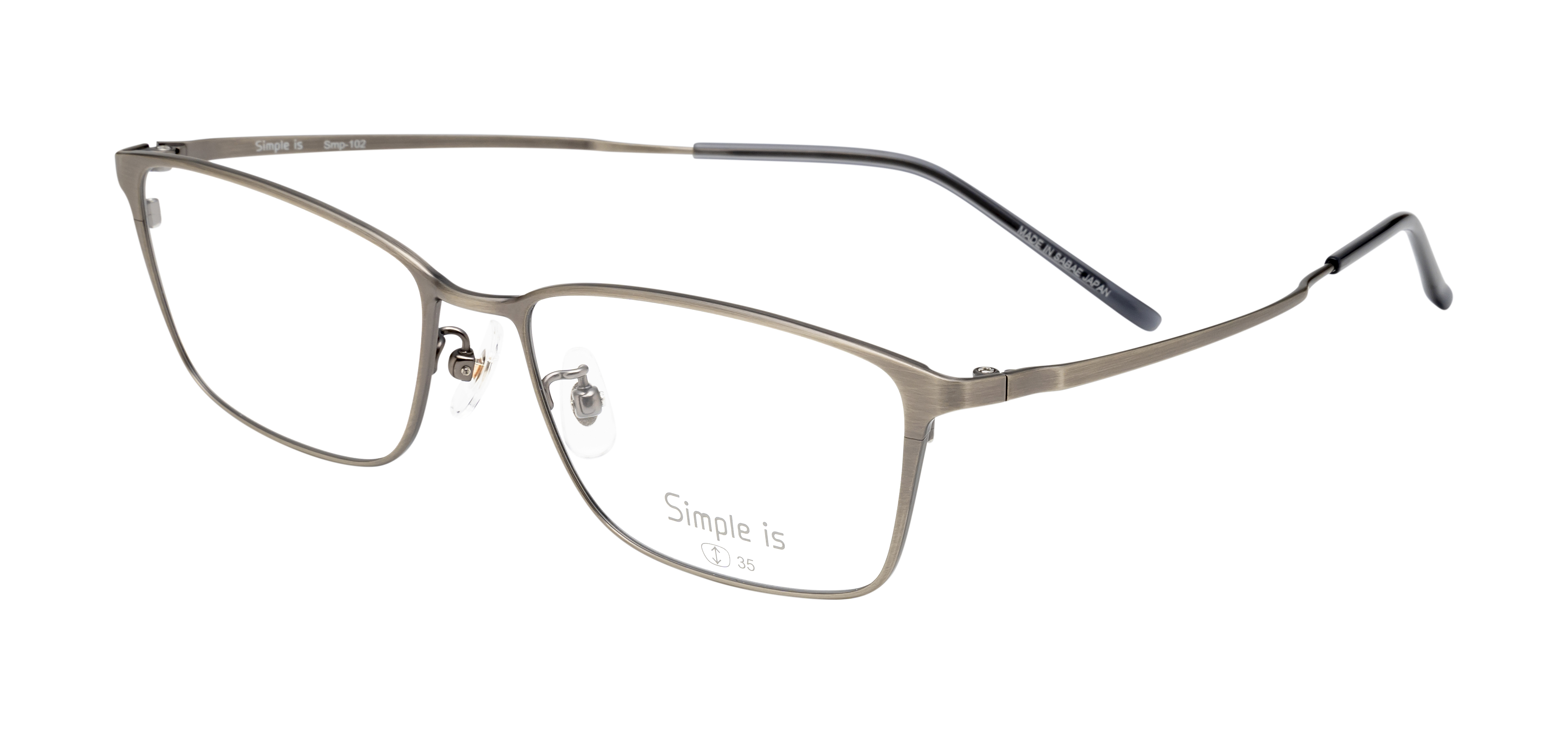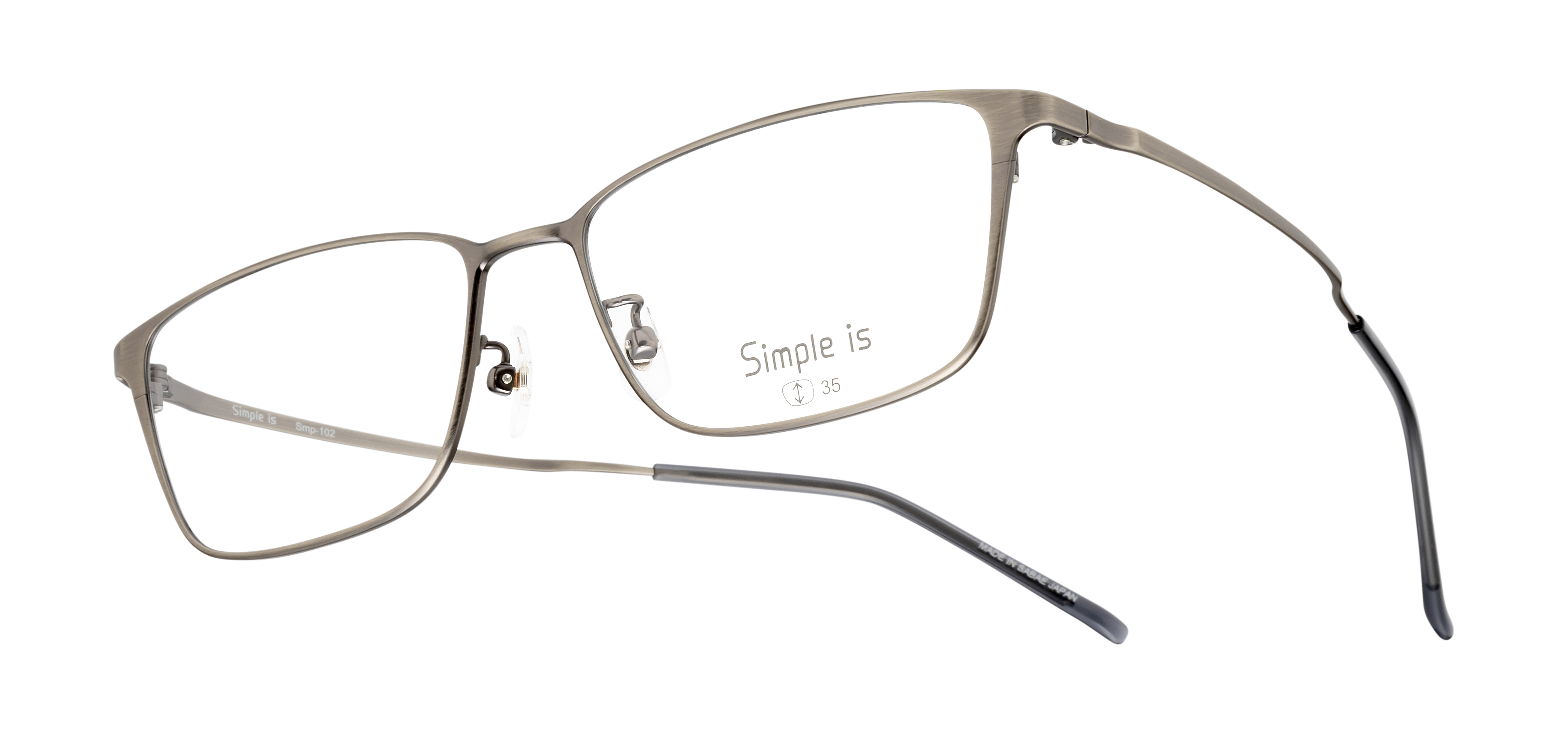なるべくシンプルに、でもシンプルの中にちょっとしたこだわりを持たせたい。そんな声から生まれた眼鏡市場オリジナルブランド「Simple is」。Smp-102は、表面に特殊加工を施してヴィンテージ感を出しています。オーソドックスなスクエアタイプのフレームなので、顔にとても馴染みやすいです。金属の素材感・質感が楽しめる、奥深い一本です。