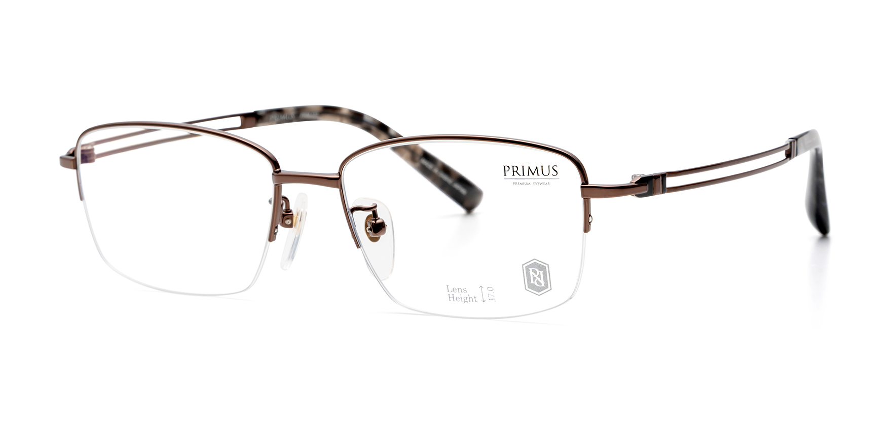 眼鏡の聖地「鯖江」の眼鏡職人によって1本1本丁寧に仕上げられた、眼鏡の品質と機能を重視する大人の男性におススメする、眼鏡市場の最高級ハウスブランドPRIMUS”プリムス”。PRM-110は、スクエア型のナイロールモデルです。細身のヨロイから伸びる2本のラインが、お顔まわりにシャープで知的な印象を与え、ビジネススタイルにも自然に溶け込みます。アセテート素材のモダンと調和したカラーをテンプルの端に施し、全体のデザインを上品にまとめ上げています。