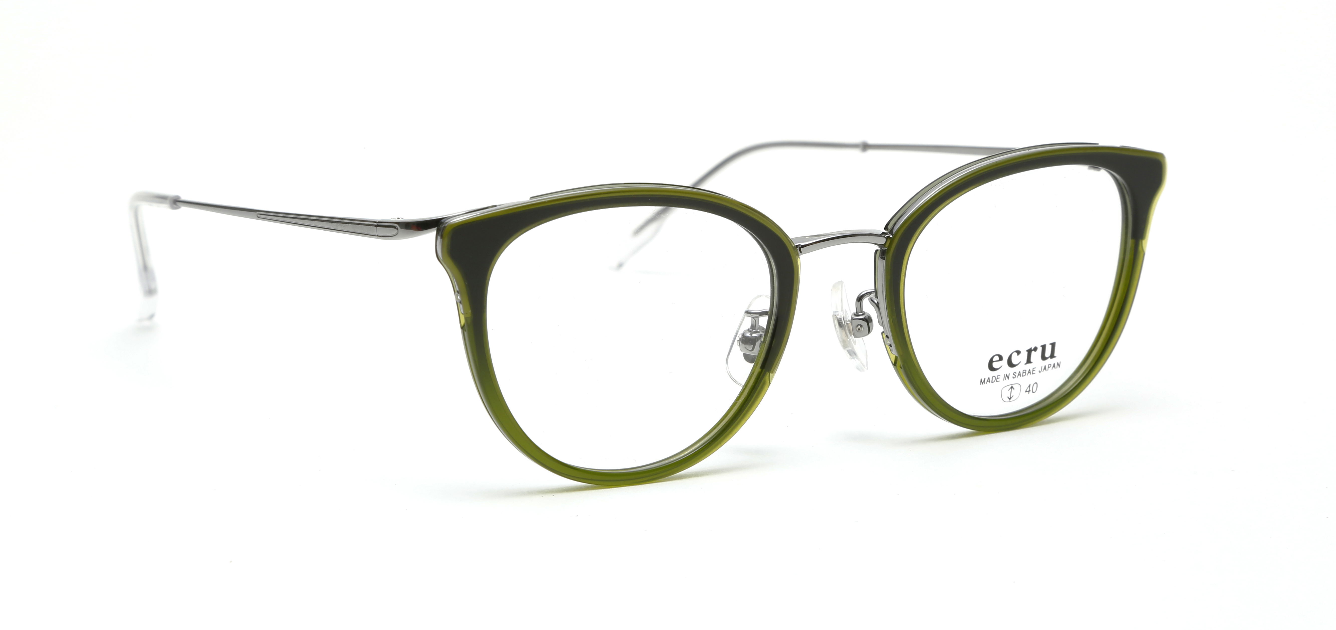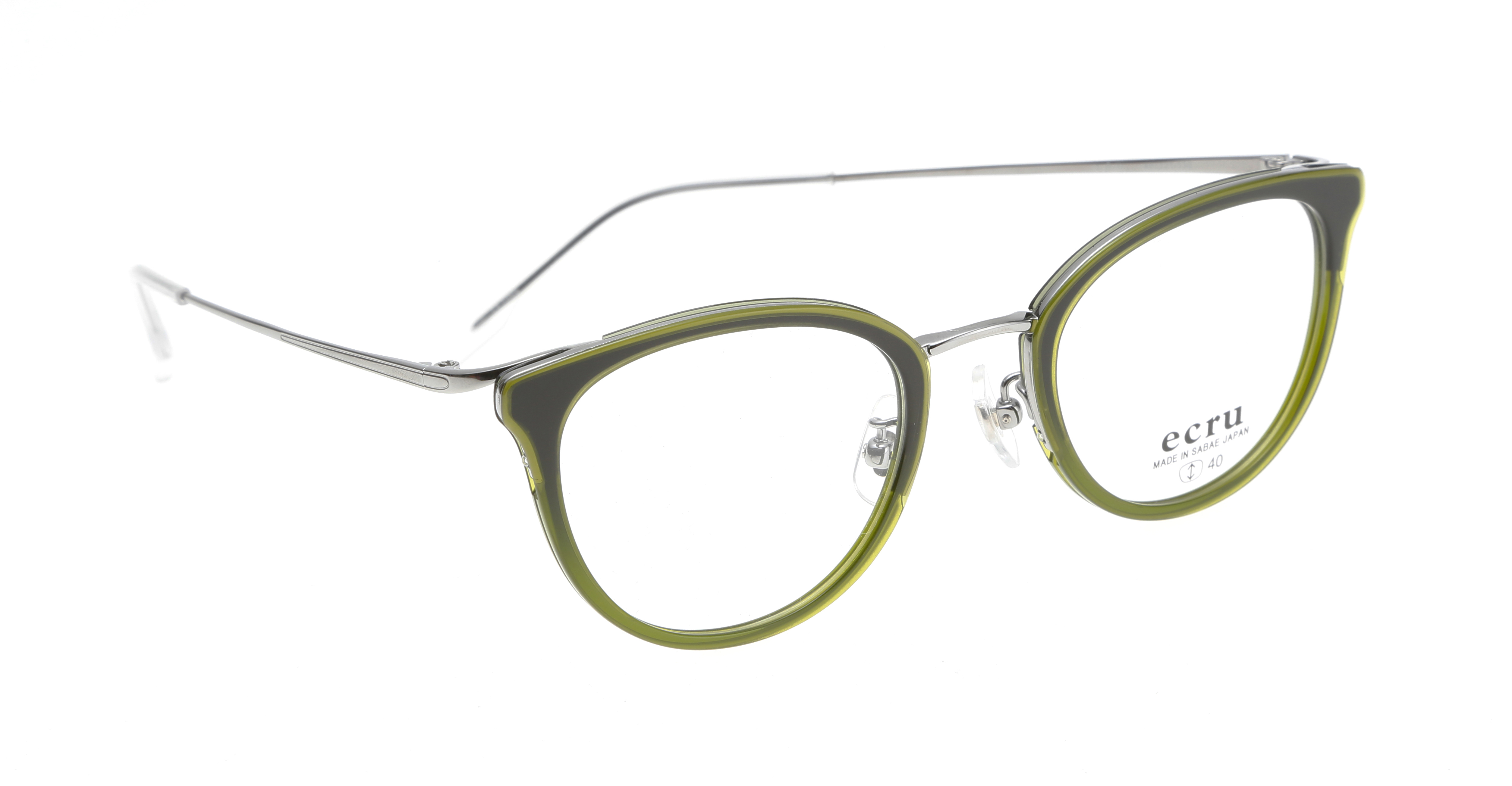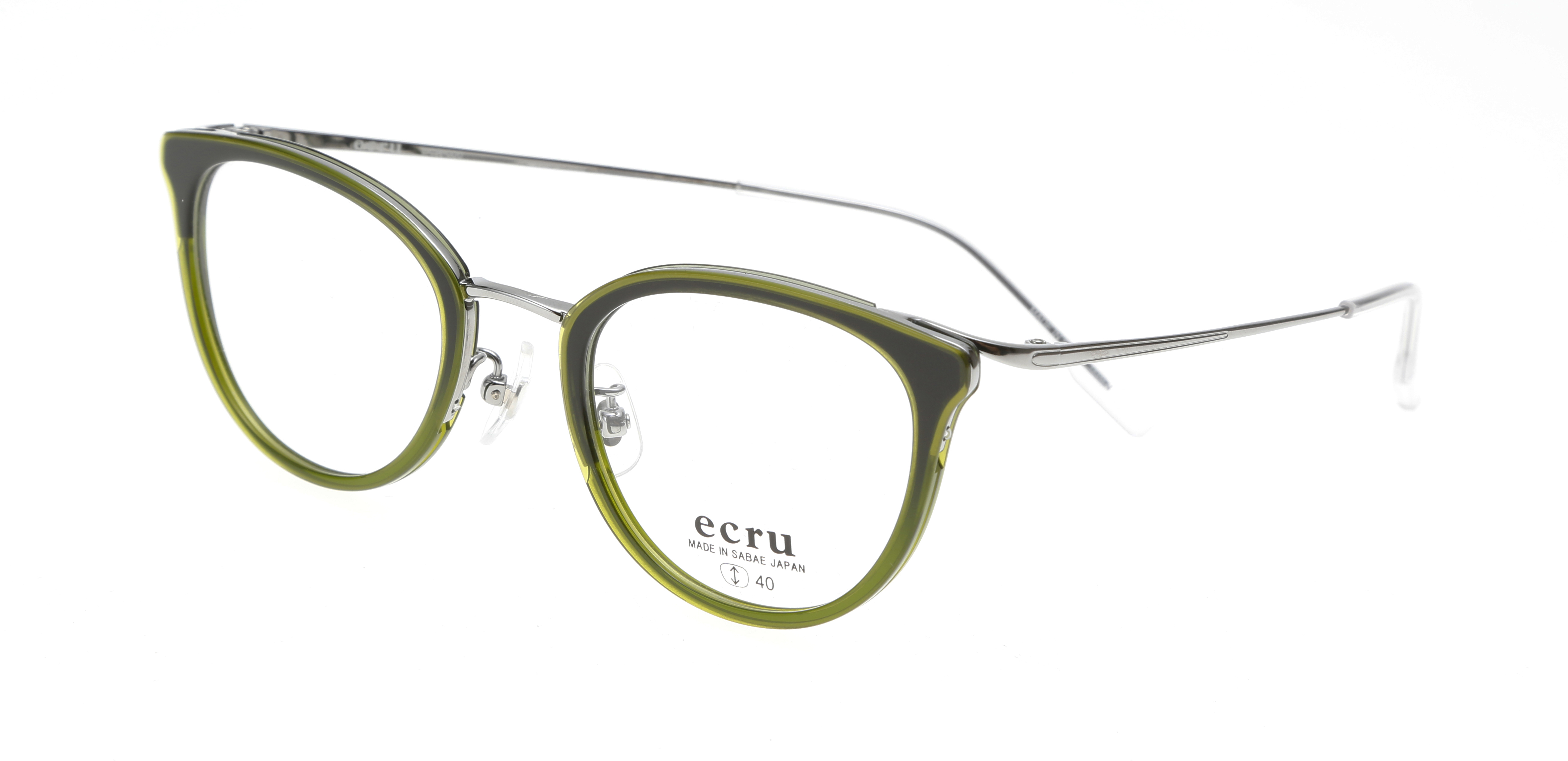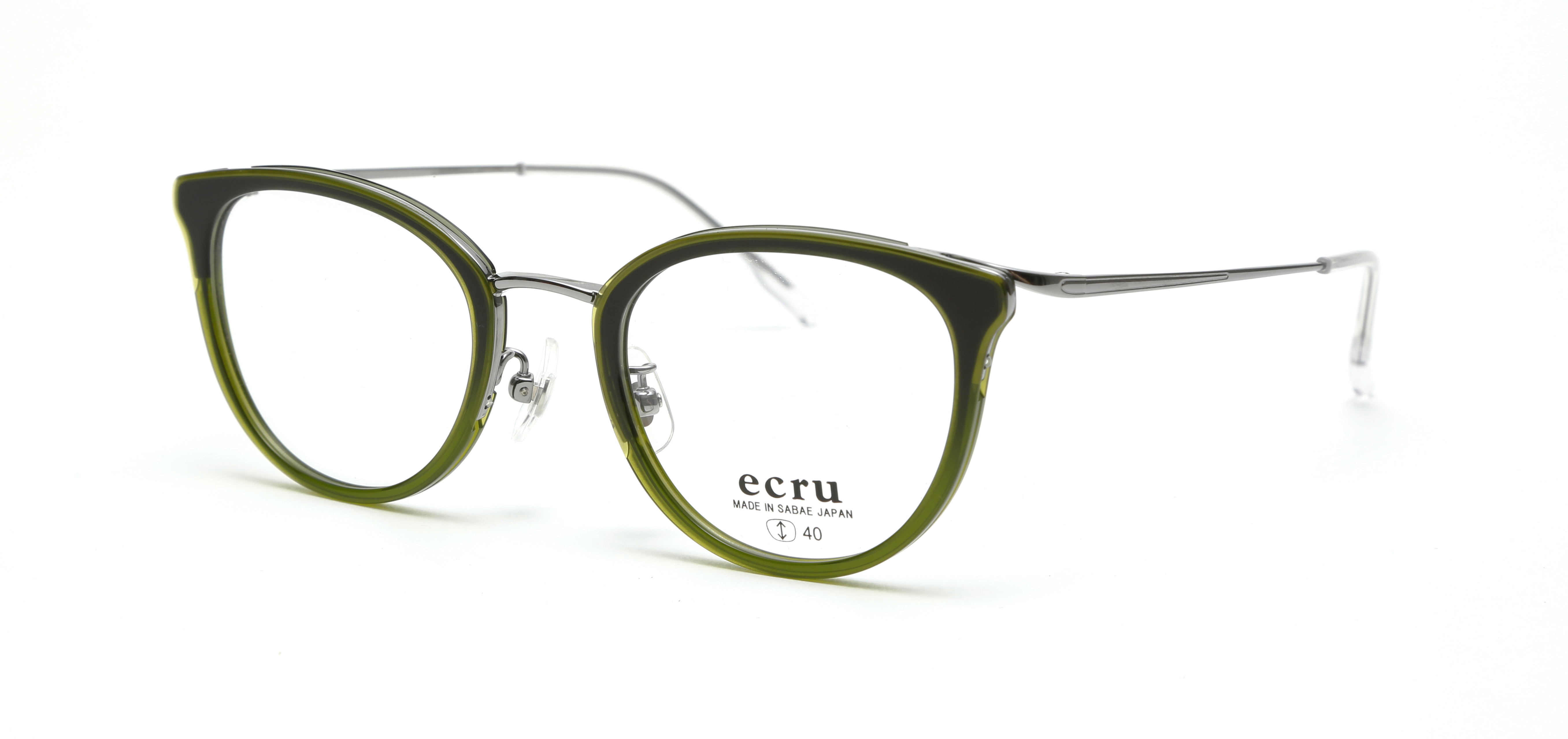 着飾りすぎないシンプルなデザインにクラシックなエッセンスを取り入れ、トレンドファッションに寄り添い、フランス語で「素直なままで」「自然なままで」という意味を持つ「ecru」。素直に自分達が「かっこいい」「キレイ」と思うものを発信するブランドです。ECR-006は、丸みを帯びた優しいレンズシェイプとヨロイのブローラインが特徴の、新しいスタイルのコンビフレームです。