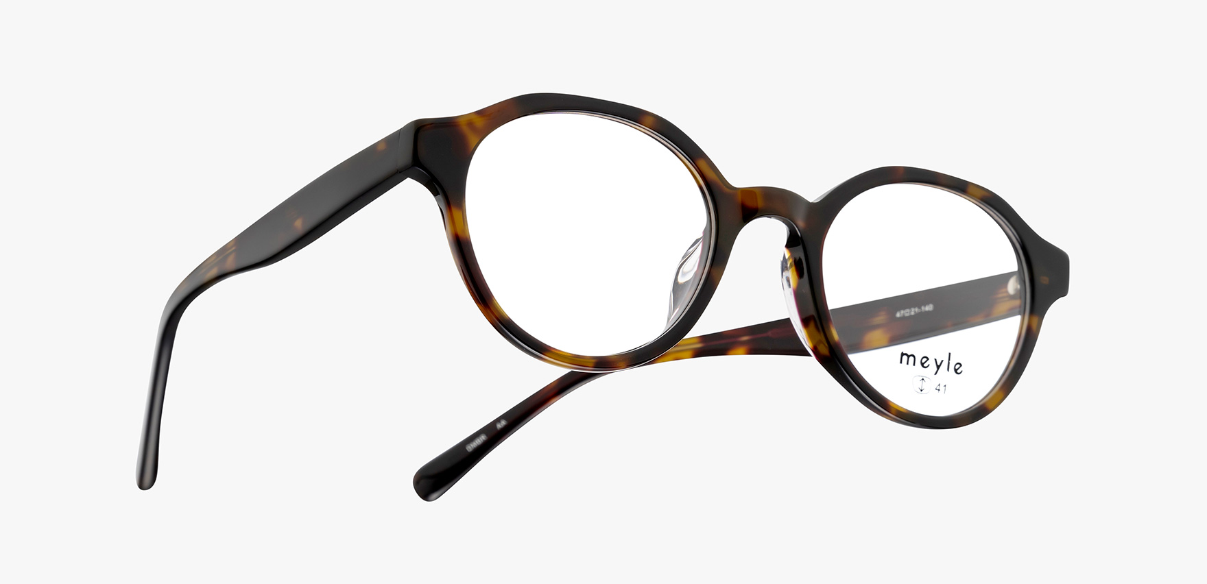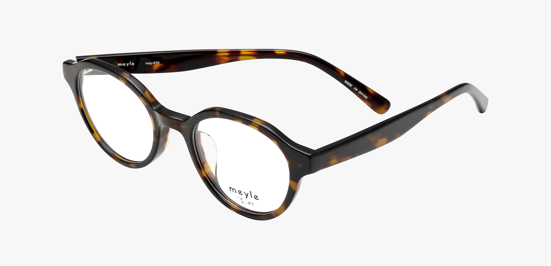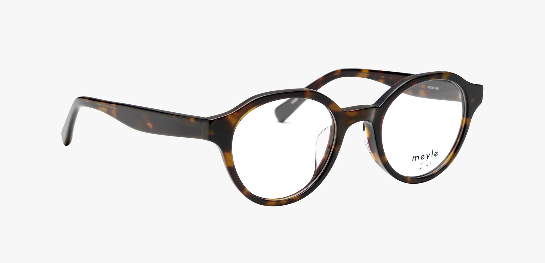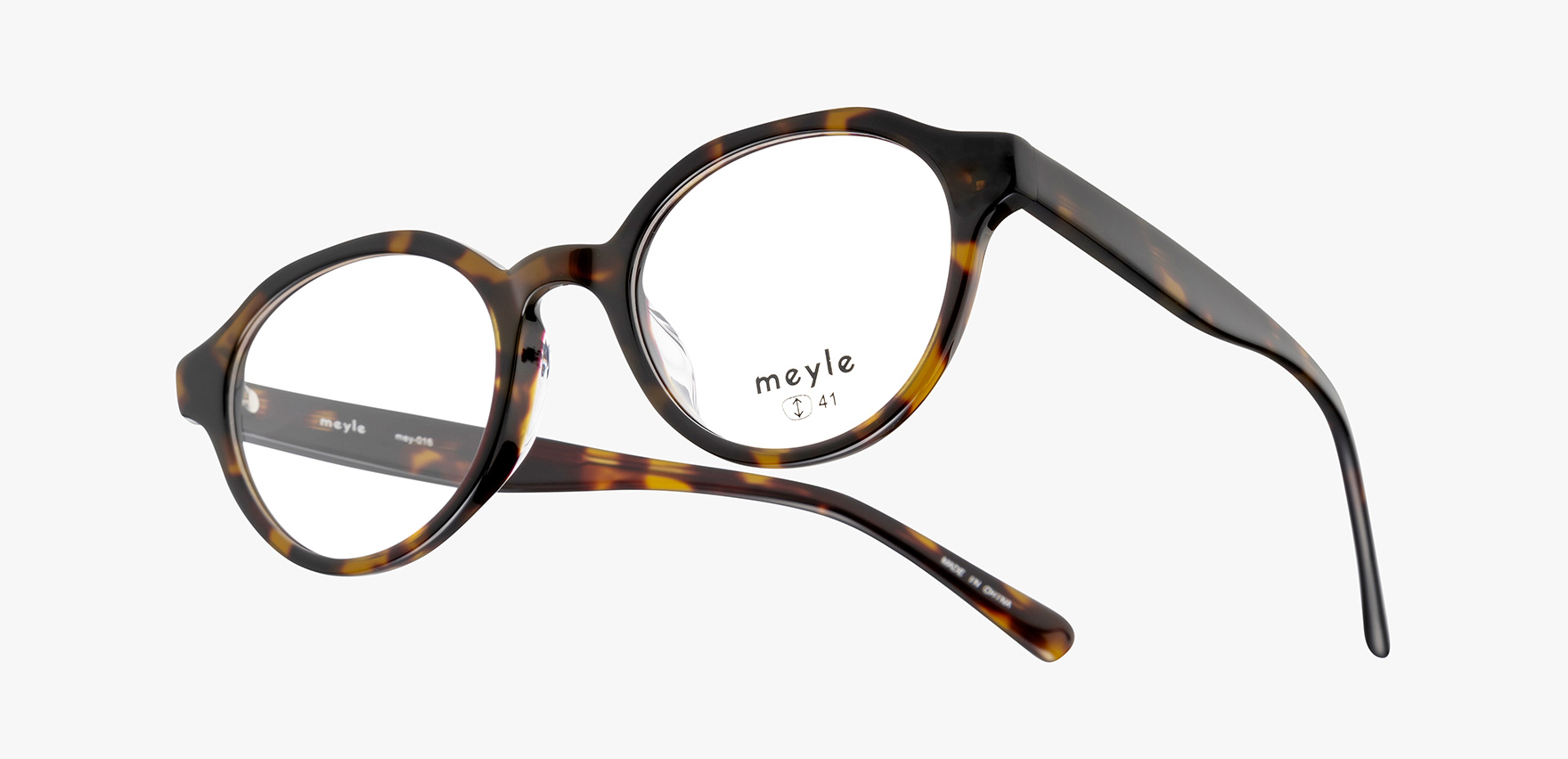 「オシャレが好き、流行が好き、シェアしたい」そんなファッションが好きな女性のためにメガネのコーディネートを楽しんで欲しいという思いから生まれたブランド「meyle-メイル-」。mey-016は、玉形はボストンですが、フチの形状はクラウンパントでデザインしたこだわりの一本です。デザイン性のあるメガネを掛けたいけど、派手過ぎるものは勇気が出ないという方におすすめの一本です。