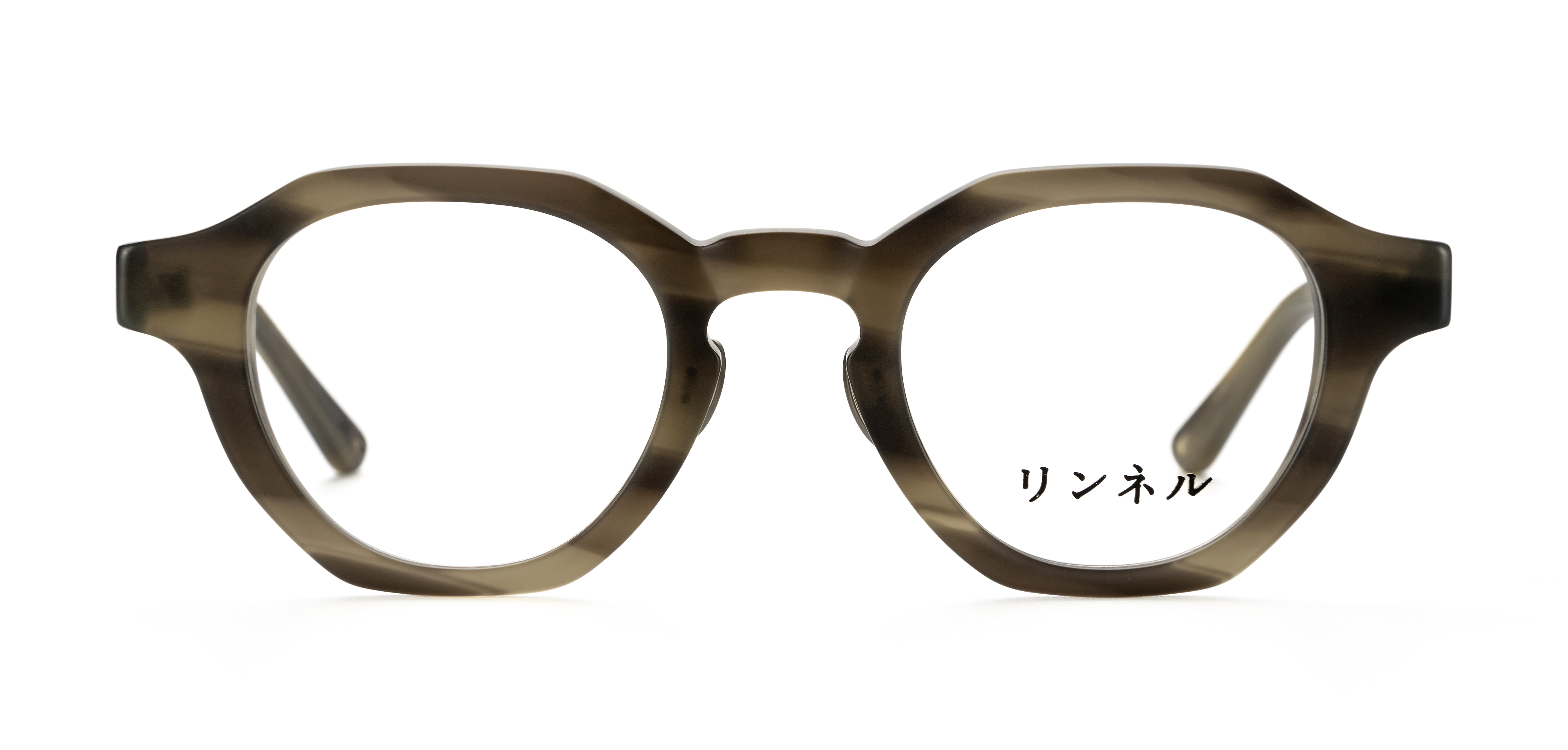 Lin-04は、厚めの生地と存在感のあるレンズシェイプが特徴的です。触り心地の良いハーフマットの質感と角の取れたデザインが、温かみのある雰囲気を演出します。セル先にあいた穴が、置いたときの可愛いポイントです。