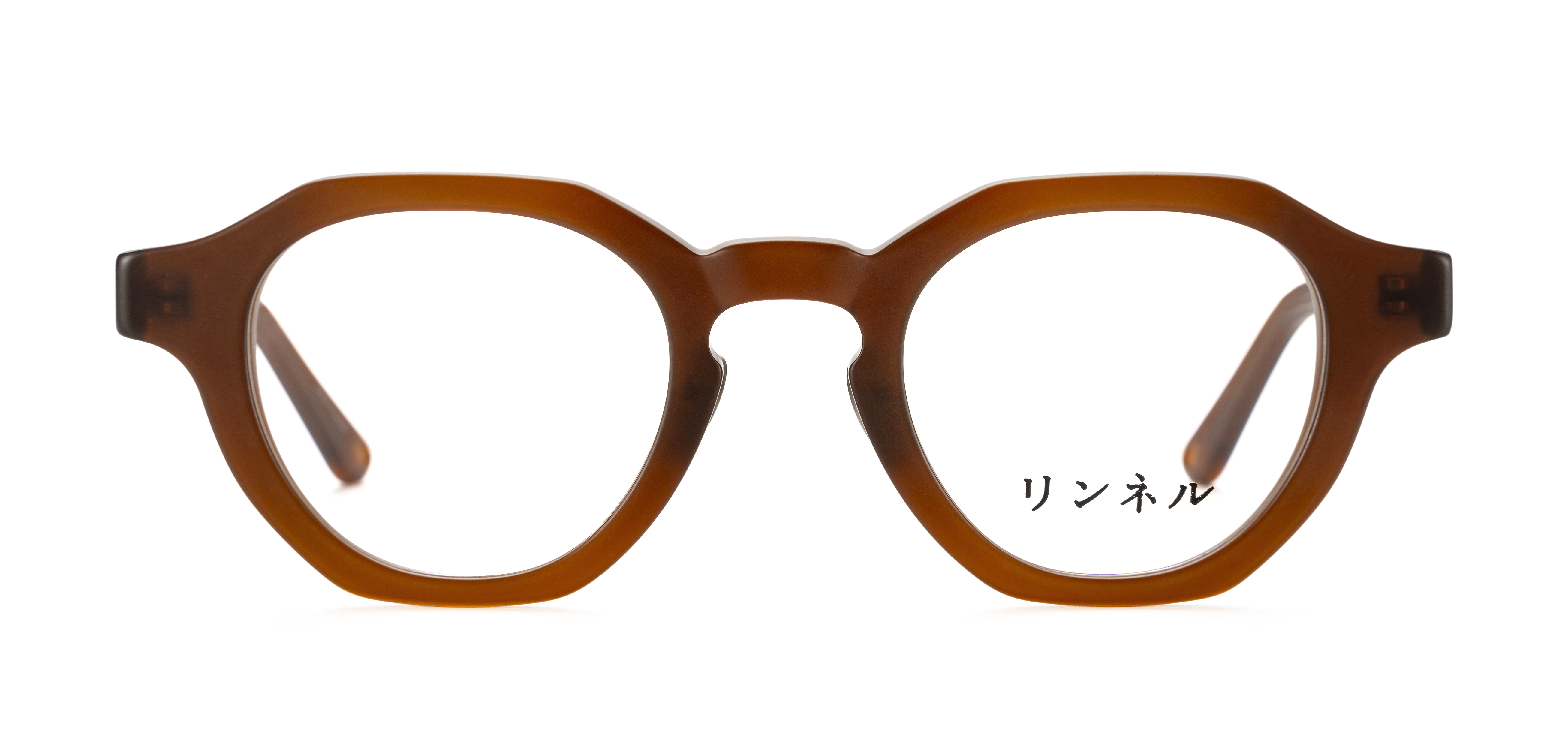 Lin-04は、厚めの生地と存在感のあるレンズシェイプが特徴的です。触り心地の良いハーフマットの質感と角の取れたデザインが、温かみのある雰囲気を演出します。セル先にあいた穴が、置いたときの可愛いポイントです。