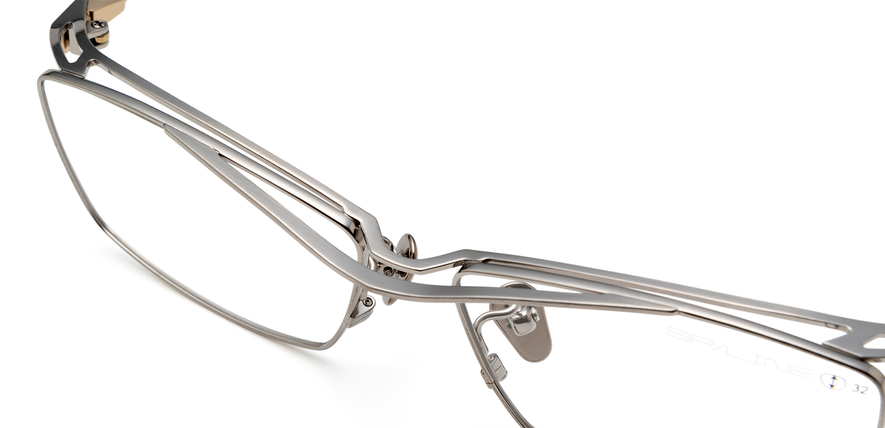 「SP/LINE(スプライン)」は、高い耐久性と優しいかけ心地が特徴の眼鏡市場オリジナルブランドです。3本のβチタンを螺旋状にねじったワイヤーのつるが、従来のメガネよりも高い耐久性と快適な掛け心地を実現しました。SPL-S02は、しなやかで上質なβチタンワイヤーをテンプル全体に使用した特別モデルです。ワイヤーが側頭部全体にやさしくフィットし体圧を分散するため、長時間の装用でも締め付け感を感じにくく快適にお使いいただけます。シャープな印象のフロント上部には、羽がモチーフのシートメタルのデザインを取り入れた、軽快かつ洗練された一本です。