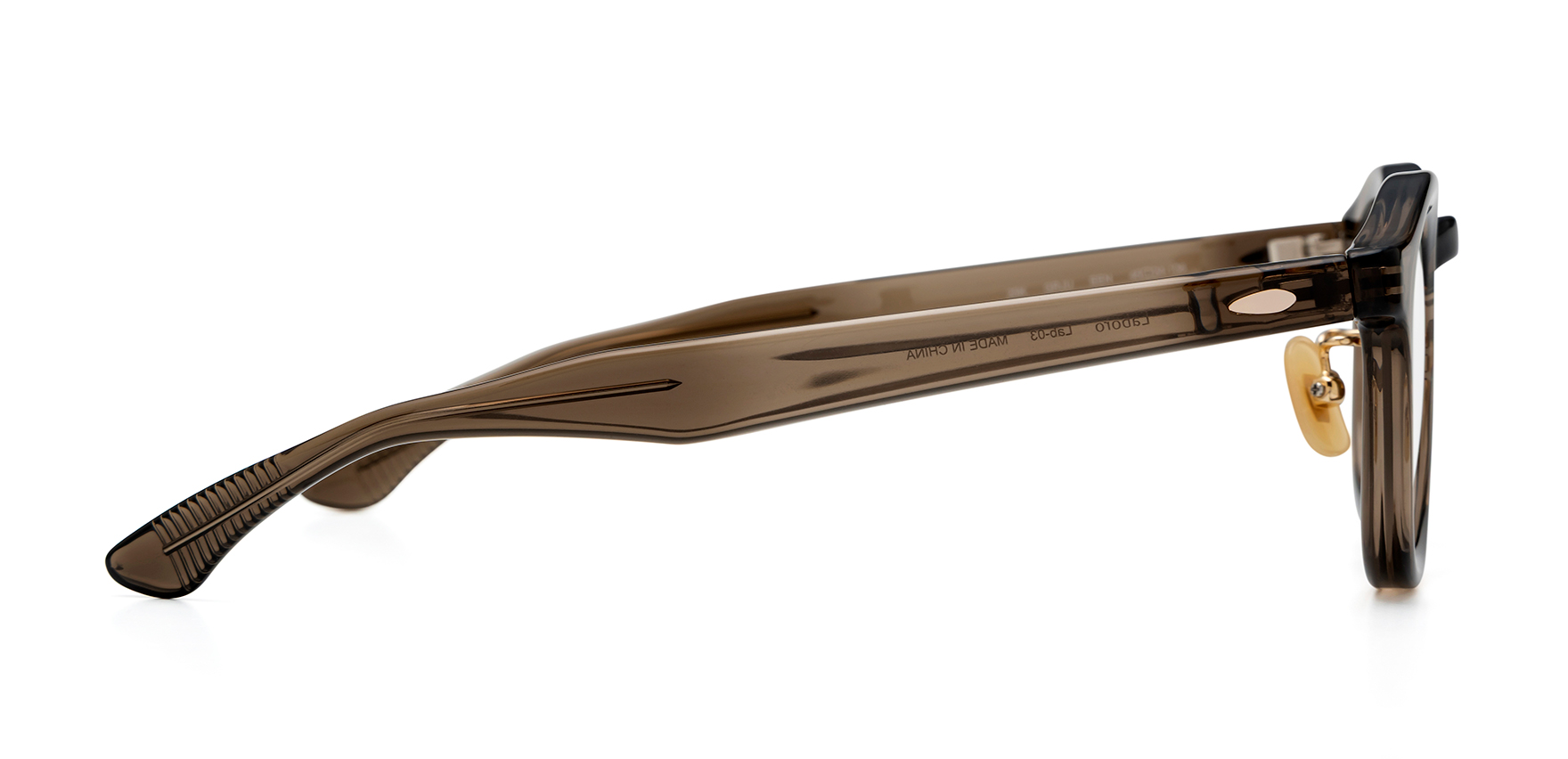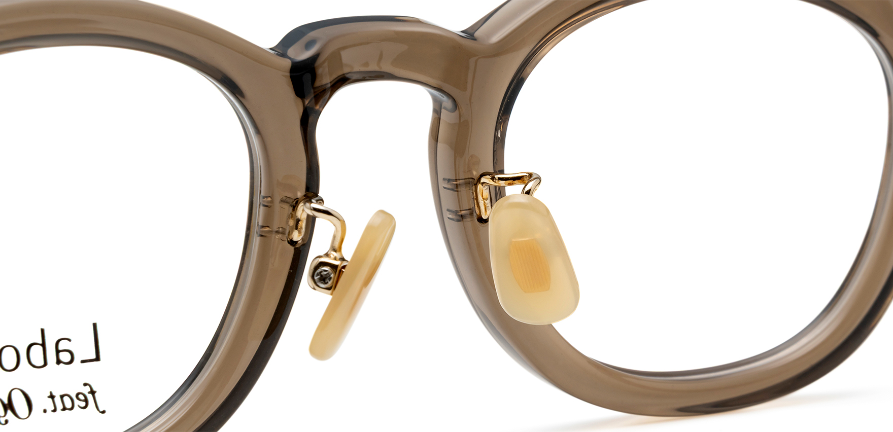 Laboroは、雑誌Oggi×ヘア&メイクアップアーティスト・長井かおりさん×眼鏡市場のトリプルコラボ商品。今回は、Oggiで活躍中のスタイリスト・渡辺智佳さんにも加わっていただいたコラボ商品第2弾です。ラテン語で“働く”を意味する「Laboro」(ラボーロ)は、仕事もプライベートも楽しく・美しく・充実した毎日を過ごす女性に贈るブランドです。Lab-03は、太めのシルエットが印象的な樹脂フレームです。重さが気にならないよう軽量の樹脂素材で仕上げました。リムの内側には、レンズに傷がつきにくいようにテレビジョンカットを施しています。また、アップスタイルでもメガネのかけ外しで髪を引っ張らないよう、ストレートテンプルを採用。耳元からテンプルが飛び出さないように、通常のテンプルよりも短く設計されています。鼻パッドは、肌になじみメイクの邪魔をしないゴールドパール色です。