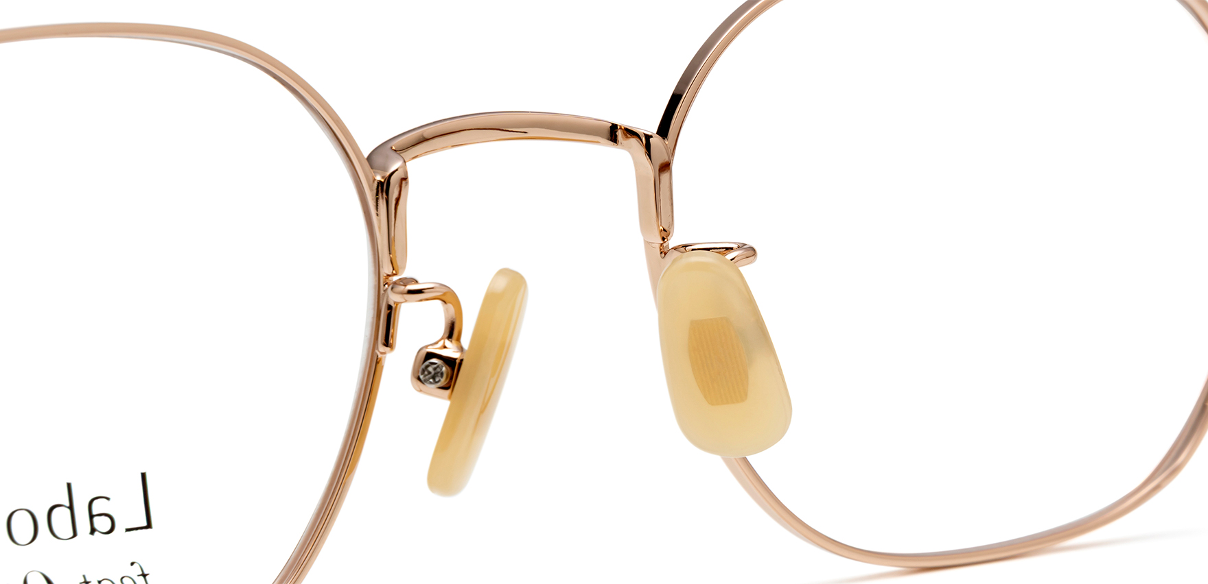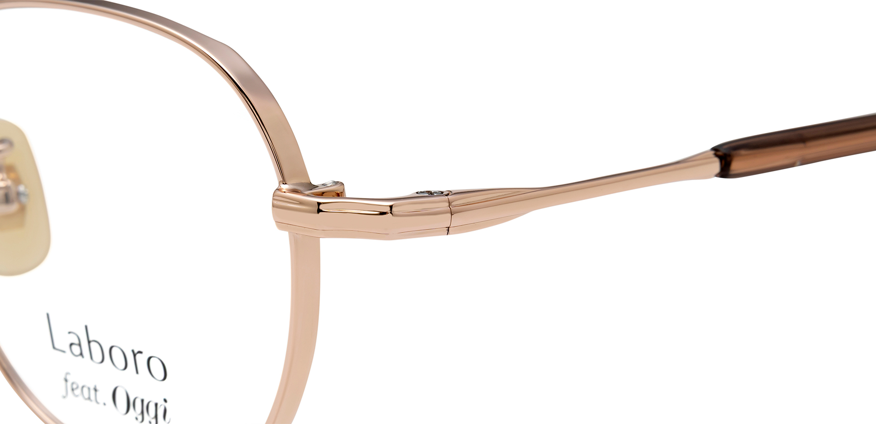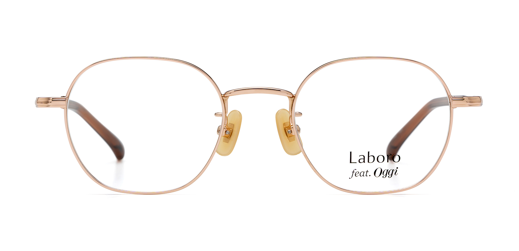 Laboroは、雑誌Oggi×ヘア&メイクアップアーティスト・長井かおりさん×眼鏡市場のトリプルコラボ商品。今回は、Oggiで活躍中のスタイリスト・渡辺智佳さんにも加わっていただいたコラボ商品第2弾です。ラテン語で“働く”を意味する「Laboro」(ラボーロ)は、仕事もプライベートも楽しく・美しく・充実した毎日を過ごす女性に贈るブランドです。Lab-04は、すっきりとしたメタルフレーム。少し個性のある六角形のような形がこなれ感を演出します。金属のカラーを生かしたデザインなので、アクセサリー感覚でもご使用いただけます。レンズの厚みを隠してくれる幅の厚めのリムを採用しているので、レンズに厚みが出てしまう強度数の方にもおすすめです。鼻パッドは、肌になじみメイクの邪魔をしないゴールドパール色です。