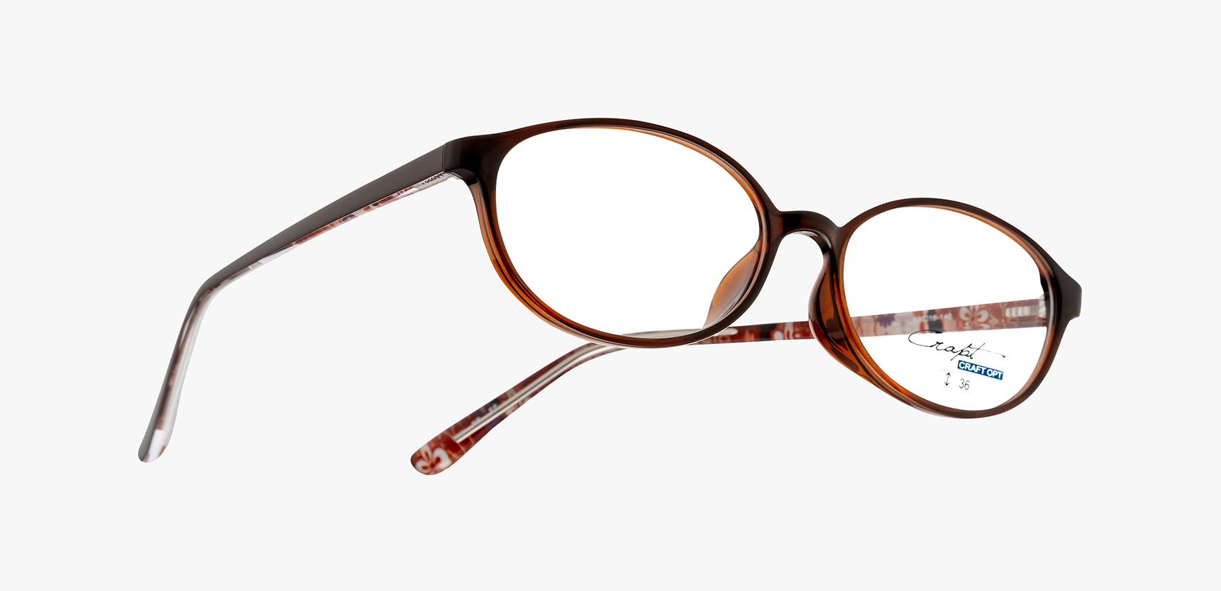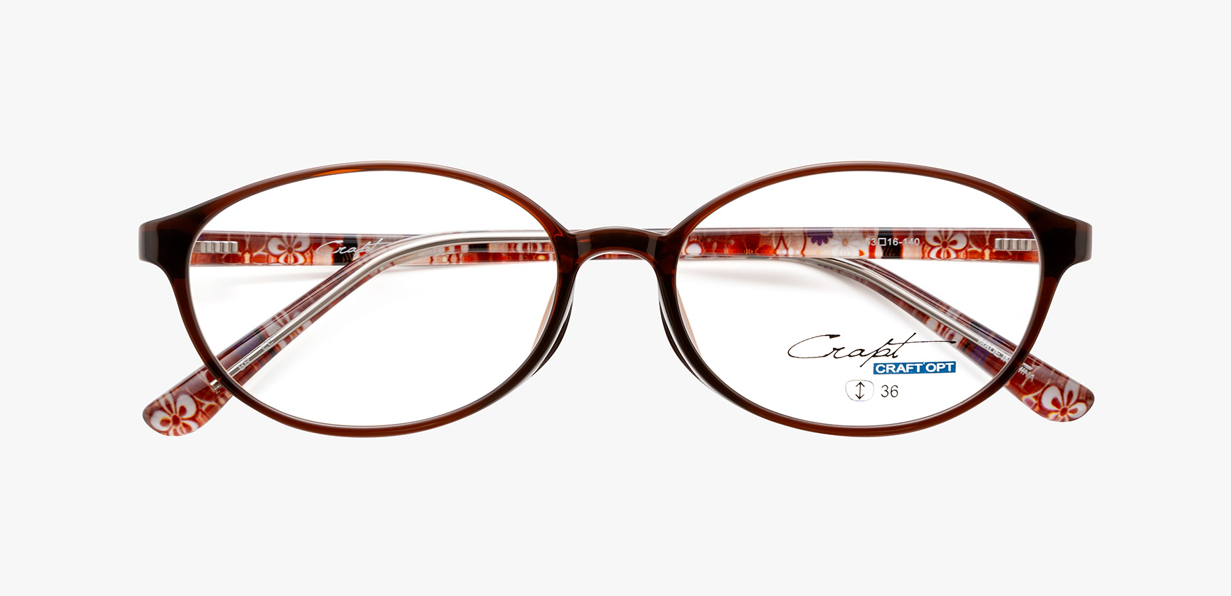 「CRAFT(クラフト)+OPTICAL(オプティカル)」をミックスした造語からブランドネームが生まれた”CRAPT(クラプト)”。若年層からミドル層まで、お求め易い価格で流行のクラシック系を気軽に掛けこなしていただきたい商品です。CRP-1028は、ゆったりとしたオーバルシェイプです。レンズをつなぐブリッジ部分のデザインに丸みをつけ、かわいらしい印象が特徴です。ツルの内側には目をひく色柄を採用し、一見シンプルながらも内側の部分でおしゃれを楽しめるモデルです。