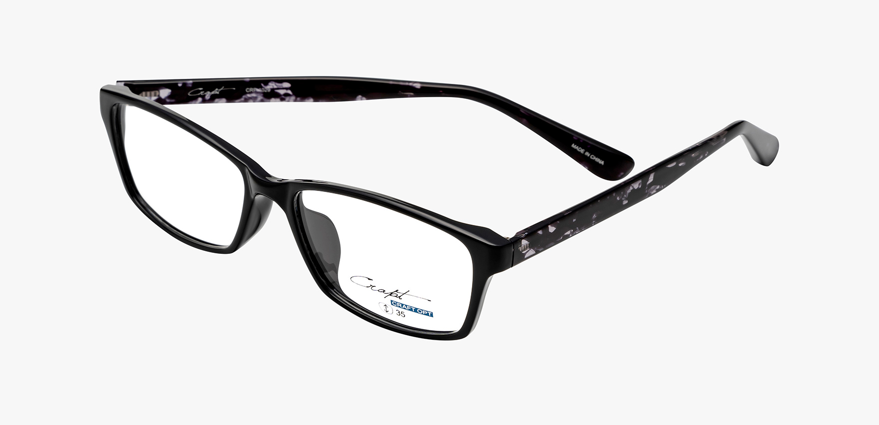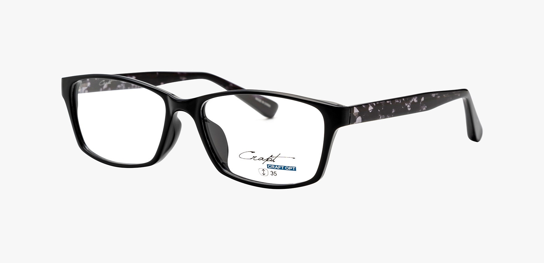 「CRAFT(クラフト)+OPTICAL(オプティカル)」をミックスした造語からブランドネームが生まれた”CRAPT(クラプト)”。若年層からミドル層まで、お求め易い価格で流行のクラシック系を気軽に掛けこなしていただきたい商品です。CRP-1029は、ツルの内側にデザインを施した、レンズの縦幅が大き目のスクエアシェイプです。エッジの効いたデザインできりっとした印象にしてくれます。