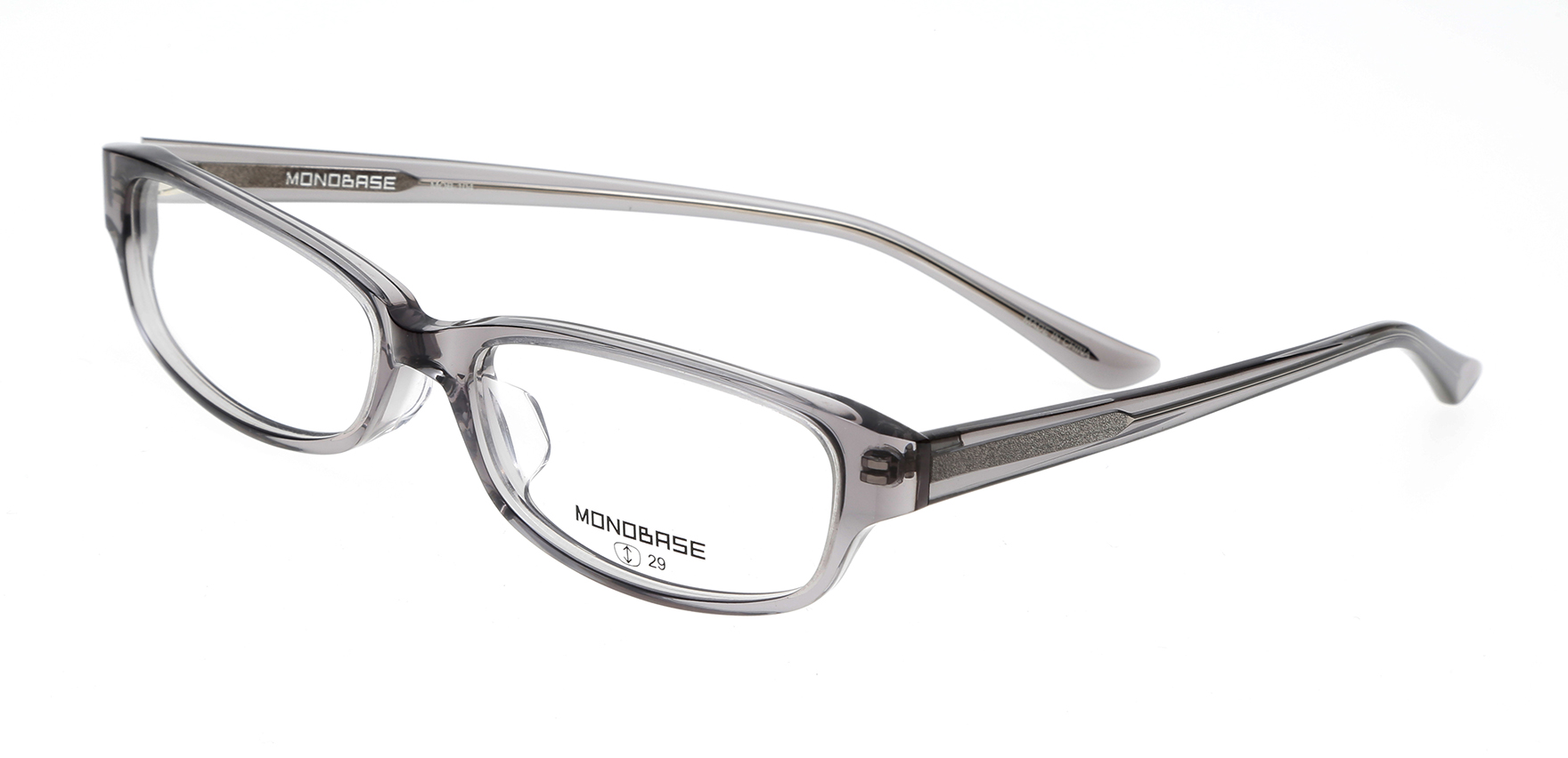 MONOBASEは単一配色(MONOTONE)とフレームの基本の形(BASE)にこだわるブランド。「単一配色にこだわる」=そのフレームが本当にきれいに見える一つの色を考え抜き、「フレームの基本的な形」にこだわり、流行にとらわれることなく、いつの時代も求められる日本人の顔に似合う形を追求しながら、レンズ型のバリエーションを充実させたブランドとなっています。MOB-104は、定番のスクエアシェイプ。どなたでもかけやすくなじみやすいクリアグレーやデミブラックの落ち着いたカラーリングが特長です。