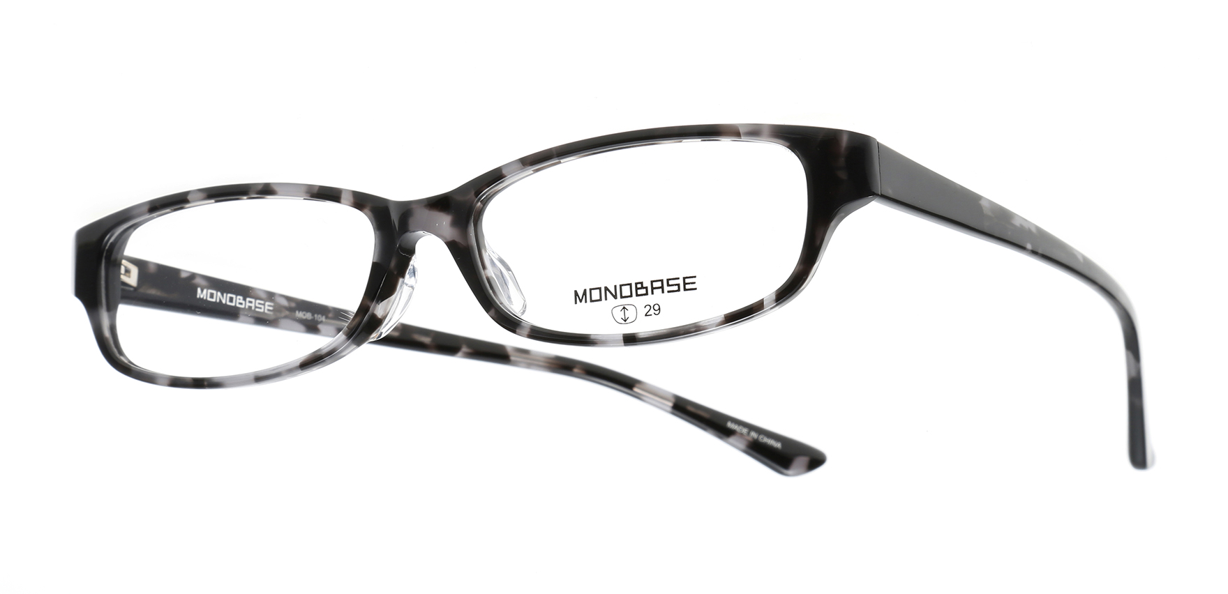 MONOBASEは単一配色(MONOTONE)とフレームの基本の形(BASE)にこだわるブランド。「単一配色にこだわる」=そのフレームが本当にきれいに見える一つの色を考え抜き、「フレームの基本的な形」にこだわり、流行にとらわれることなく、いつの時代も求められる日本人の顔に似合う形を追求しながら、レンズ型のバリエーションを充実させたブランドとなっています。MOB-104は、定番のスクエアシェイプ。どなたでもかけやすくなじみやすいクリアグレーやデミブラックの落ち着いたカラーリングが特長です。