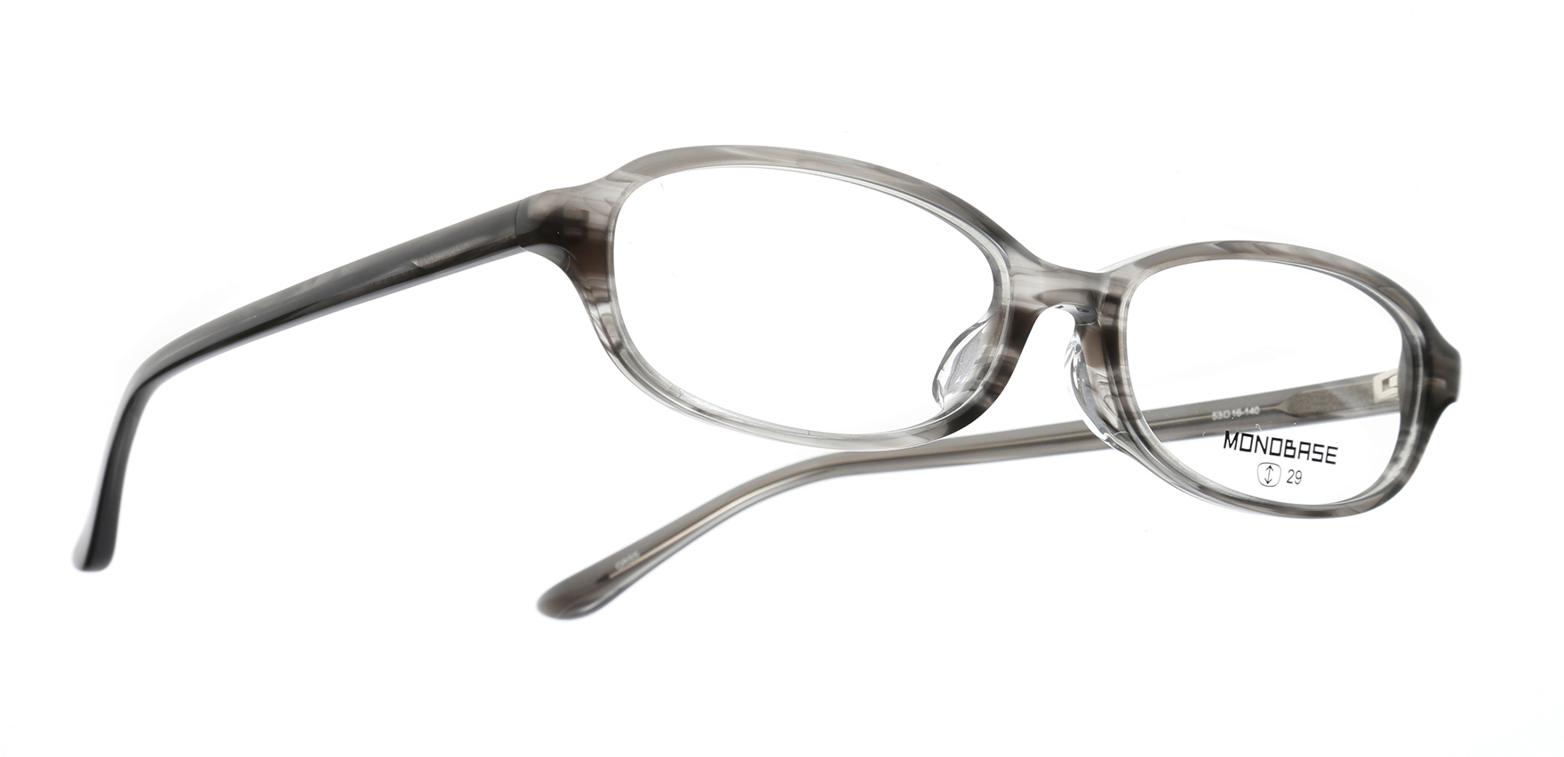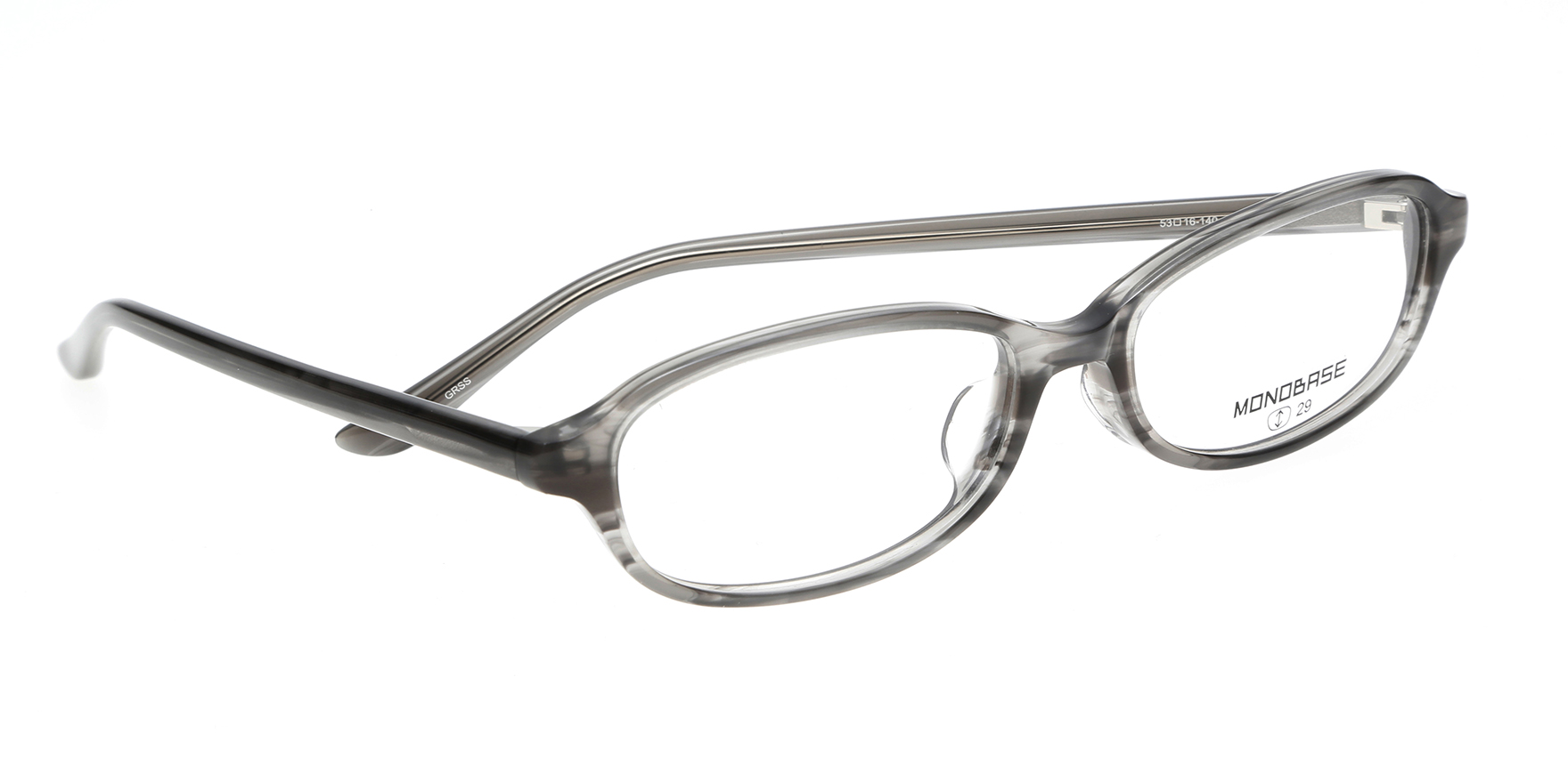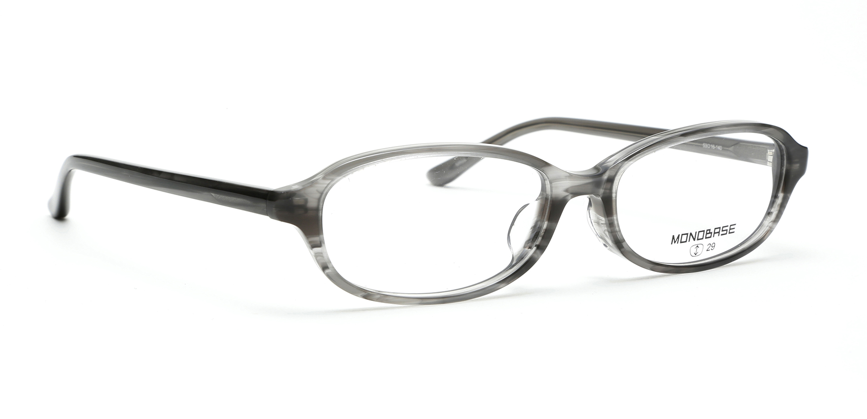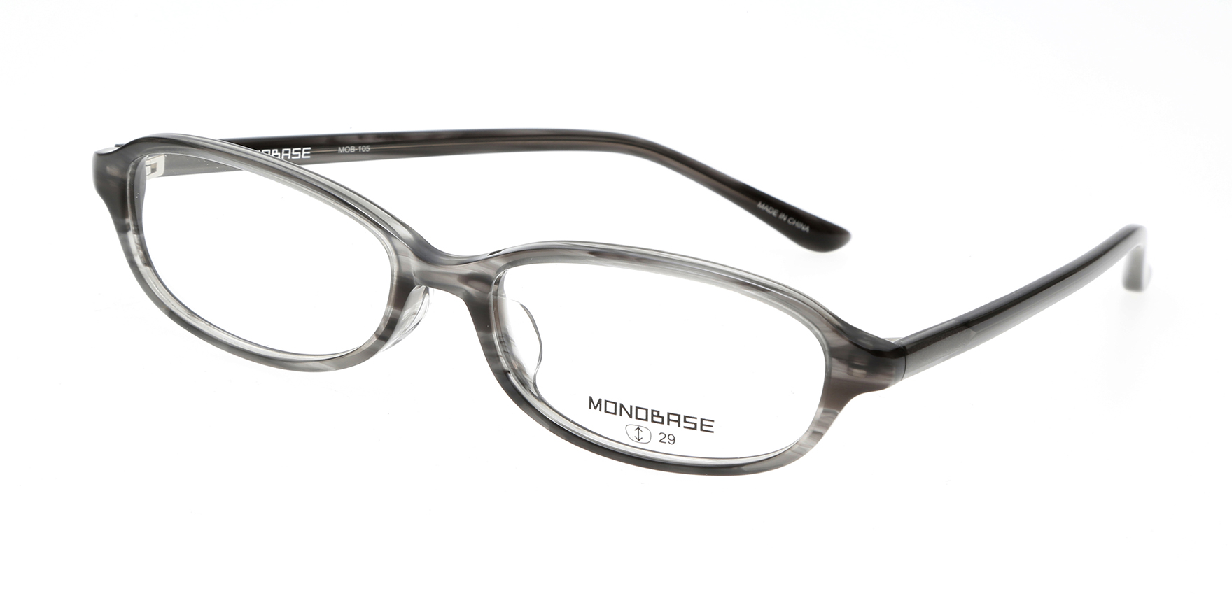 MONOBASEは単一配色(MONOTONE)とフレームの基本の形(BASE)にこだわるブランド。「単一配色にこだわる」=そのフレームが本当にきれいに見える一つの色を考え抜き、「フレームの基本的な形」にこだわり、流行にとらわれることなく、いつの時代も求められる日本人の顔に似合う形を追求しながら、レンズ型のバリエーションを充実させたブランドとなっています。MOB-105は、初めてメガネをかける方にもおすすめのオーバルシェイプ。天地が浅く主張しすぎないため、やわらかい印象に見せたい時におすすめです。