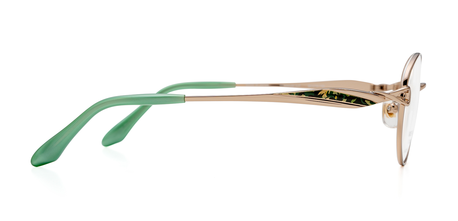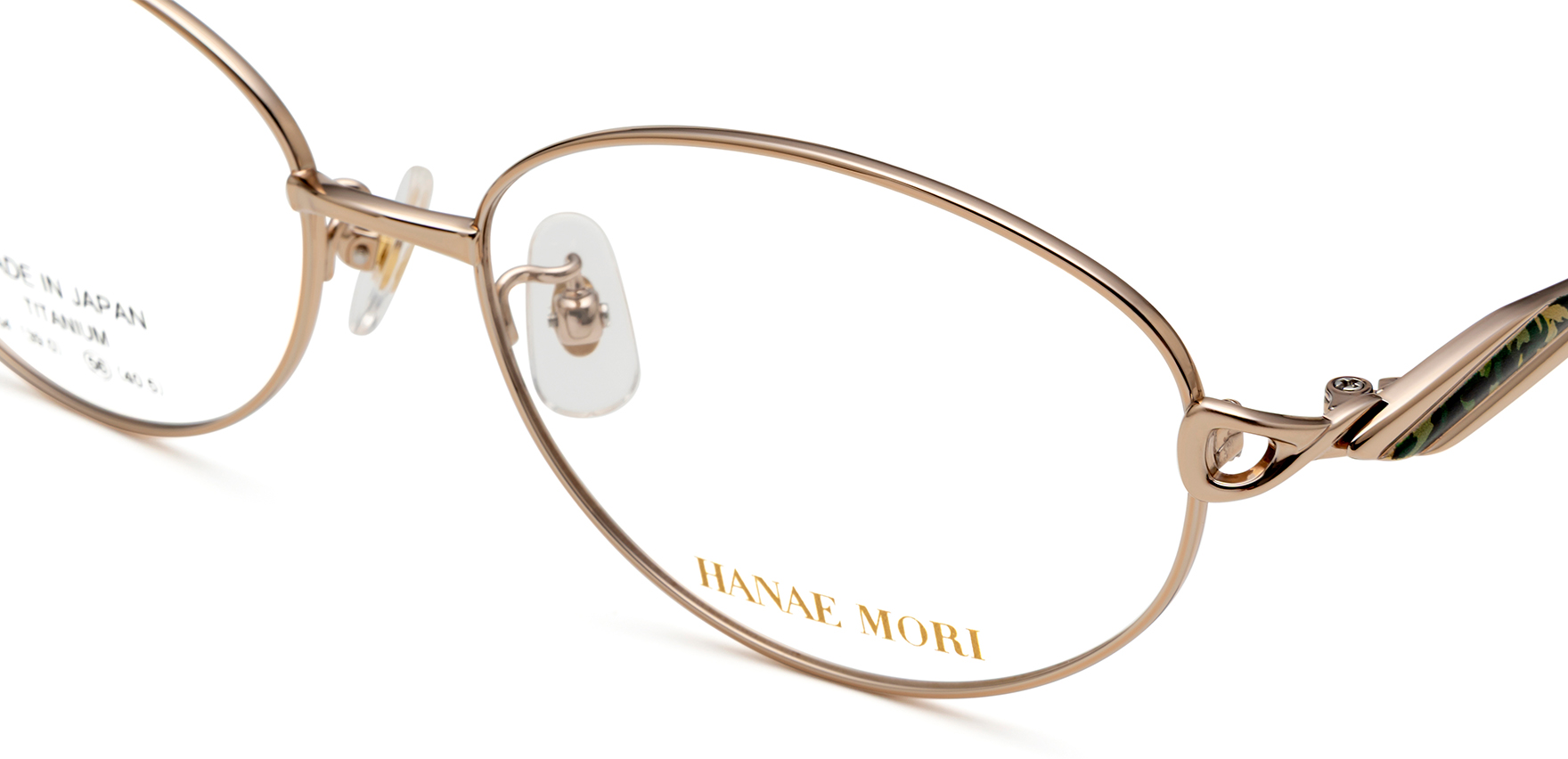 日本のファッションブランドであるハナエモリは、永遠のテーマである『エレガンス』をブランドのベースとして、シルエット、ディテール、グラフィックでメガネフレームを表現。これまで長年、日本中で愛されてきました。 HM2124は、フロントの下半分を少しシェイプさせたメタルのオーバルフレームです。テンプルにはパターンを貼り合わせ、横顔を華やかに彩ります。テンプルの裏に施された蝶のモチーフもポイントです。
