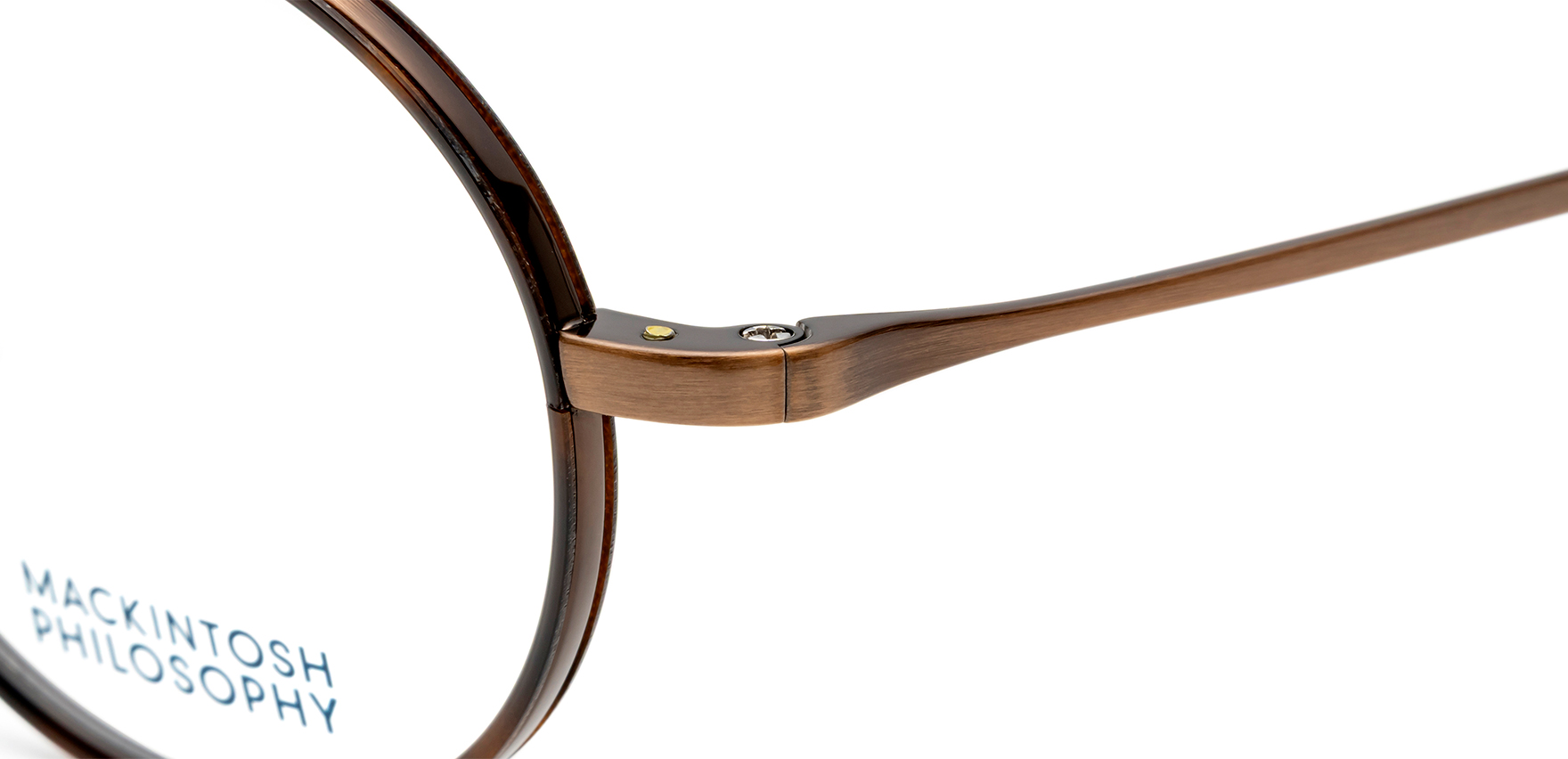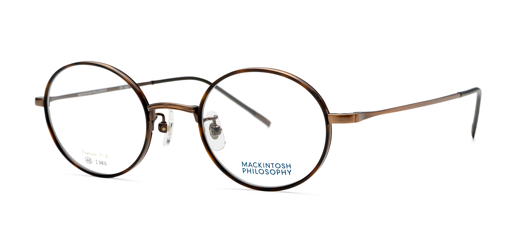 英国を代表する老舗ブランド「MACKINTOSH」のセカンドラインである「MACKINTOSH PHILOSOPHY」は、モノづくりの精神と、クラシックで時代性のあるスタイルを受け継いだトータルコレクションです。英国の品性あるスタイルと趣きあるデザインを存分にアイウェアに反映しました。MP1002は、曲線を綺麗に活かしたセルワッパが特長のラウンドシェイプ。細身で繊細なインナーリムを使用することで、洗練されたクラシカルなスタイルに仕上げました。モダン部分には収縮チューブを用いて、『ゴム引きコート』で有名なマッキントッシュのエッセンスをプラスしています。