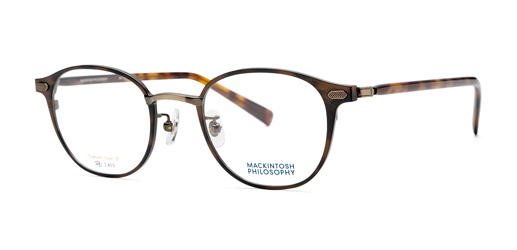 英国を代表する老舗ブランド「MACKINTOSH」のセカンドラインである「MACKINTOSH PHILOSOPHY」は、モノづくりの精神と、クラシックで時代性のあるスタイルを受け継いだトータルコレクションです。英国の品性あるスタイルと趣きあるデザインを存分にアイウェアに反映しました。MP1016は、ヨロイに施したシャープなレジメンタルストライプの飾りがクラシカルな雰囲気を引き立てつつ、現代的な印象もプラス。上質感とデザイン性を兼ね備えた一本です。