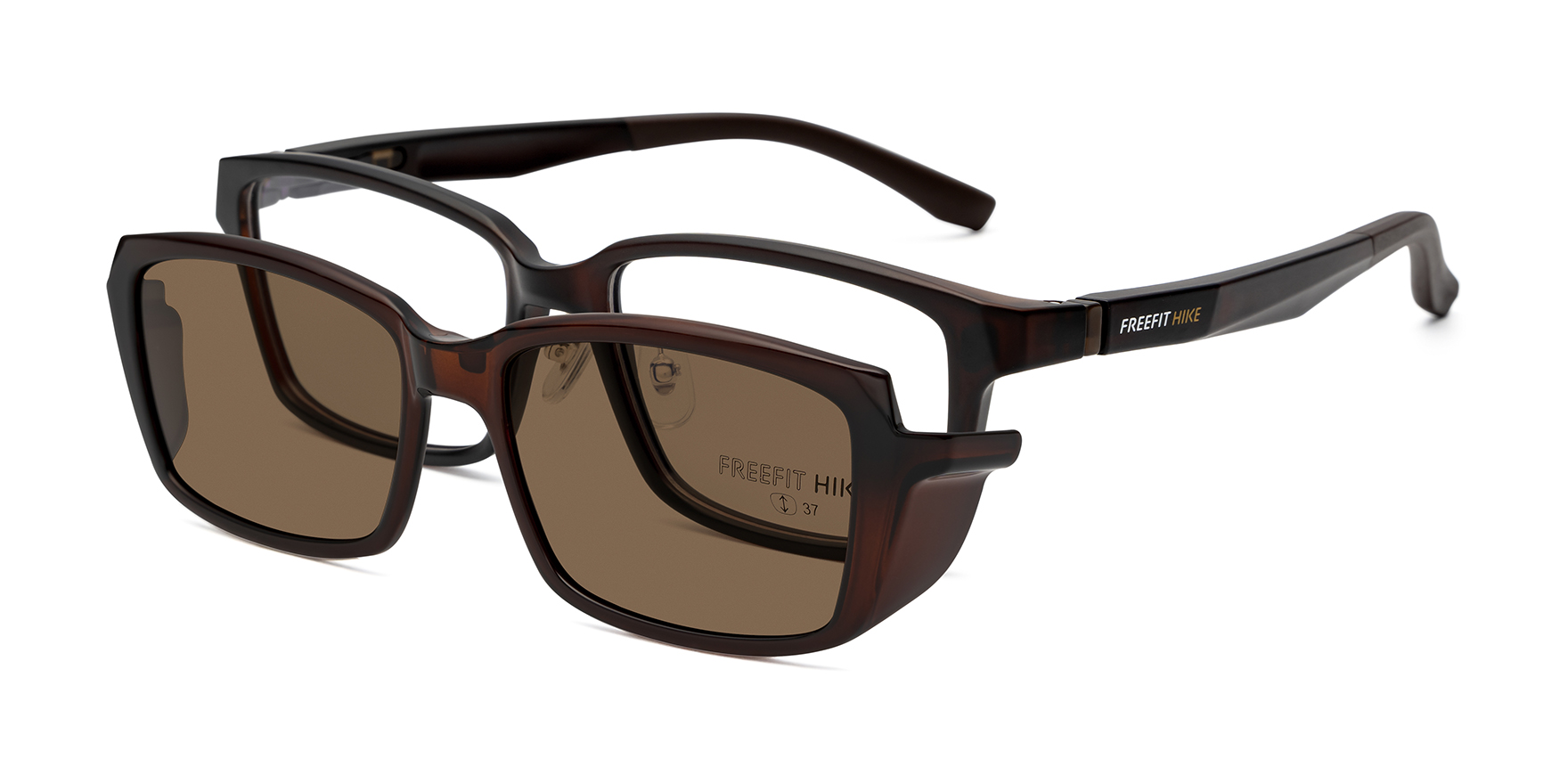 軽い、ズレにくい、驚きのかけ心地がテーマで、おかげさまで爆発的な支持をいただいているフリーフィット。ファッションとスポーツを融合したデザイン且つ、交換できるパーツの遊び心や機能面かけ心地を備えた「FREE FiT HIKE」に前掛けサングラス付モデルが登場しました。HHT-HK11は、天地をゆったり取った存在感のあるスクエアシェイプ。視界を邪魔しないフロントデザインは、キャンプや釣り、ドライブなど幅広いアクティビティに活躍します。耐久性と耐衝撃性を高めるため、丁番パーツには超弾性樹脂を使用。バネ性と弾力性に優れ、抜群のホールド感を実現しました。