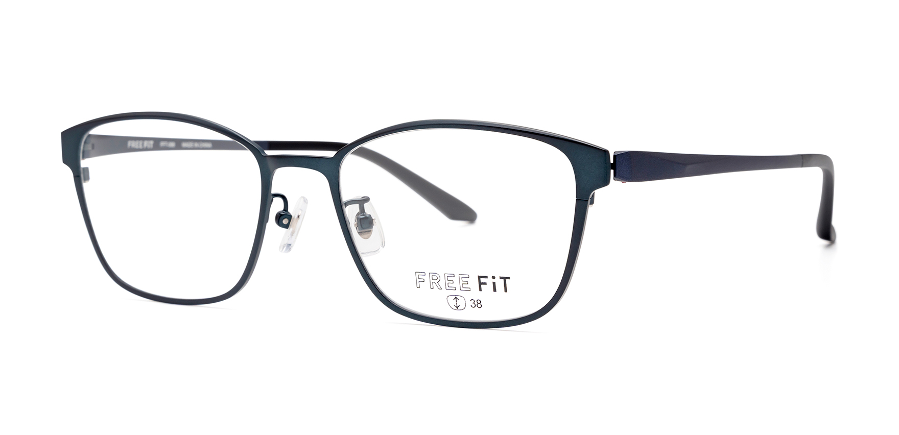 ”軽い、ズレにくい、驚きのかけ心地”がテーマのFREE FiT(フリーフィット)。サイズ・フレーム・カラーともに眼鏡市場No.1のラインアップを誇り、多くのお客様に支持されるブランドから、シートメタルフロントタイプが登場しました。FFT-098は、高さのあるウェリントンタイプ。ほどよく丸みを帯びたブリッジが、お顔にやわらかい印象を与えます。また、リム上部のカットは立体感と知的な雰囲気を演出します。カジュアルにもフォーマルにも合わせやすいカラー展開で、幅広いシーンで活躍する一本です。