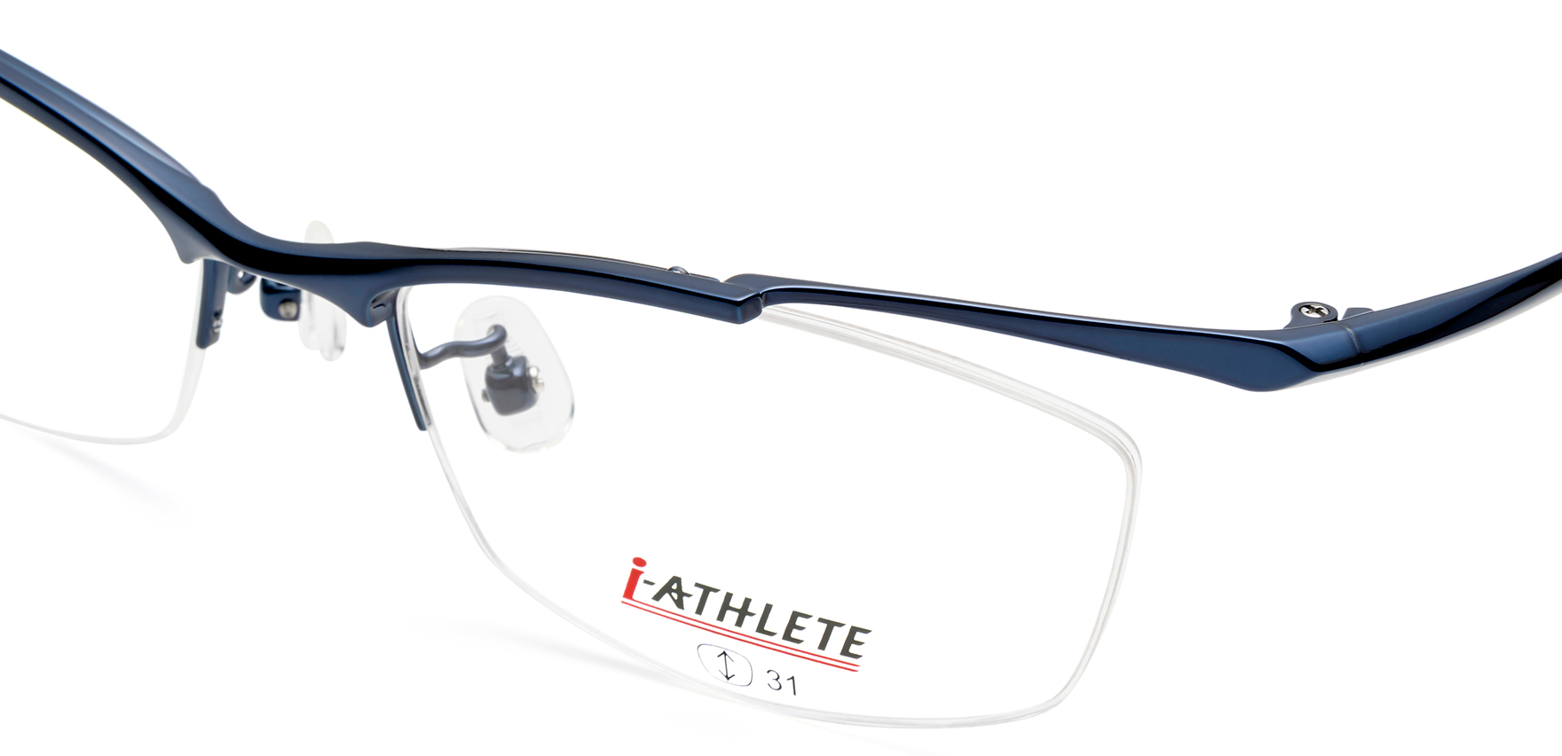 眼鏡市場のスポーツテクノロジーにより開発されたi-ATHLETE。汗や激しい動きでもズレにくいスポーツ性能と、プライべートやビジネスシーンでも日常使い出来るデザインを両立。アクティブに毎日を過ごす方に向けたメガネフレームです。IA-497は、アイアスリート定番のナイロールフレーム。視界の広さとしっかりフィットするホールド感が特長です。