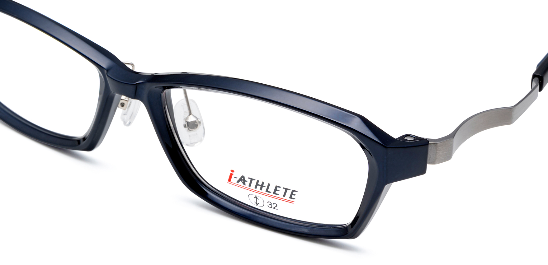 眼鏡市場のスポーツテクノロジーから生まれたi-ATHLETE(アイアスリート)。汗や激しい動きでもずれにくい高いスポーツ性能と、プライベートからビジネスまで日常使いできるデザインを両立しました。アクティブに毎日を過ごしたい方に向けた、機能性とスタイルを兼ね備えたメガネフレームです。IA-501は、すっきりとしたスクエアタイプ。高機能スポーツシューズのソールからインスパイアされた、立体的でクッション性の高い構造が目を引くデザインです。