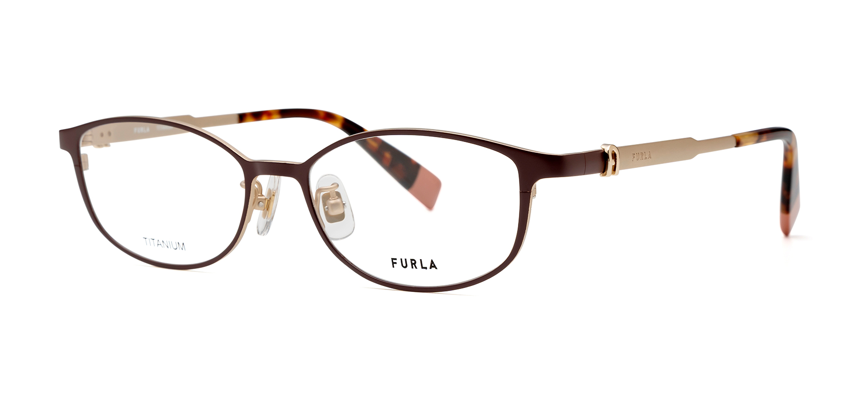 イタリア発祥の人気ブランド”FURLA”(フルラ)のメガネフレーム。高品質で機能的なフルラらしさをそのままに、愛らしさと女性らしさを閉じ込めたデザインが魅力的なアイウェアコレクションです。VFUB43Jは、チタン製のシートフロントを採用したスクエア寄りのウェリントンシェイプのメタルフレーム。テンプルには、アーチロゴ×FURLAロゴを組み合わせたサングラスと共通のモチーフを配置し、ブランドらしさをさりげなく表現しています。しのみ先にはアクセントとなるポイントカラーをプラス。さらに、モダンやチップも色味を揃えたトーンオントーン配色で、細部まで統一感のある上品なデザインです。