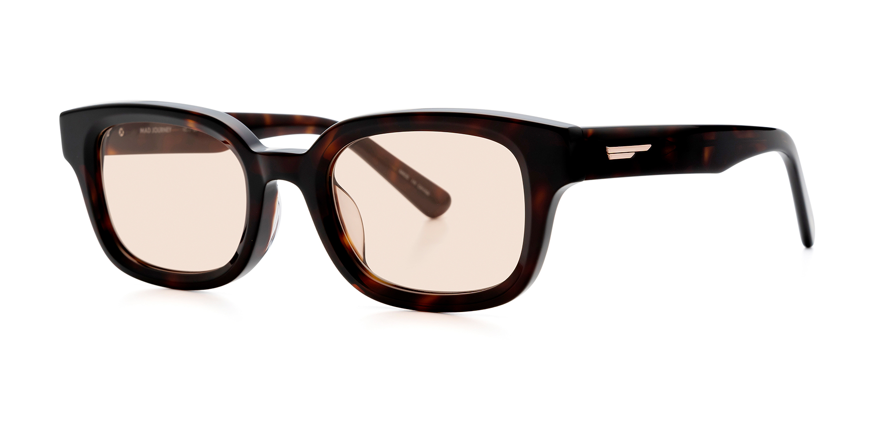 サングラスを掛けて新しい自分を旅しよう。バカンスとデイリーユースの融合がコンセプトの「MAD JOURNEY(マッドジャーニー)」。MDJ-59は、トレンドに敏感でファッション感度の高いインフルエンサーの協力を得てつくられた、シンプルな服装に存在感を与えるデザイン。韓国アイドルが着用しているようなイメージのスクエアタイプで、リム部分にブラウン管テレビのようなカッティングを施したテレビジョンカットを加えることで、奥行きとトレンド感をアップしています。また、テンプル側面には大きめの飾りをプラスし、より韓国トレンドらしい印象を高めています。