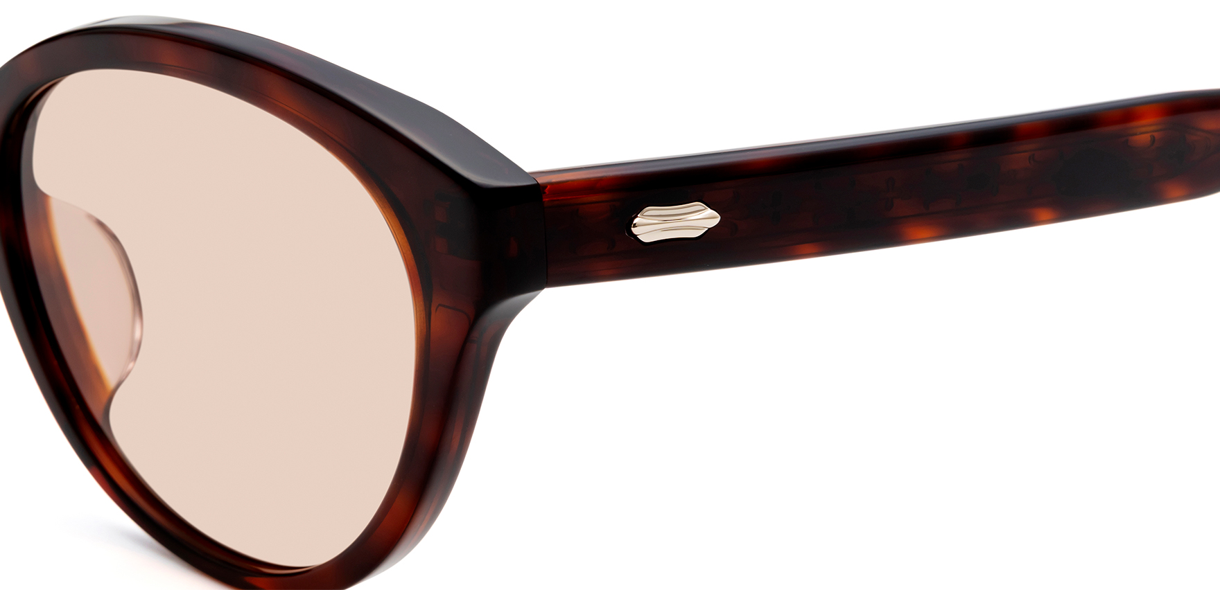サングラスを掛けて新しい自分を旅しよう。バカンスとデイリーユースの融合がコンセプトの「MAD JOURNEY(マッドジャーニー)」。MDJ-60は、トレンドに敏感でファッション感度の高いインフルエンサーの協力を得てつくられた、シンプルな服装に存在感を与えるデザイン。目尻に向かって大きくカーブしたラインが特徴的なフォックスタイプで、コーディネートを引き締めるアクセントに。テンプル側面の飾りに加え、テンプル芯にも繊細な模様を施すことで、生地から透けて見えるさりげないデザインが上質な印象をプラスします。