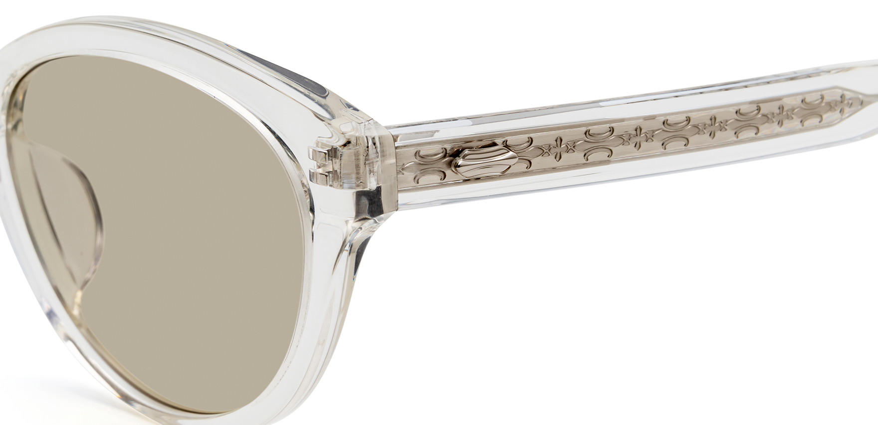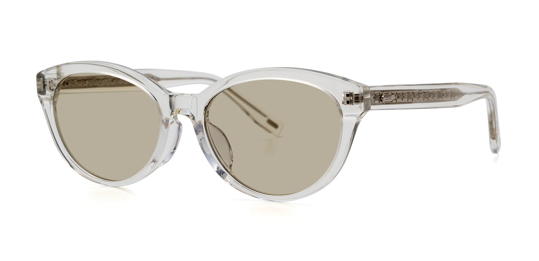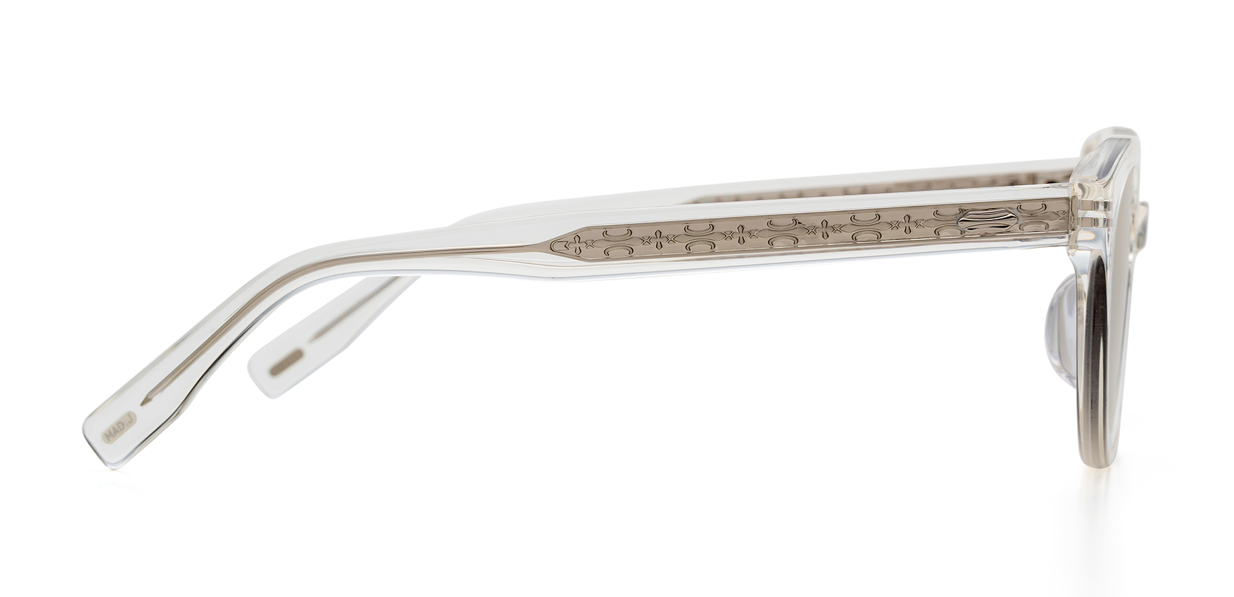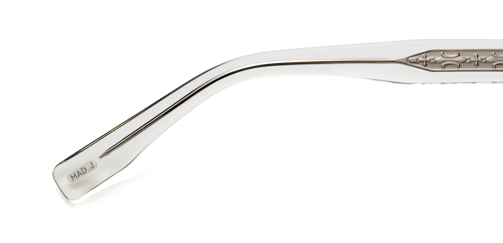 サングラスを掛けて新しい自分を旅しよう。バカンスとデイリーユースの融合がコンセプトの「MAD JOURNEY(マッドジャーニー)」。MDJ-60は、トレンドに敏感でファッション感度の高いインフルエンサーの協力を得てつくられた、シンプルな服装に存在感を与えるデザイン。目尻に向かって大きくカーブしたラインが特徴的なフォックスタイプで、コーディネートを引き締めるアクセントに。テンプル側面の飾りに加え、テンプル芯にも繊細な模様を施すことで、生地から透けて見えるさりげないデザインが上質な印象をプラスします。